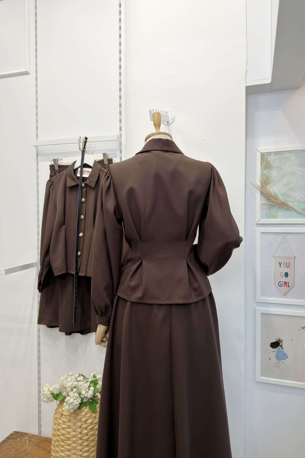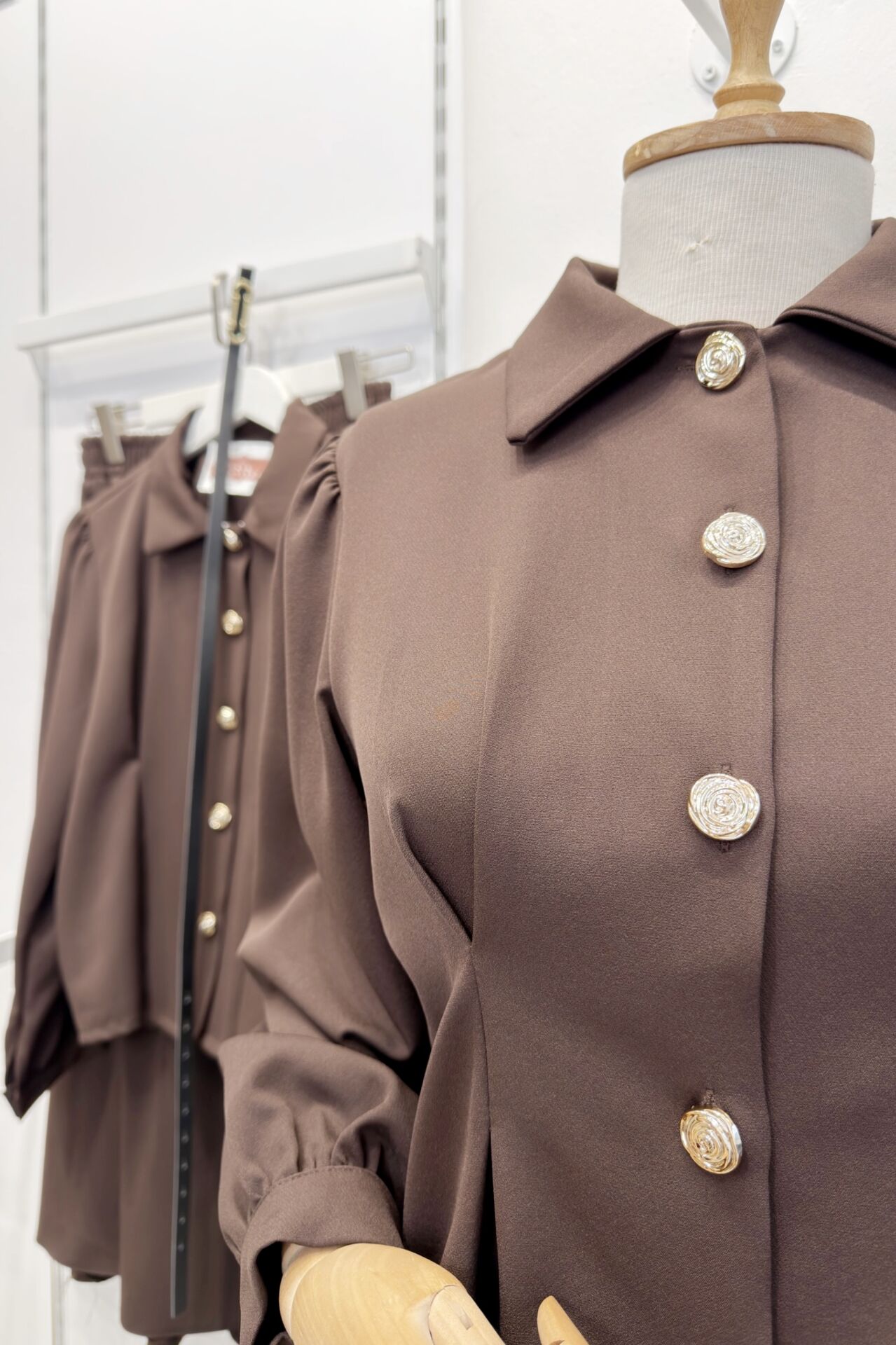 Kahverengi Kemer Detaylı Pattern Crep Takım