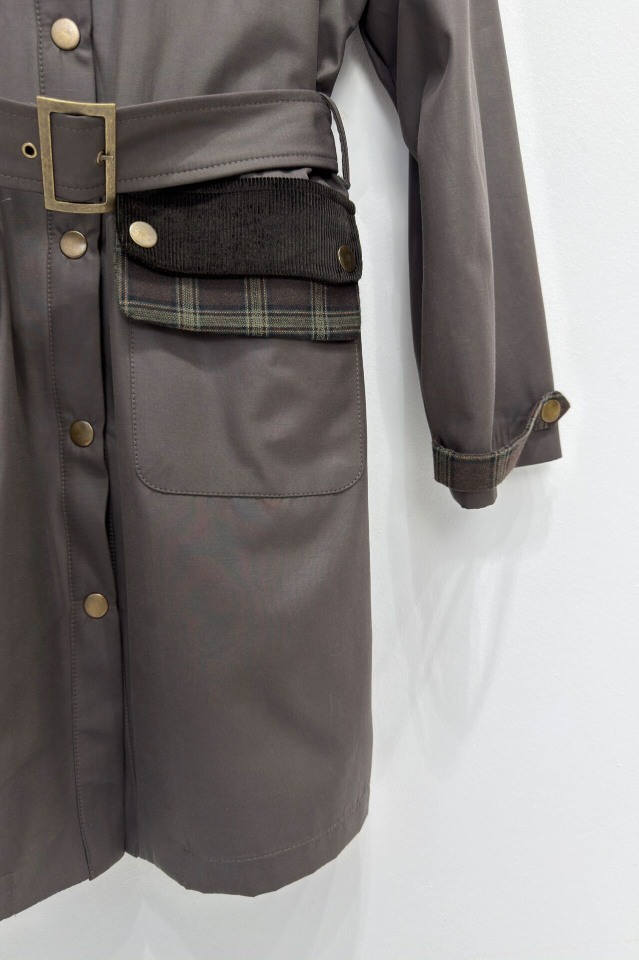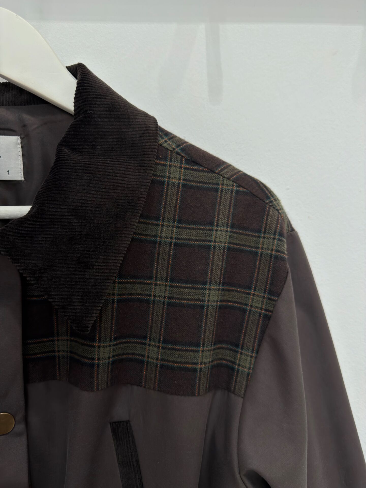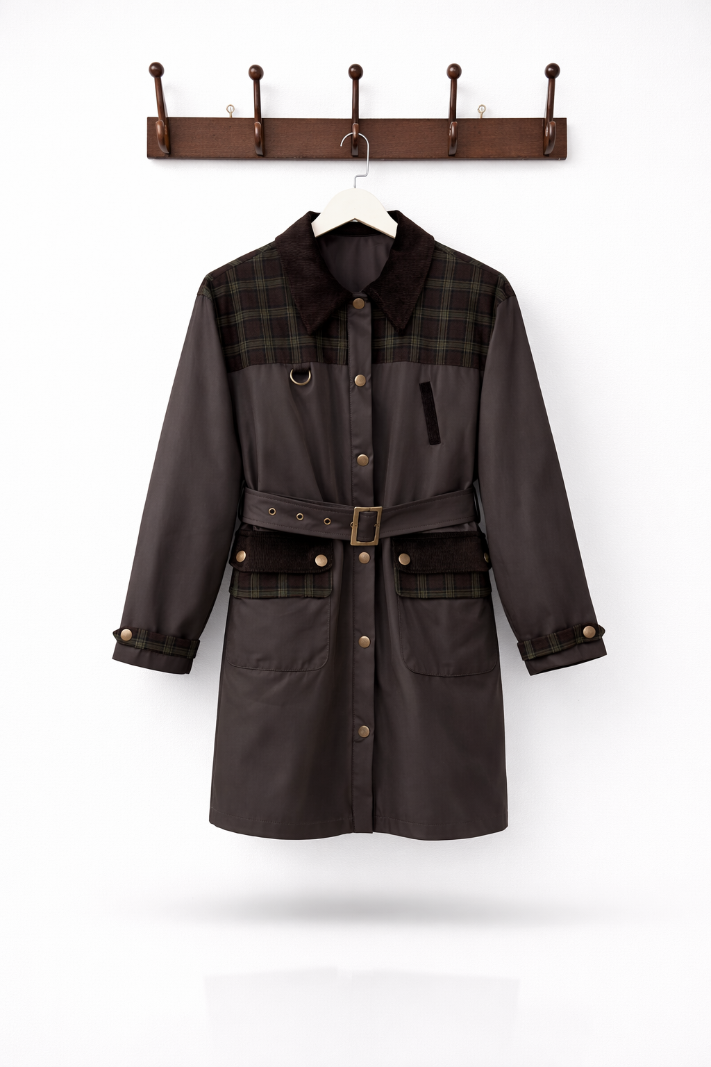 Kahverengi Kuşaklı Ekose Detaylı Carmine Ceket