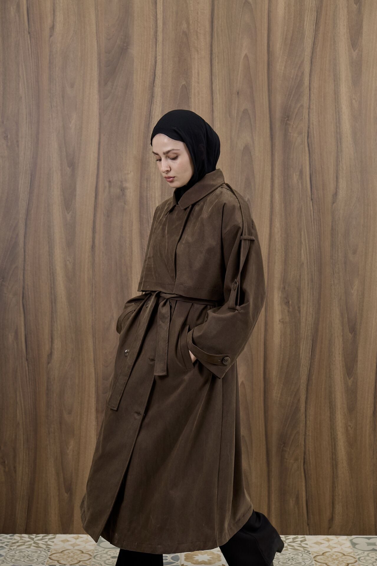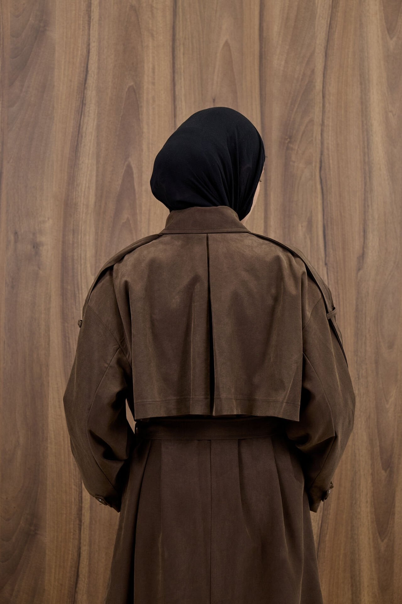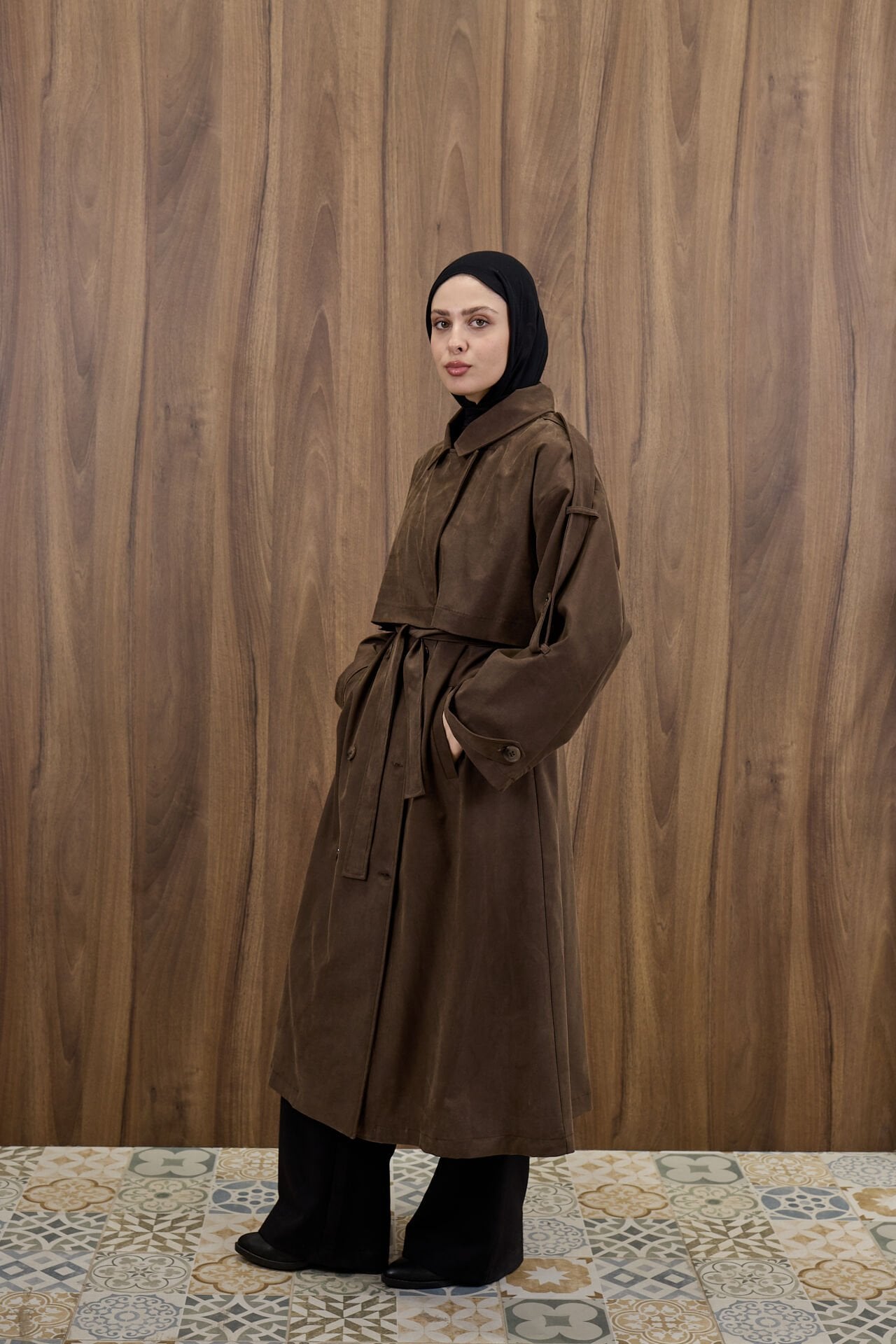 Kahverengi Nubuk Görünümlü Tensel Trençkot