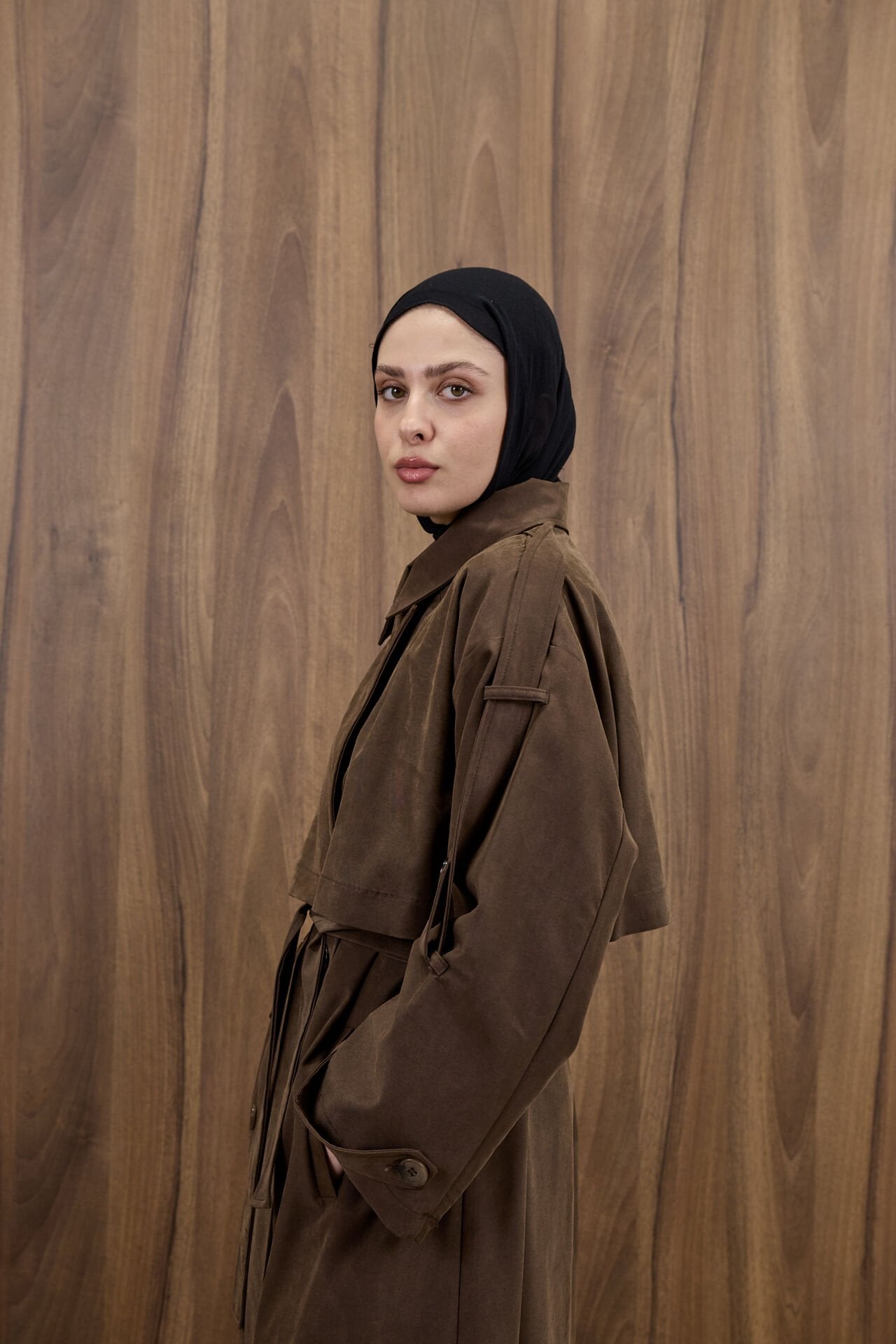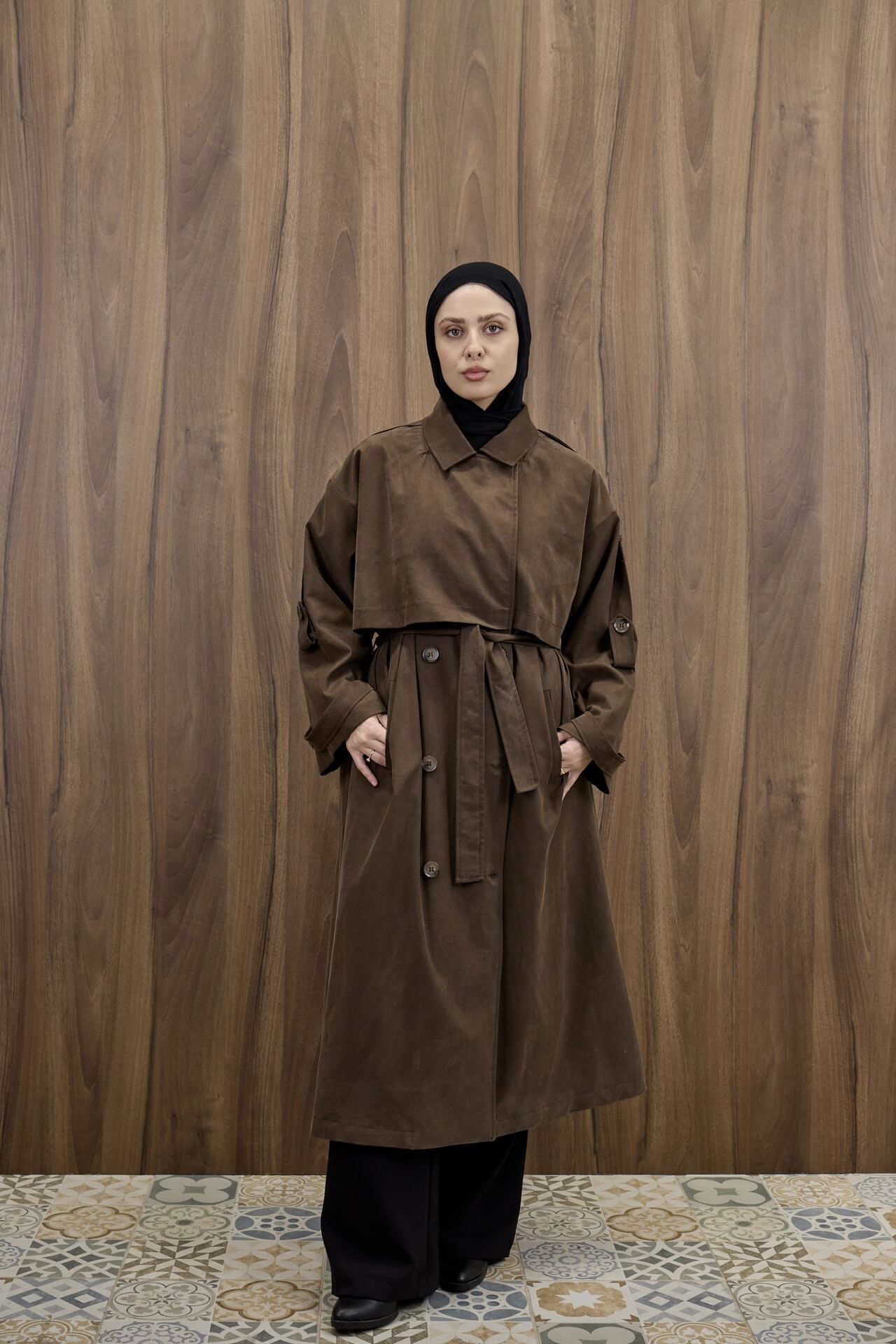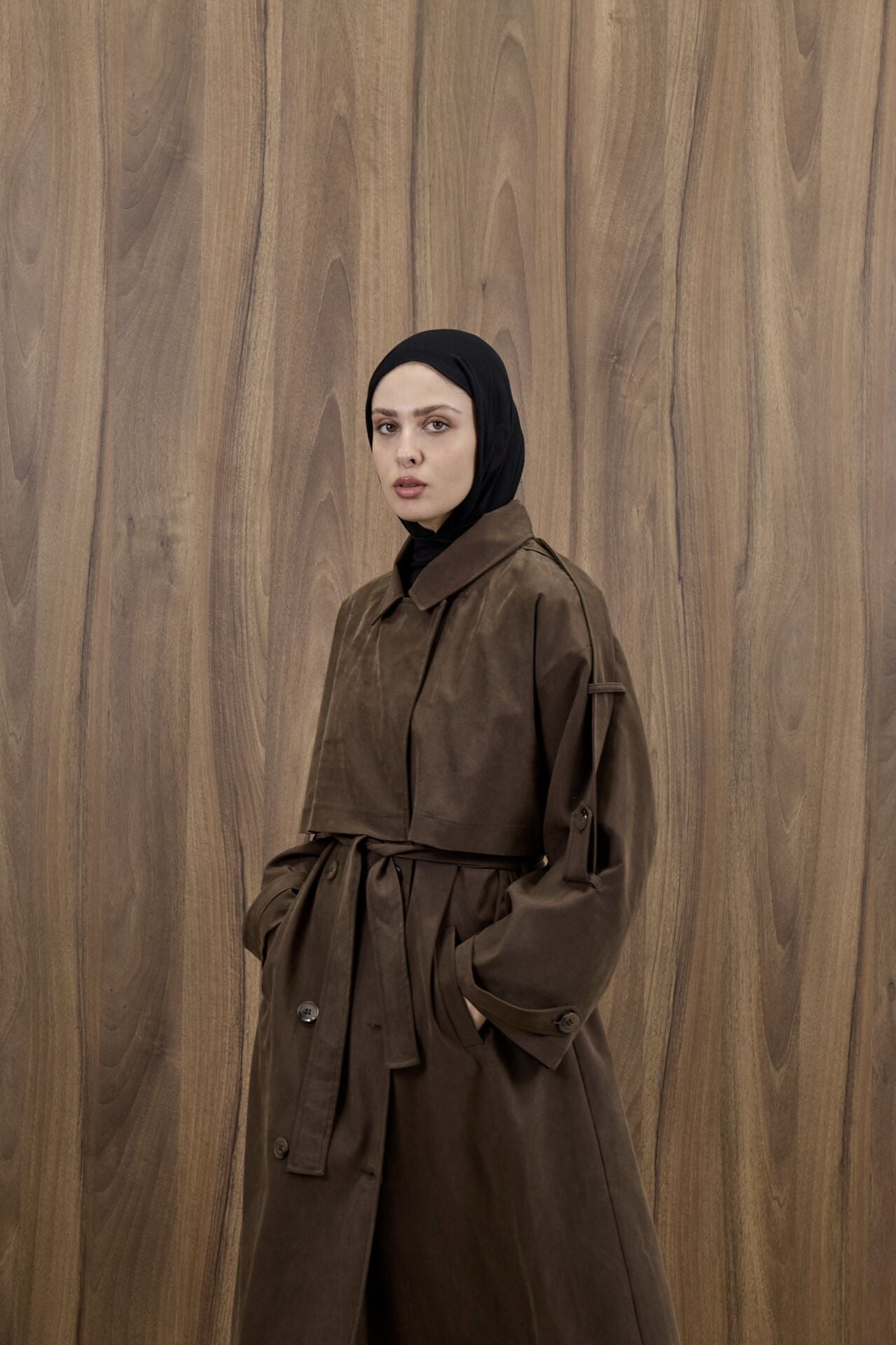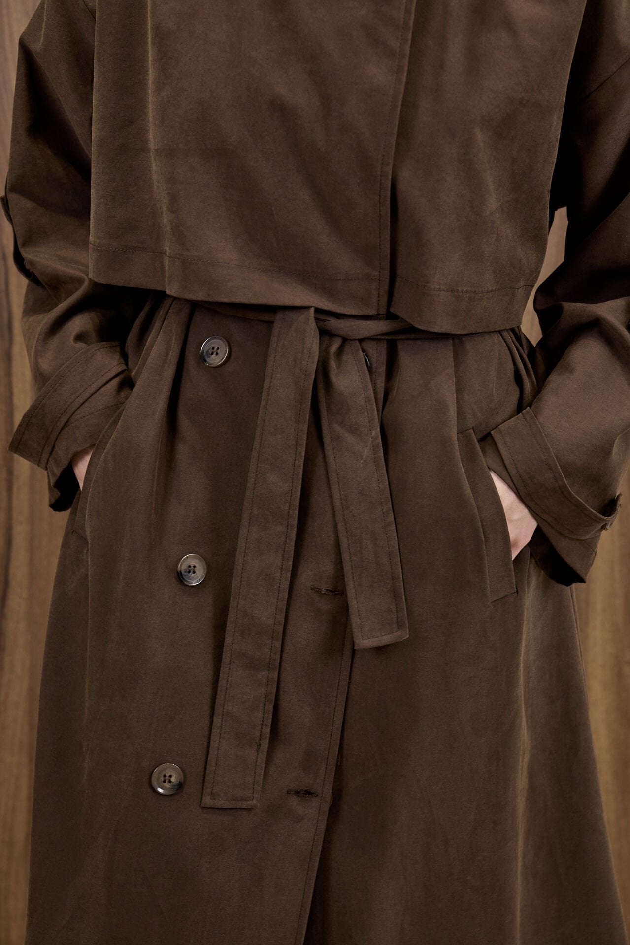Kahverengi Nubuk Görünümlü Tensel Trençkot