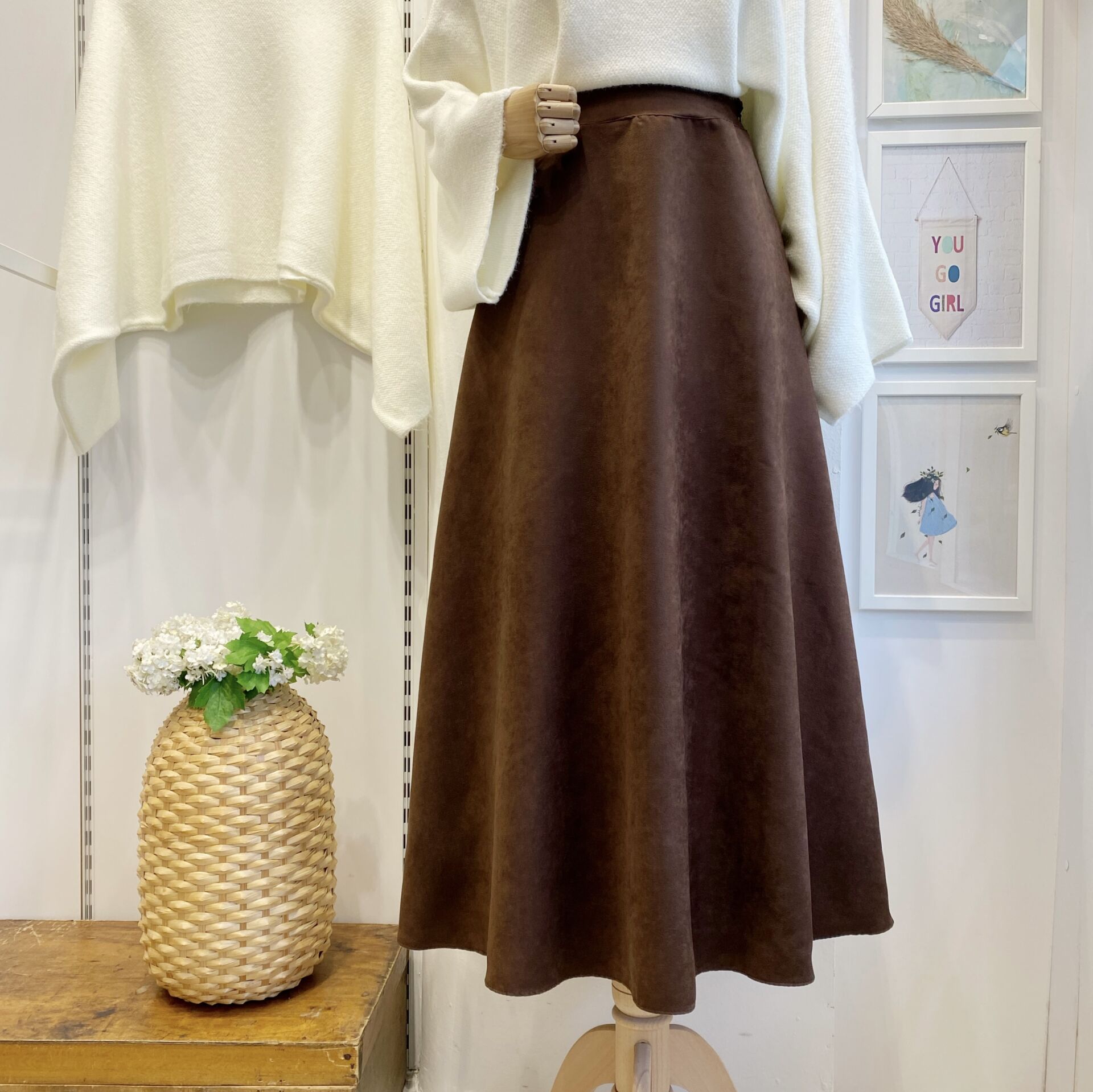 Kahverengi Nubuk Kumaş Kloş Etek