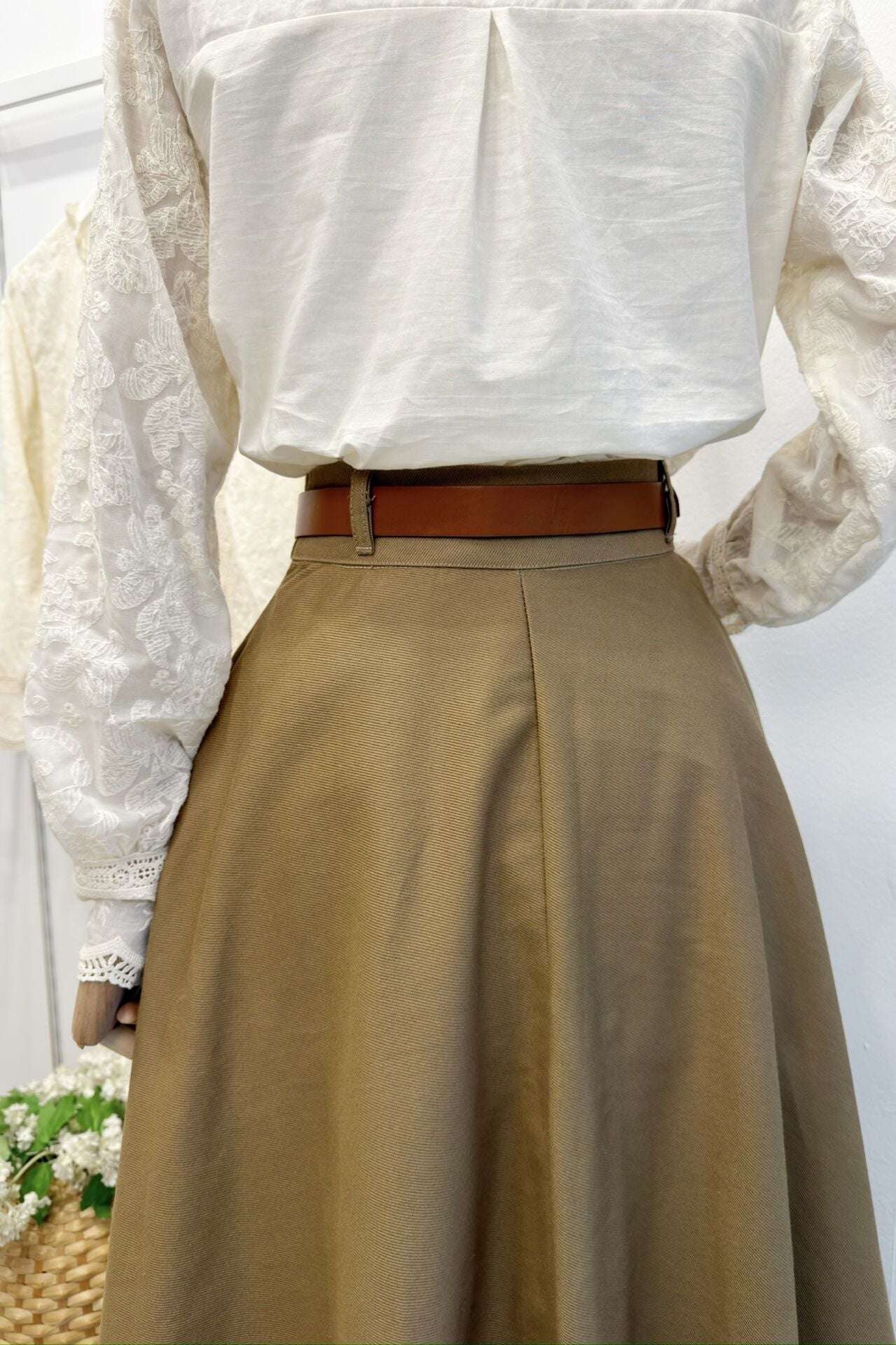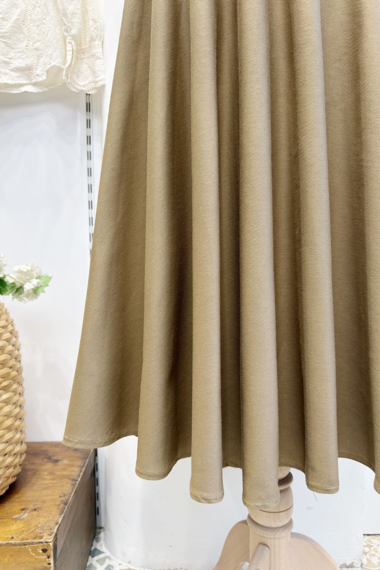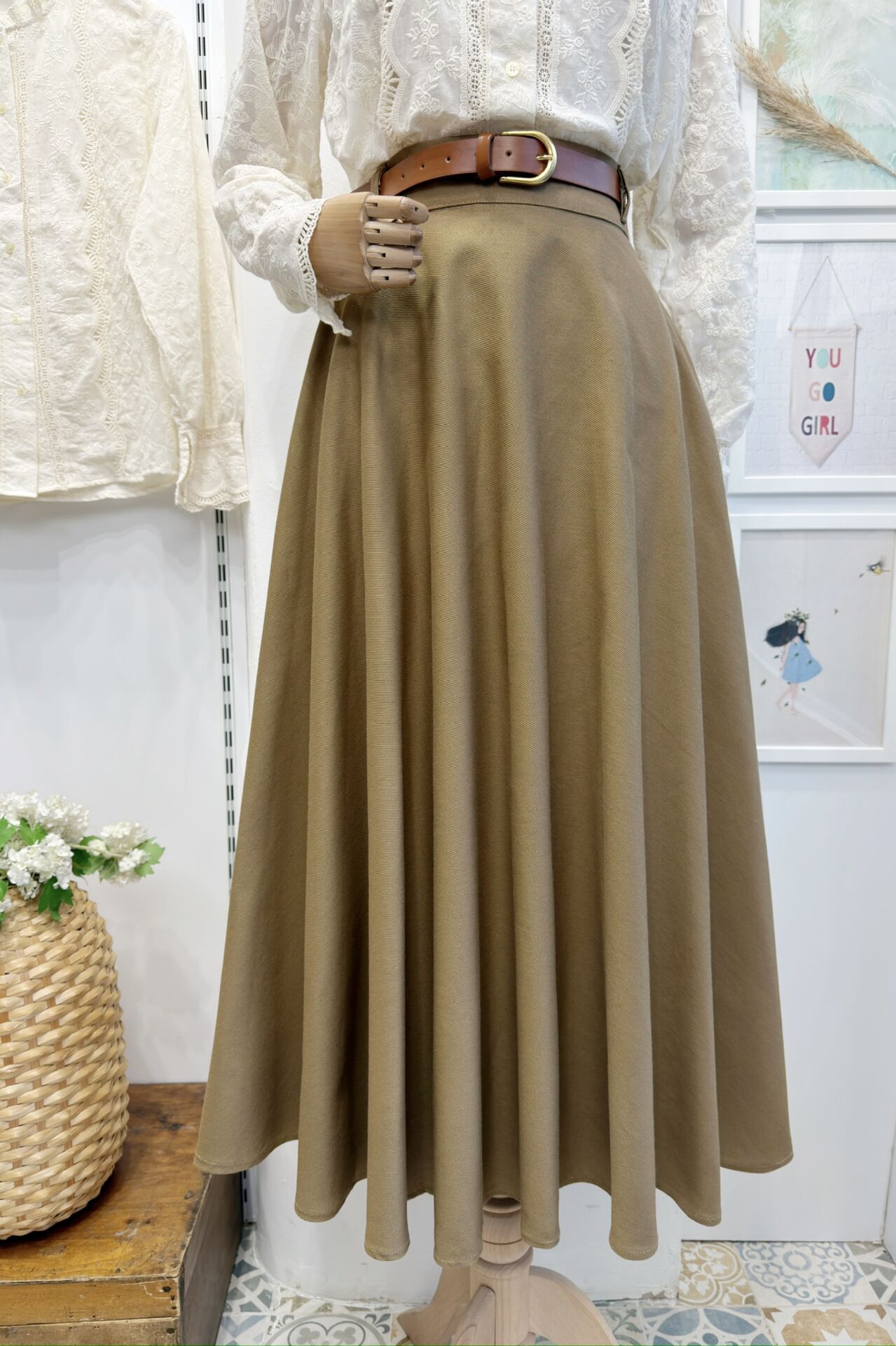 Kemerli Yağ Yeşili Kloş Gabardin Etek