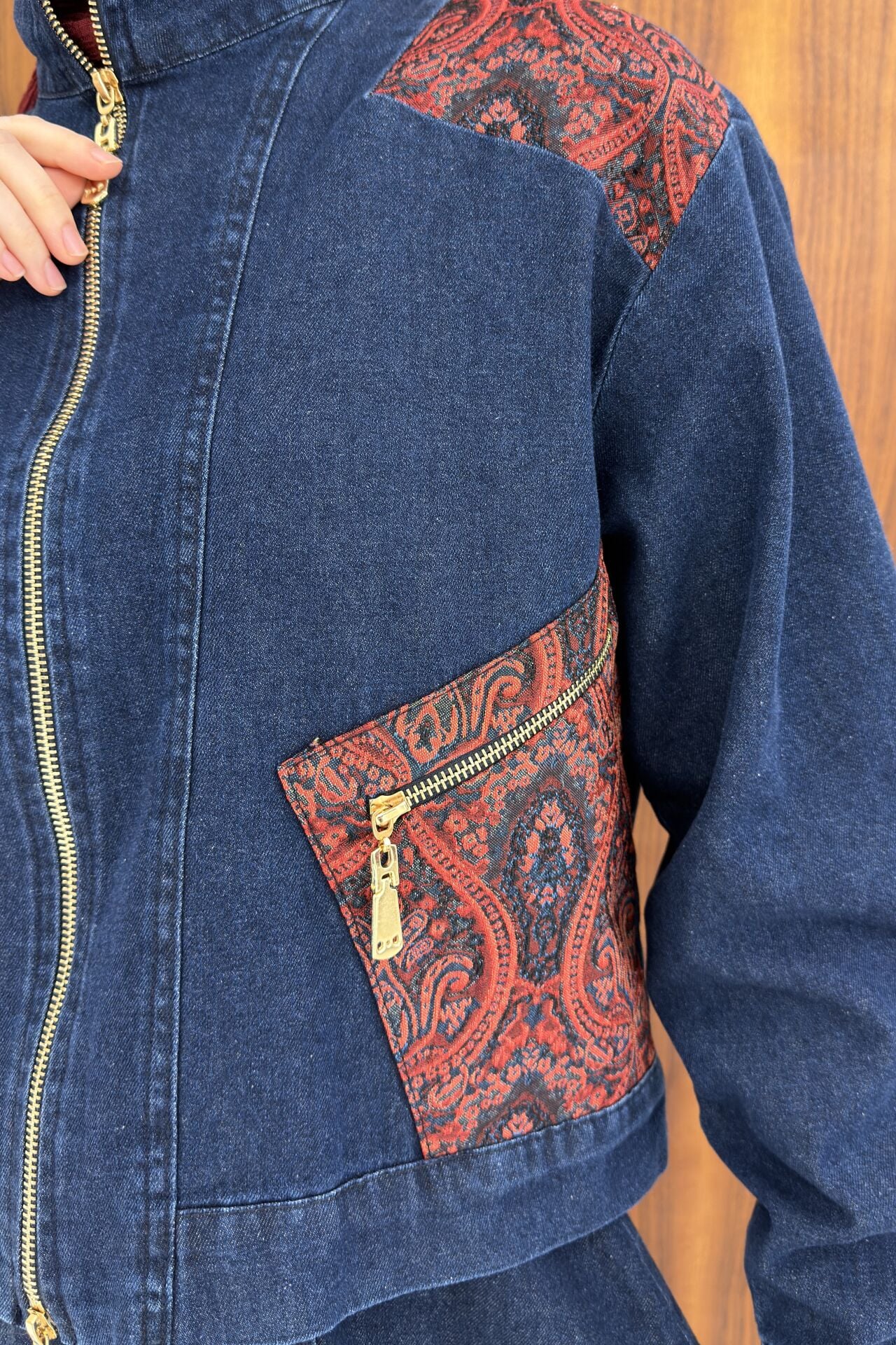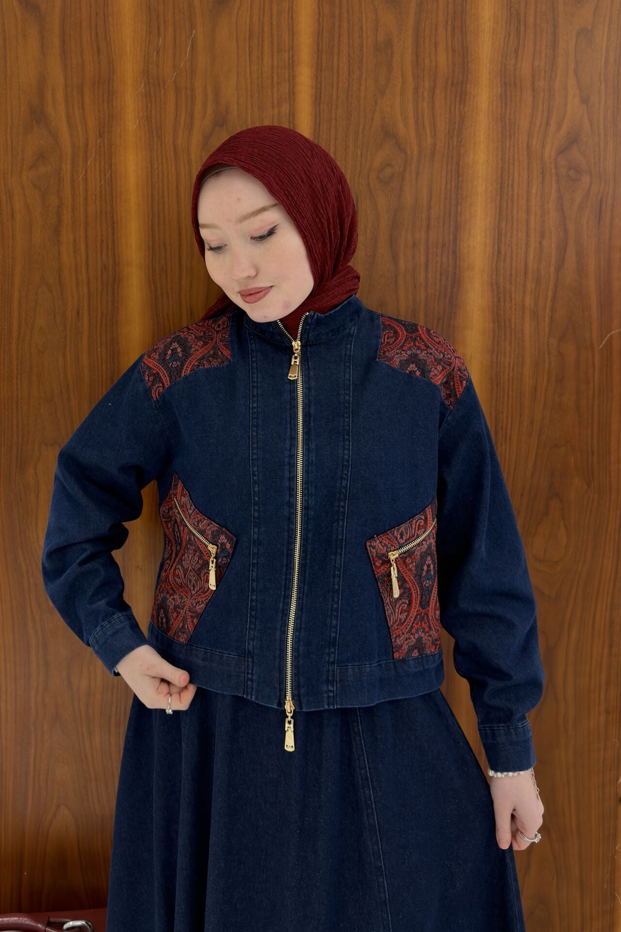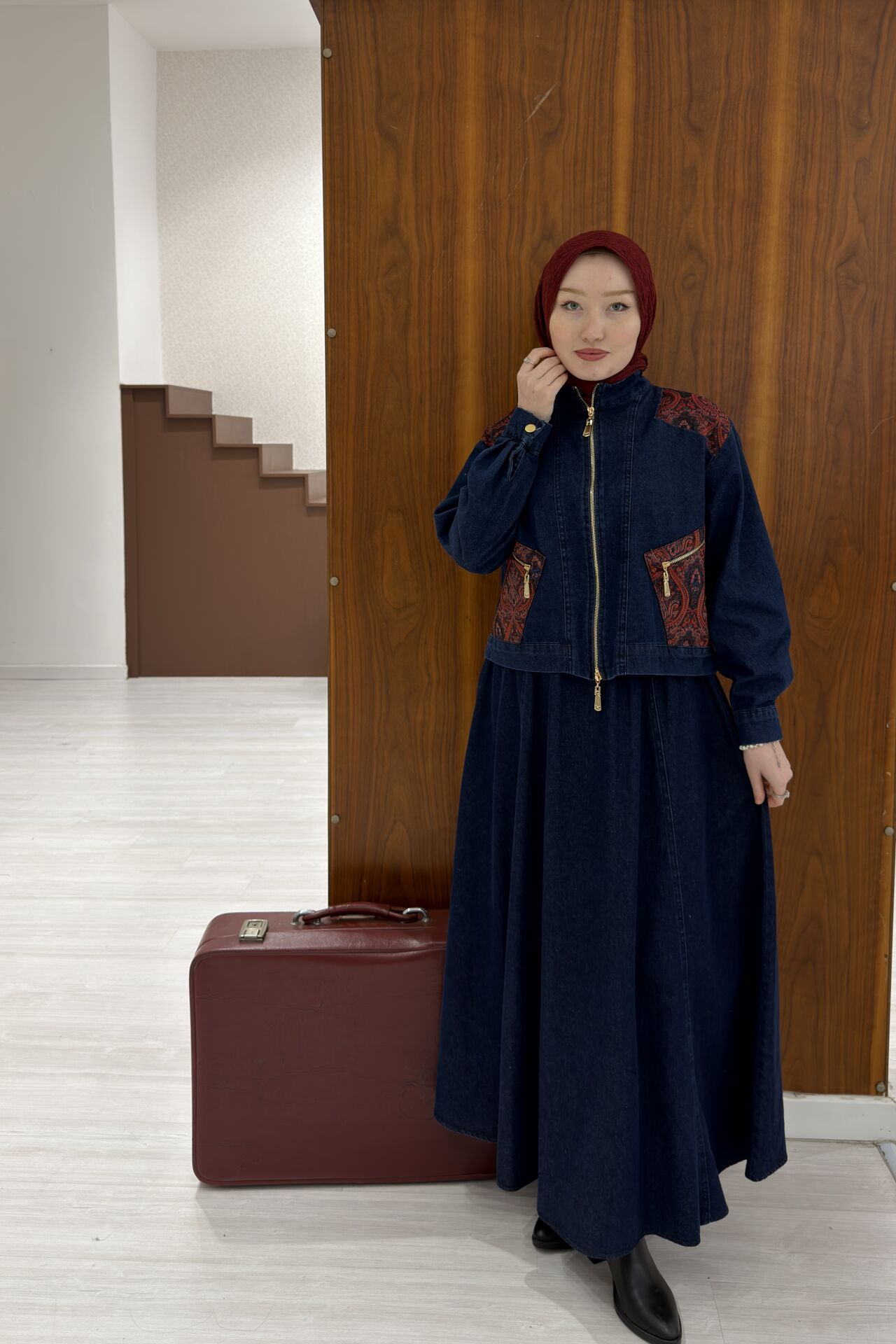 Kırmızı Nakışlı Kot Takım