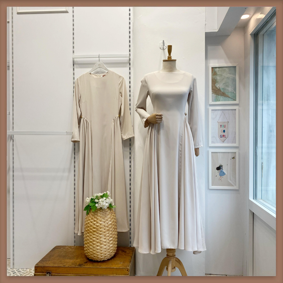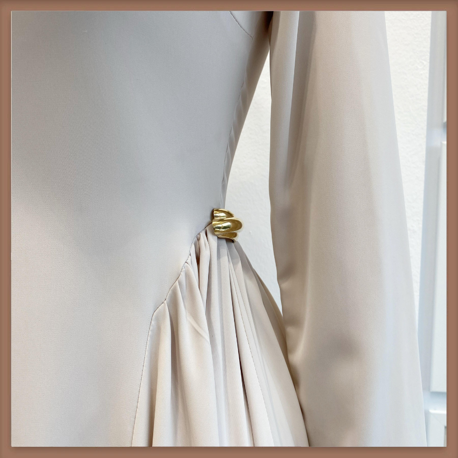 Krem Bel Detaylı Hira Elbise