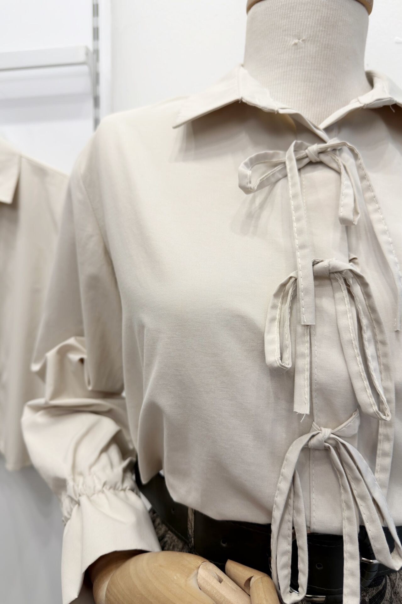 Krem Kurdele Detaylı Poplin Gömlek