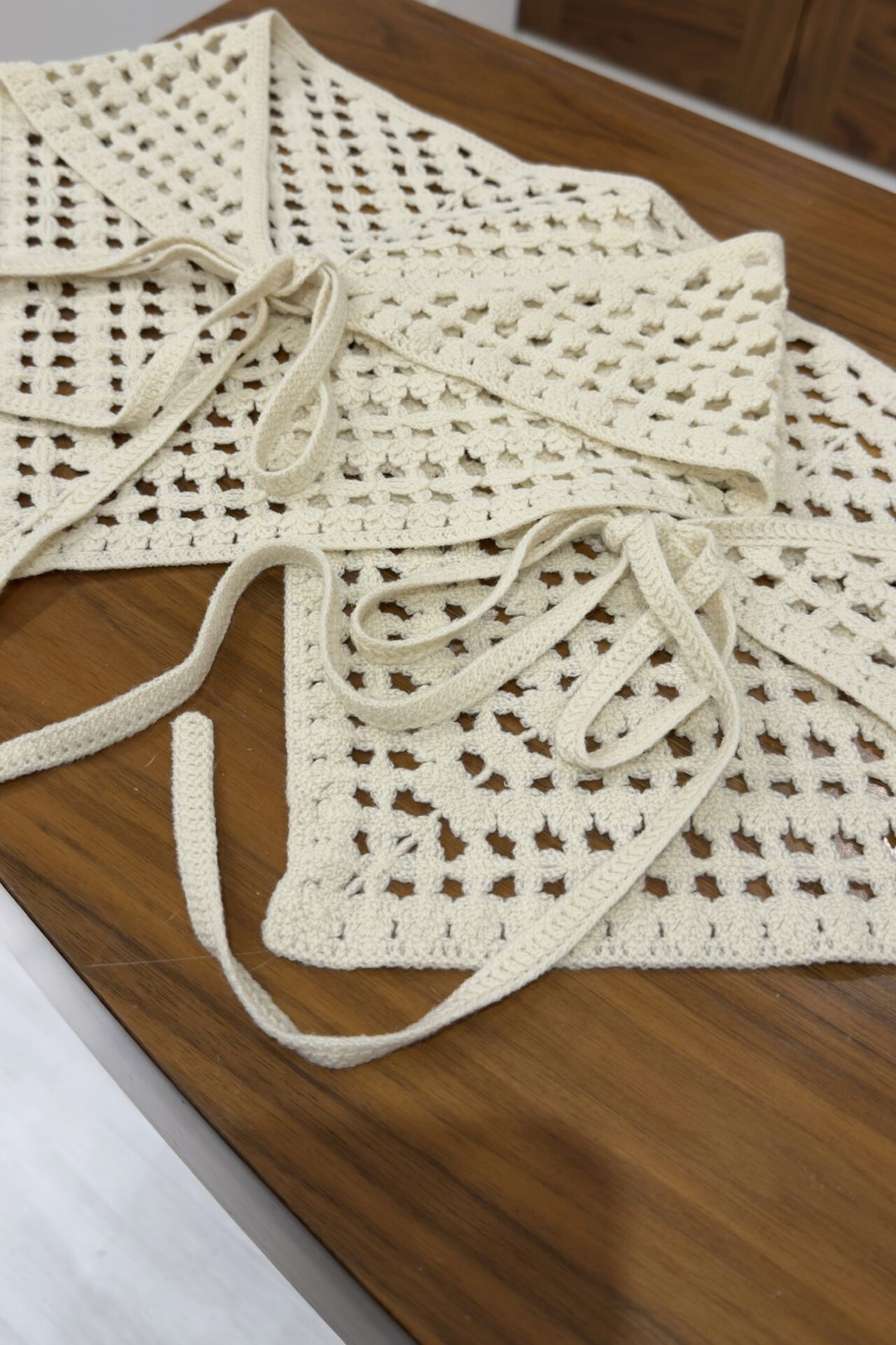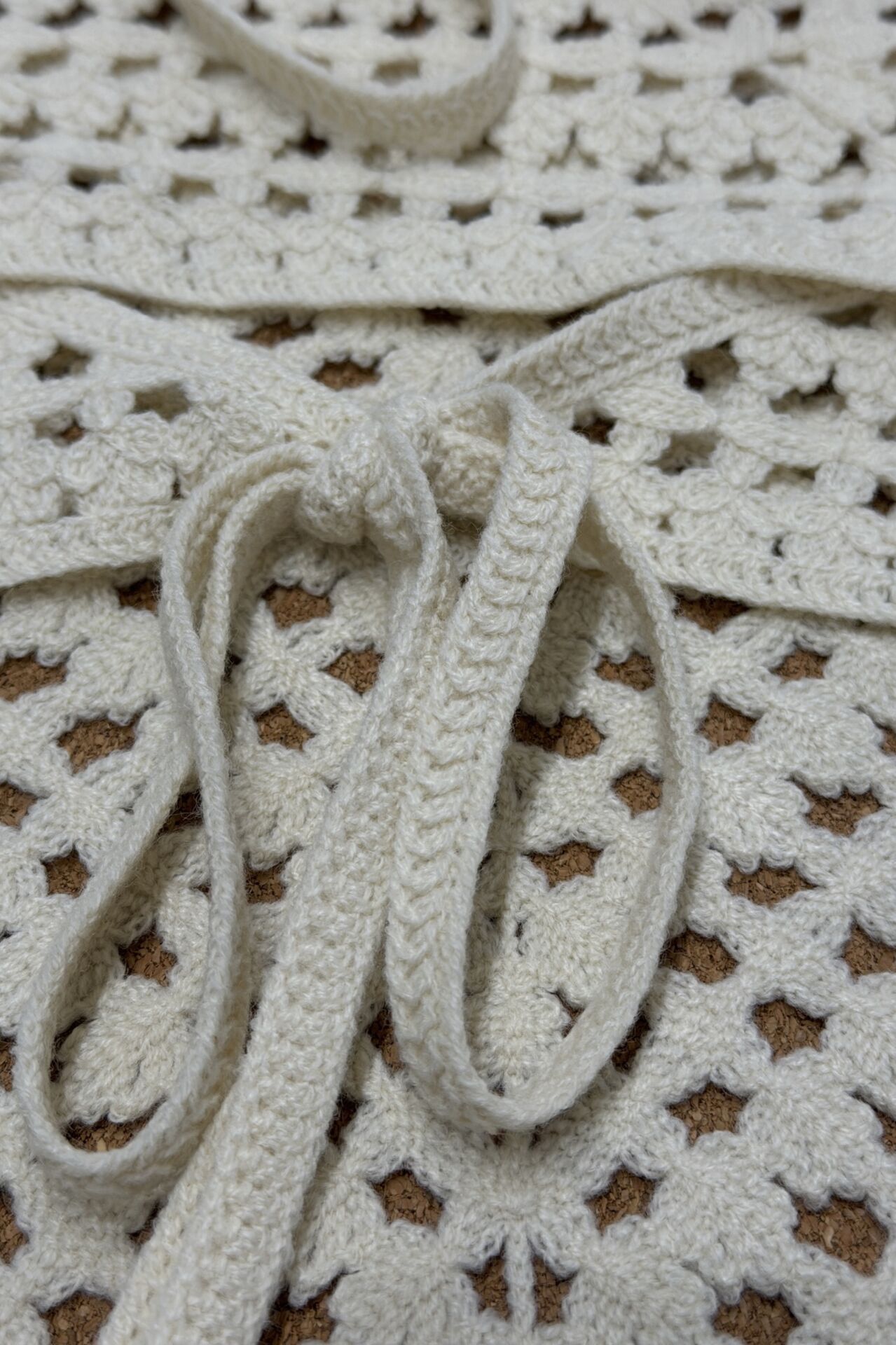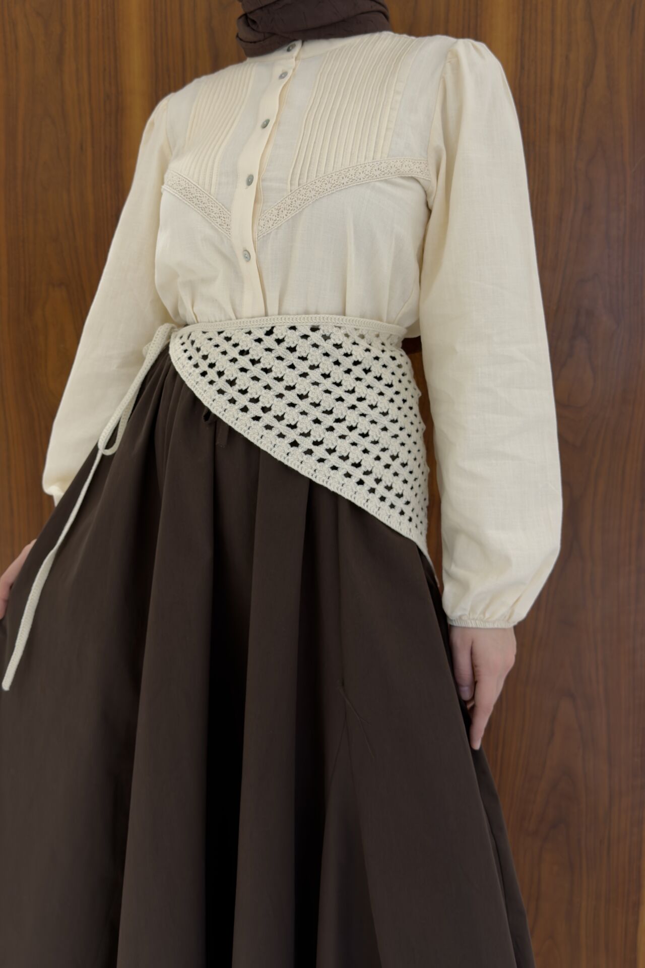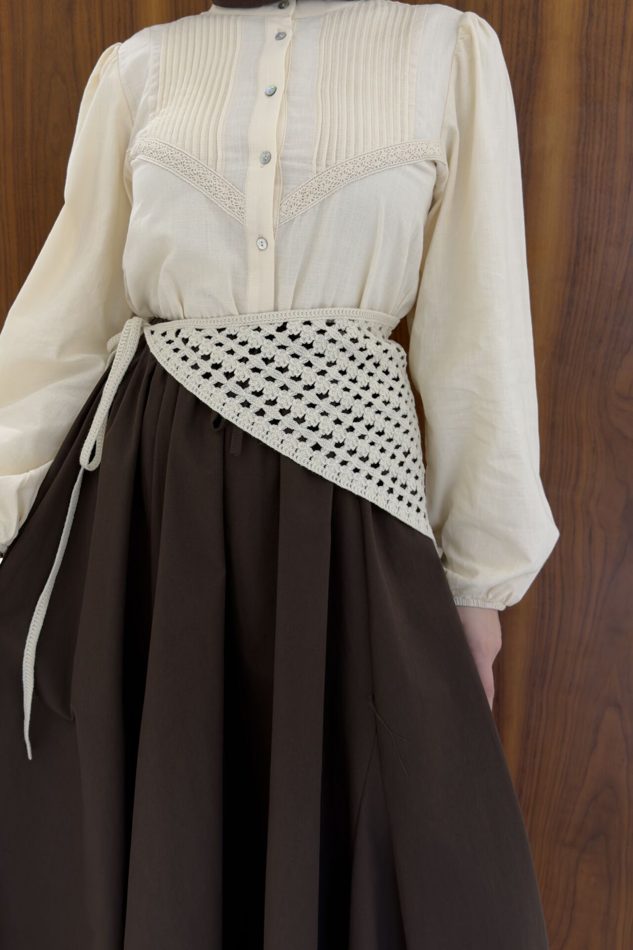 Krem Tığ İşi Örme Bel Aksesuarı