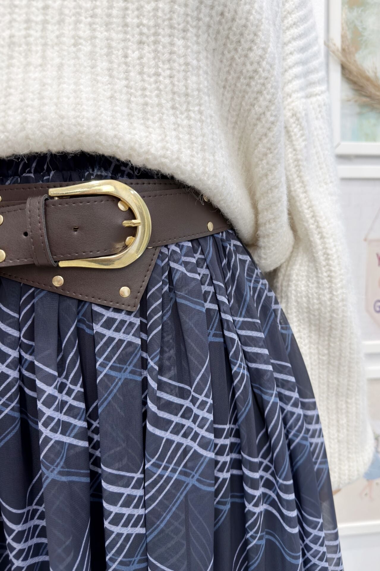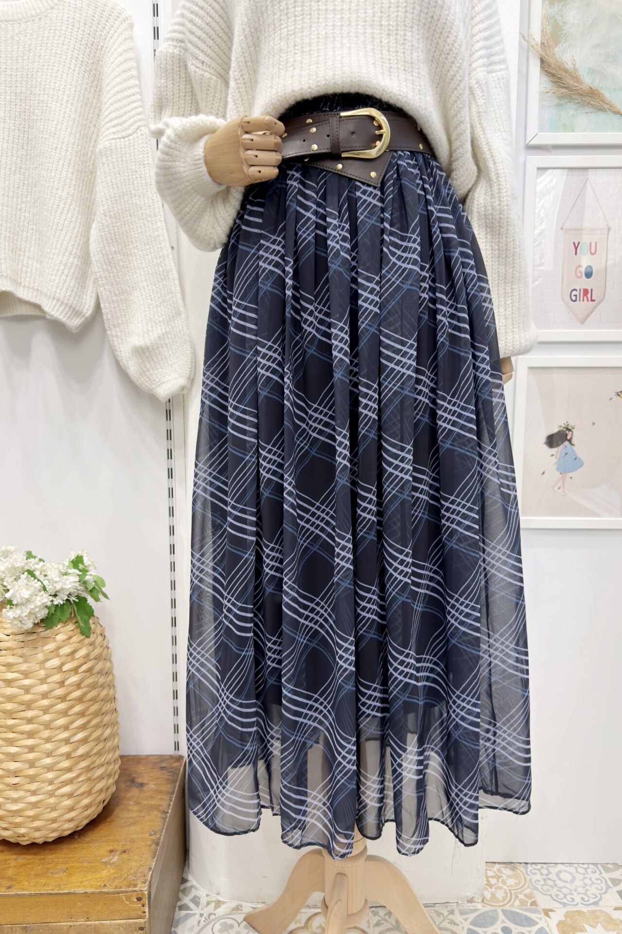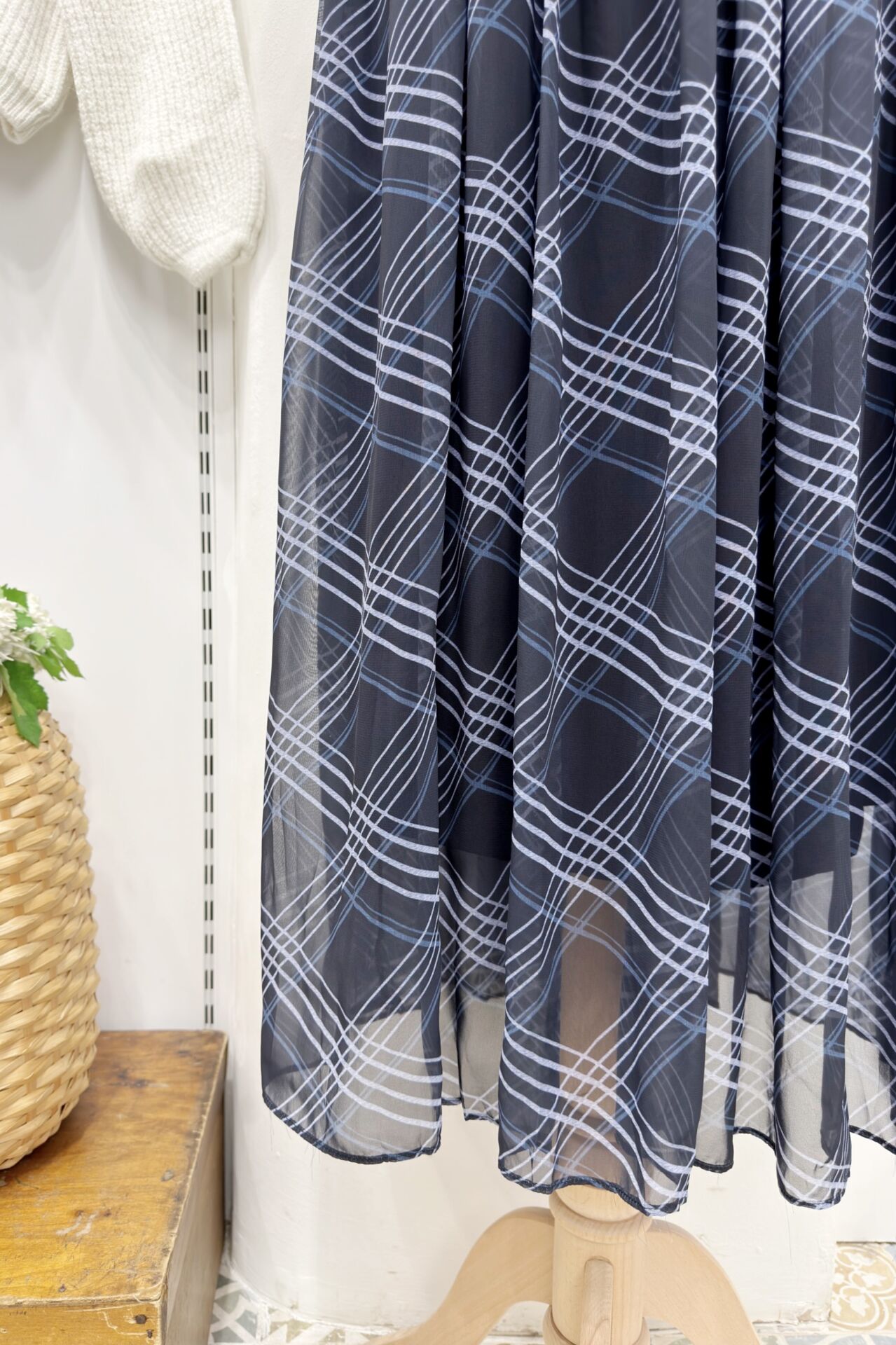 Lacivert Agnesa Ekoseli Şifon Etek