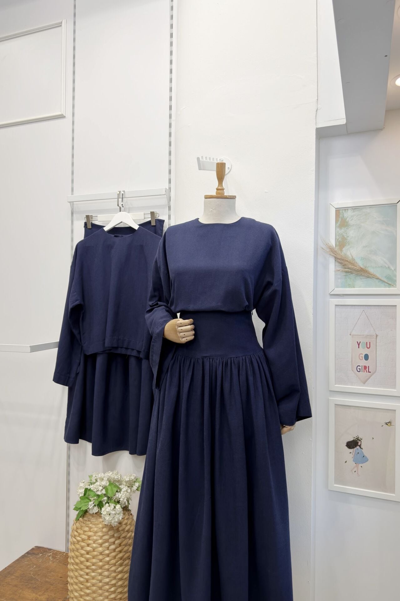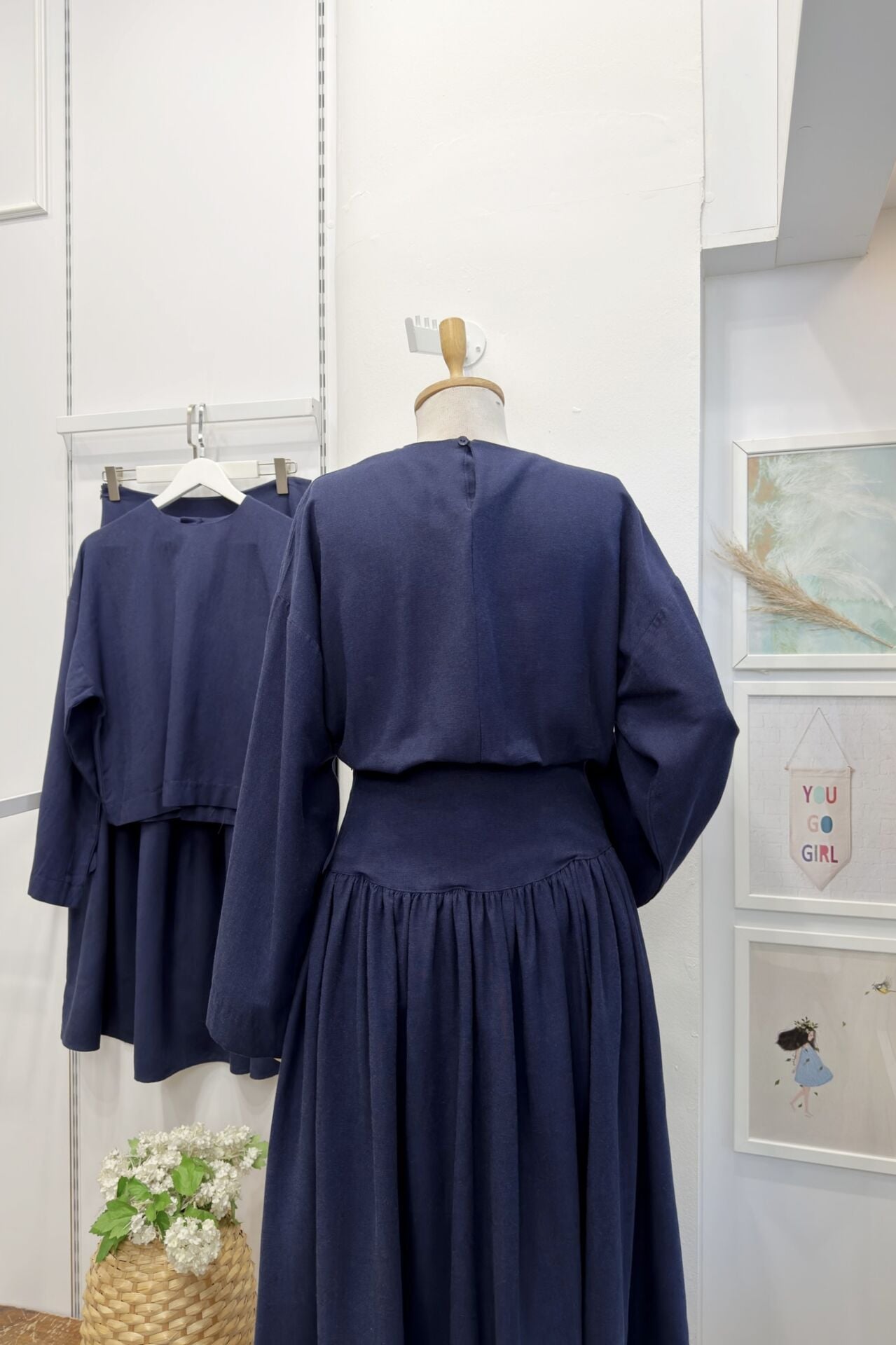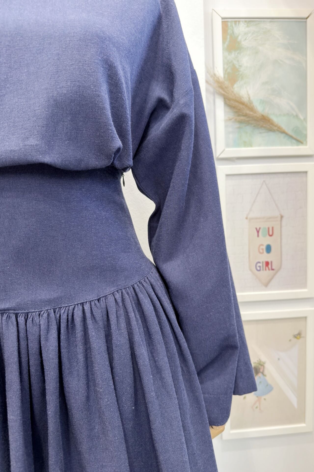 Lacivert Bel Korsajlı Keten Takım