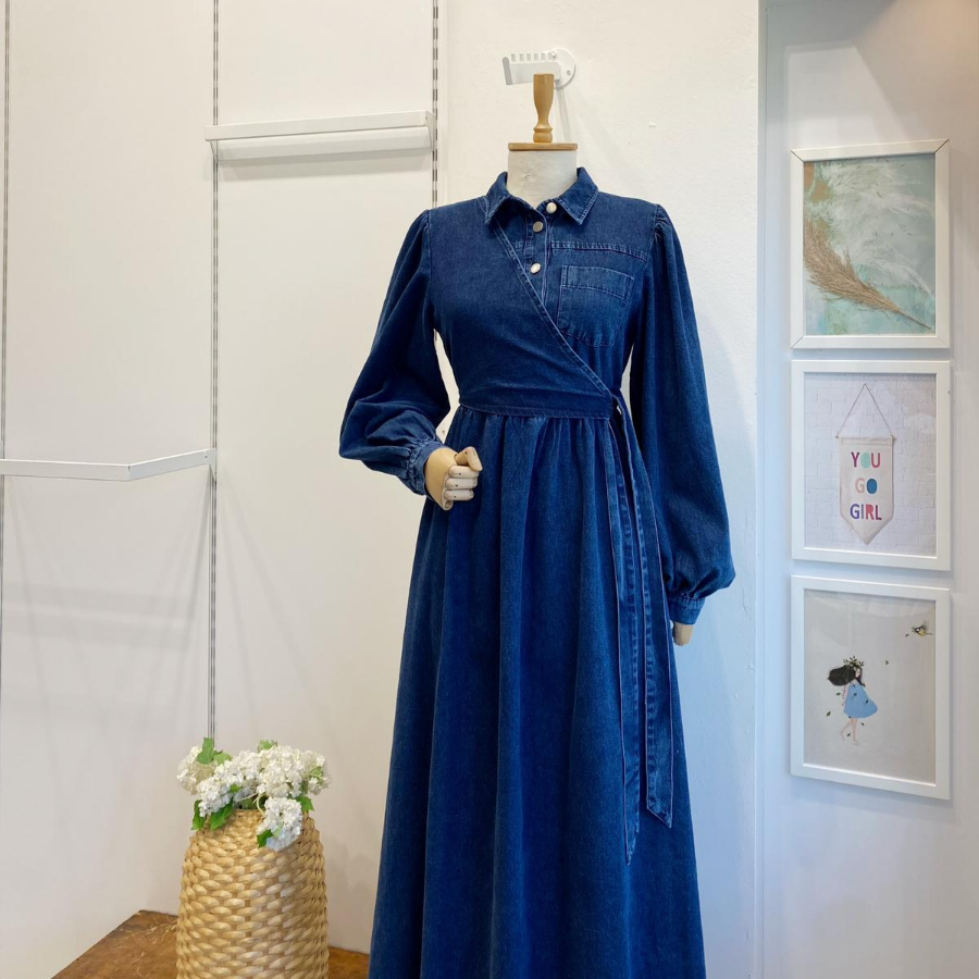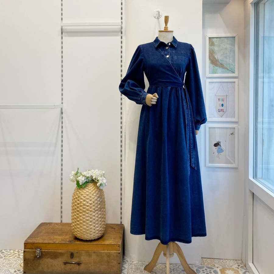 Lacivert Crop Detaylı Kot Elbise OO25A011219901A