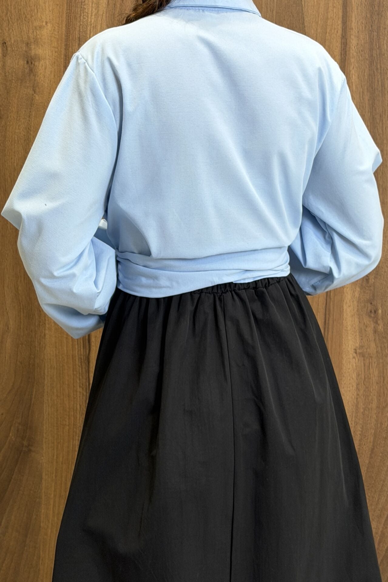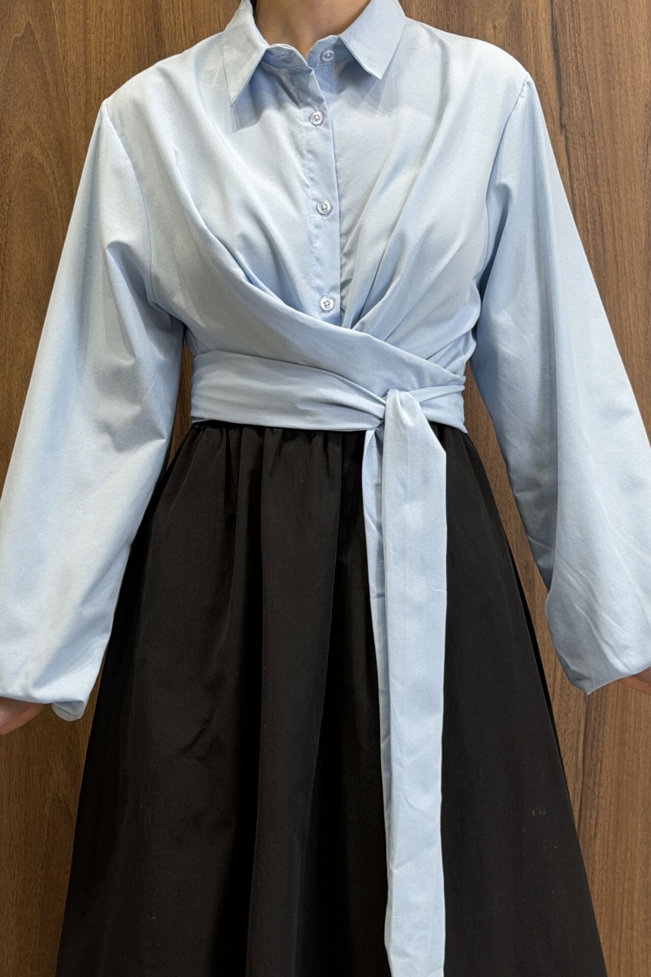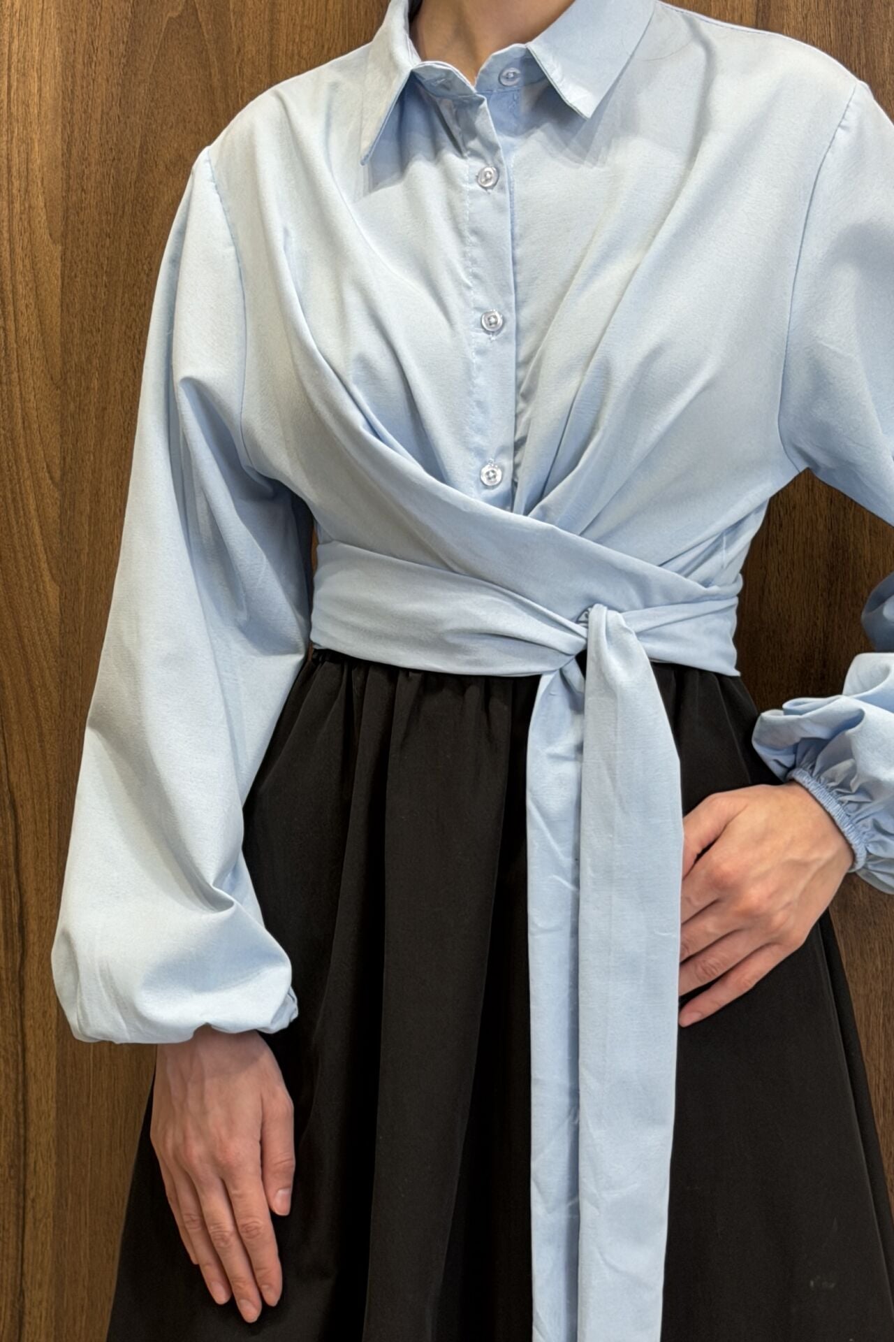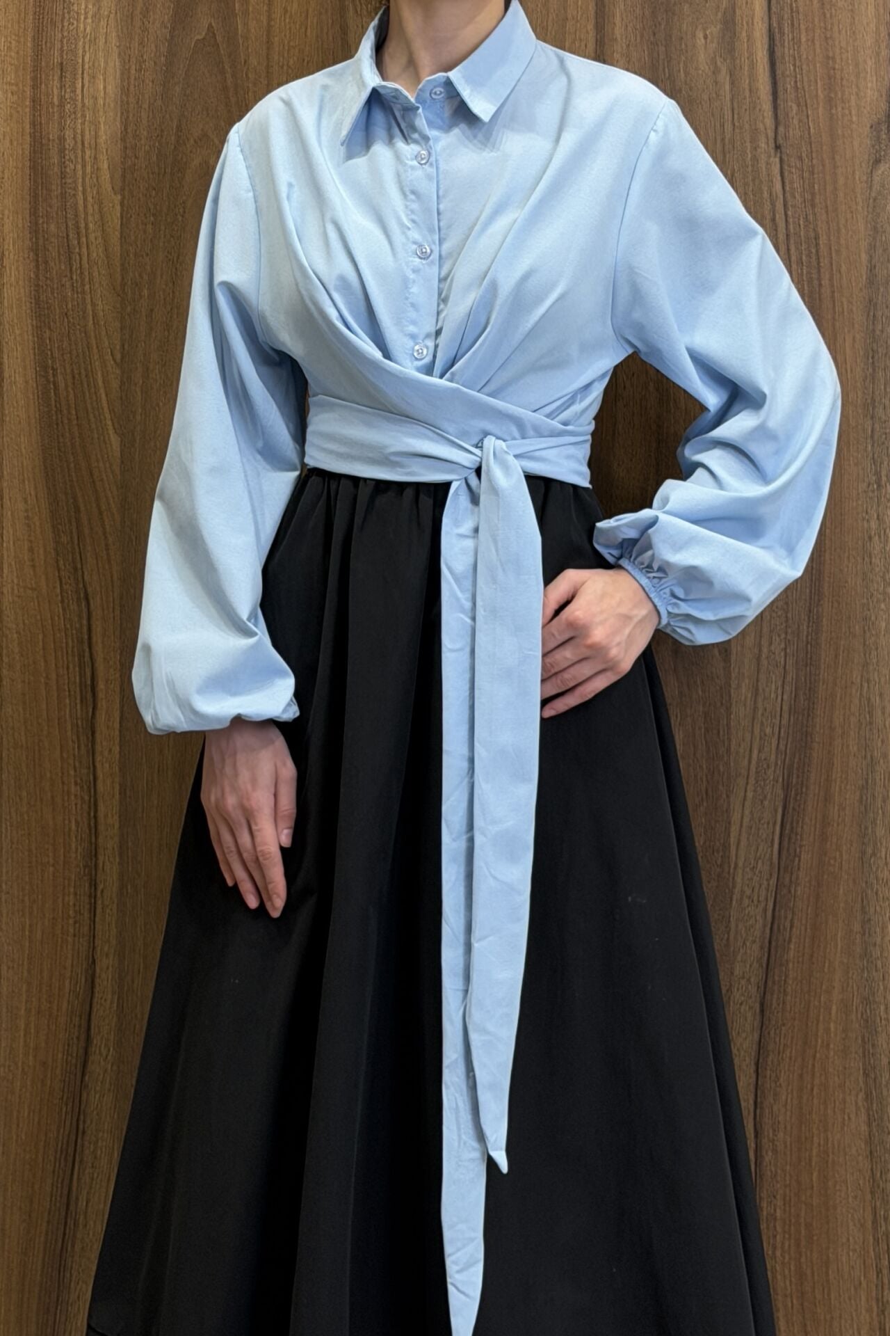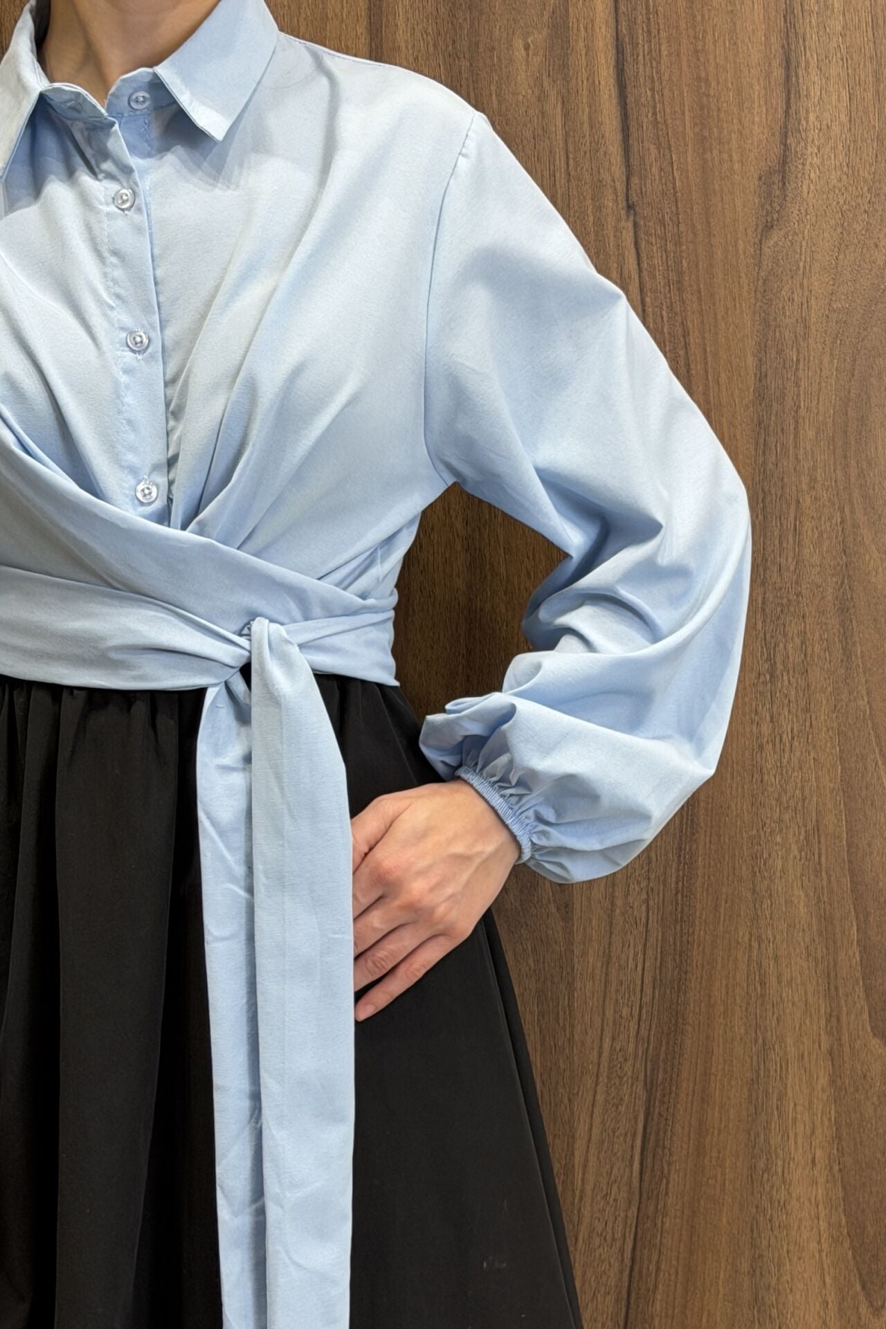 Mavi Poplin Kumaş Kuşaklı Gömlek