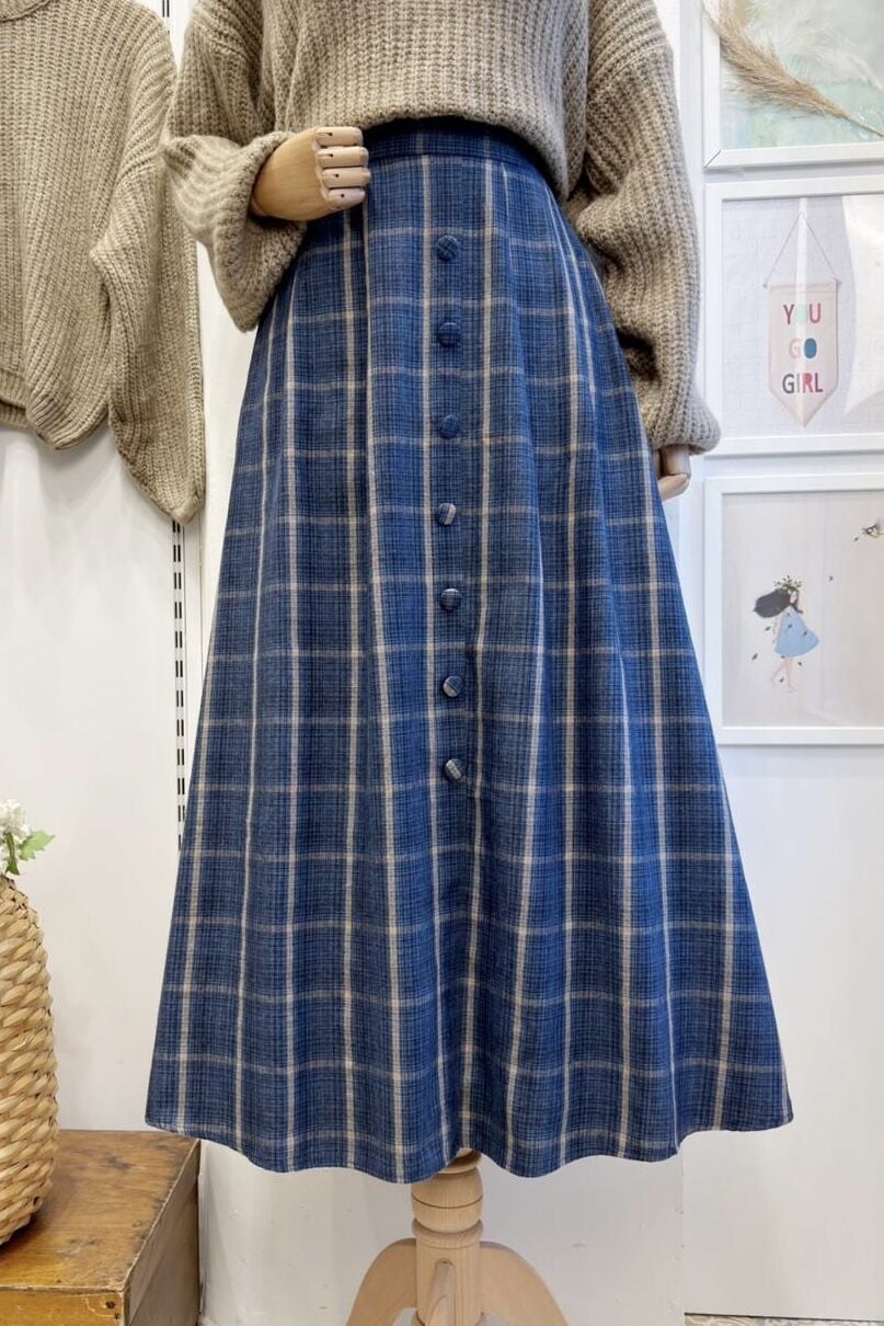 Mavi Rosetta Ekose Desenli Etek