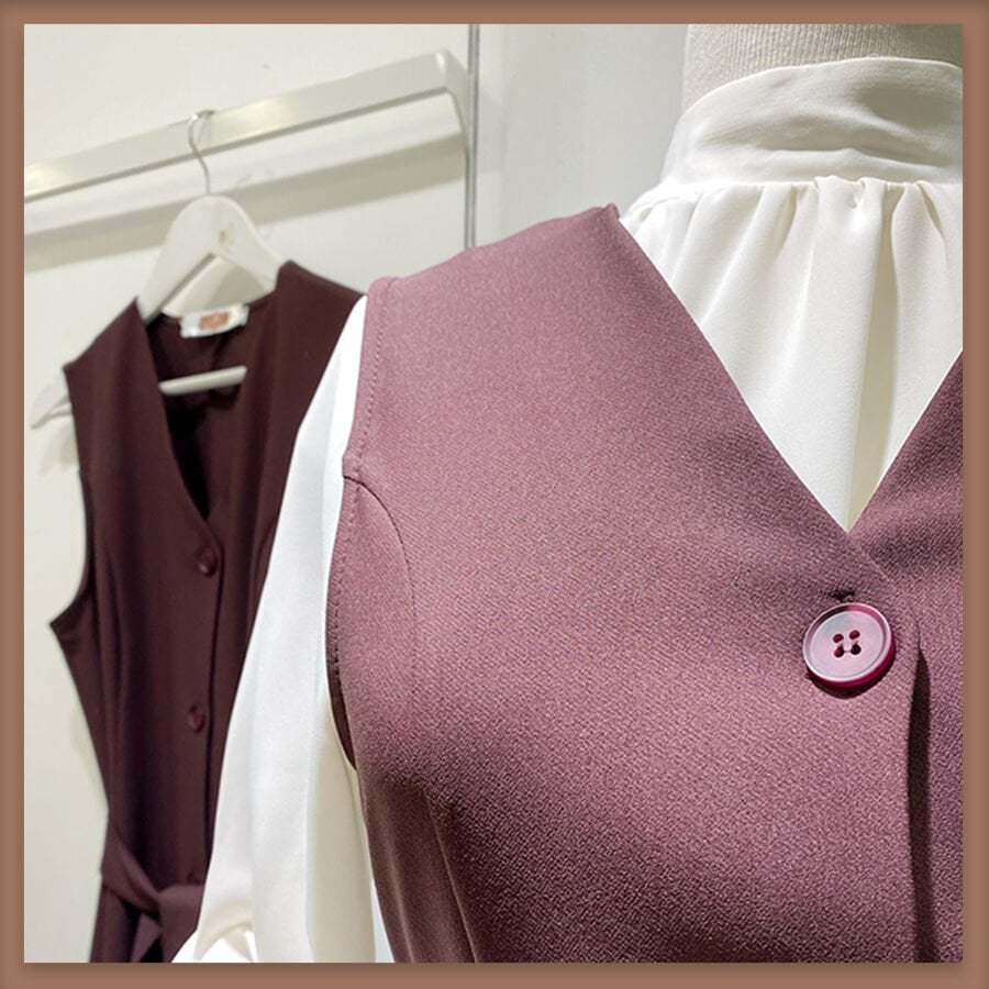 Mürdüm önü düğmeli double crep kumaş jile