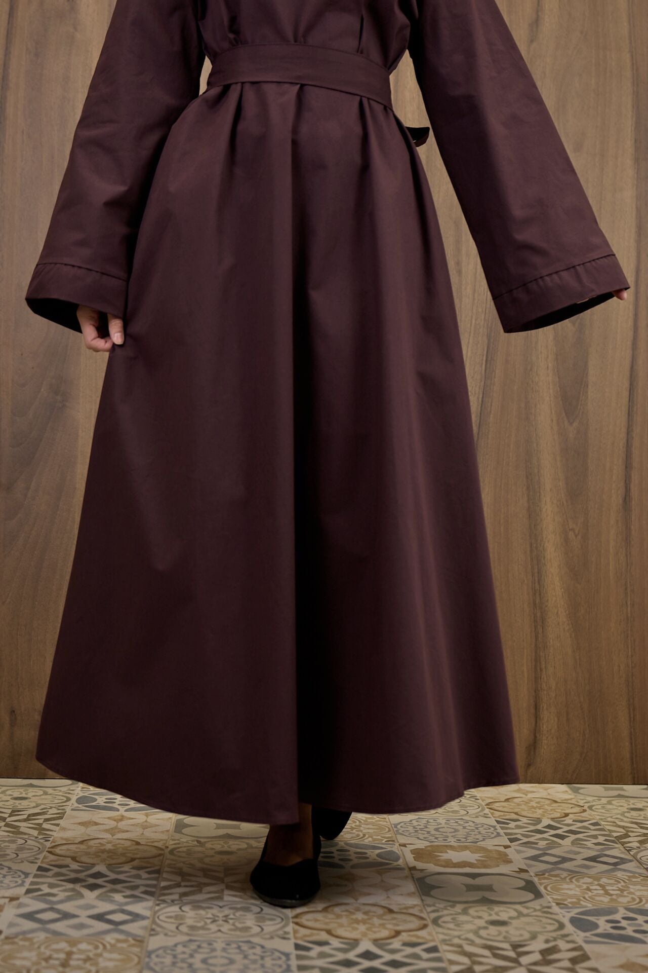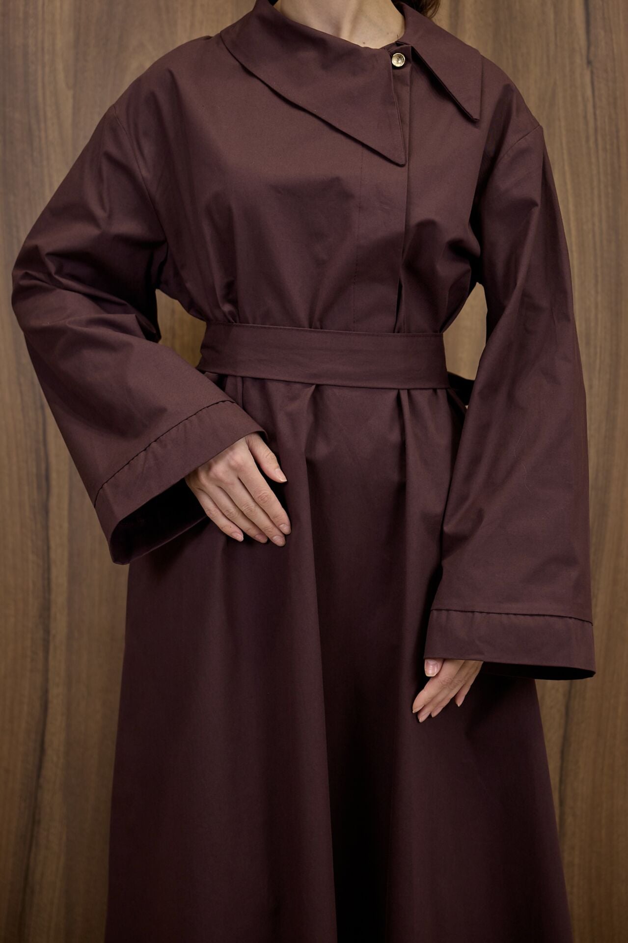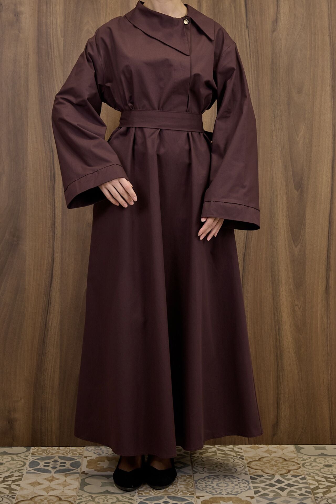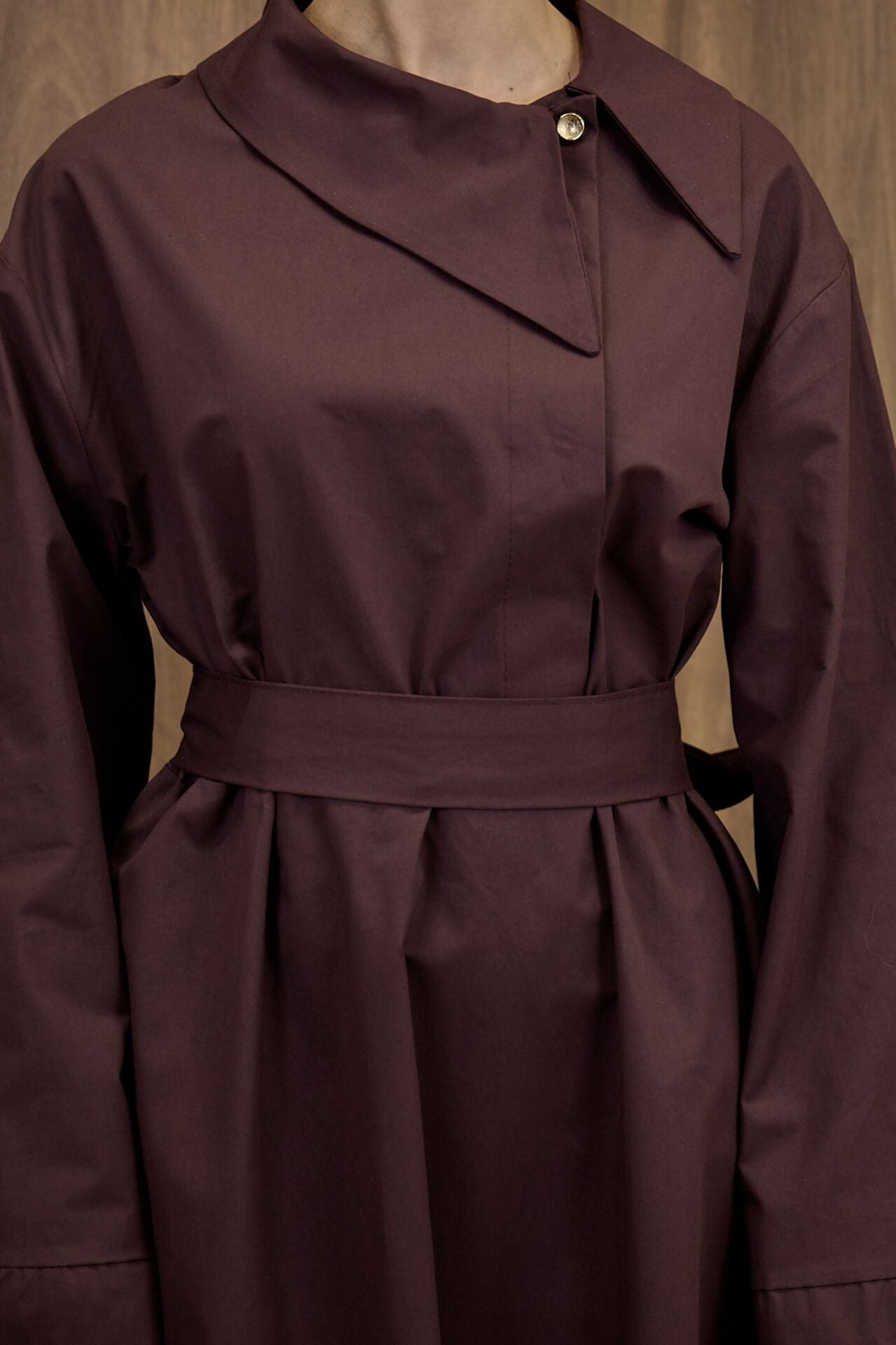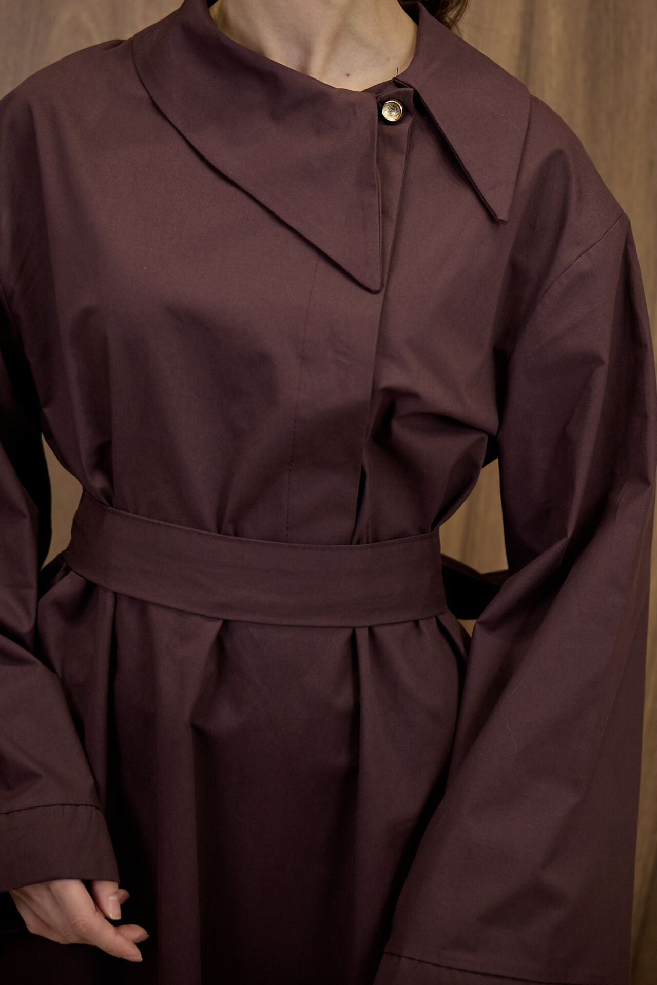 Mürdüm Yaka Detaylı Poplin Elbise