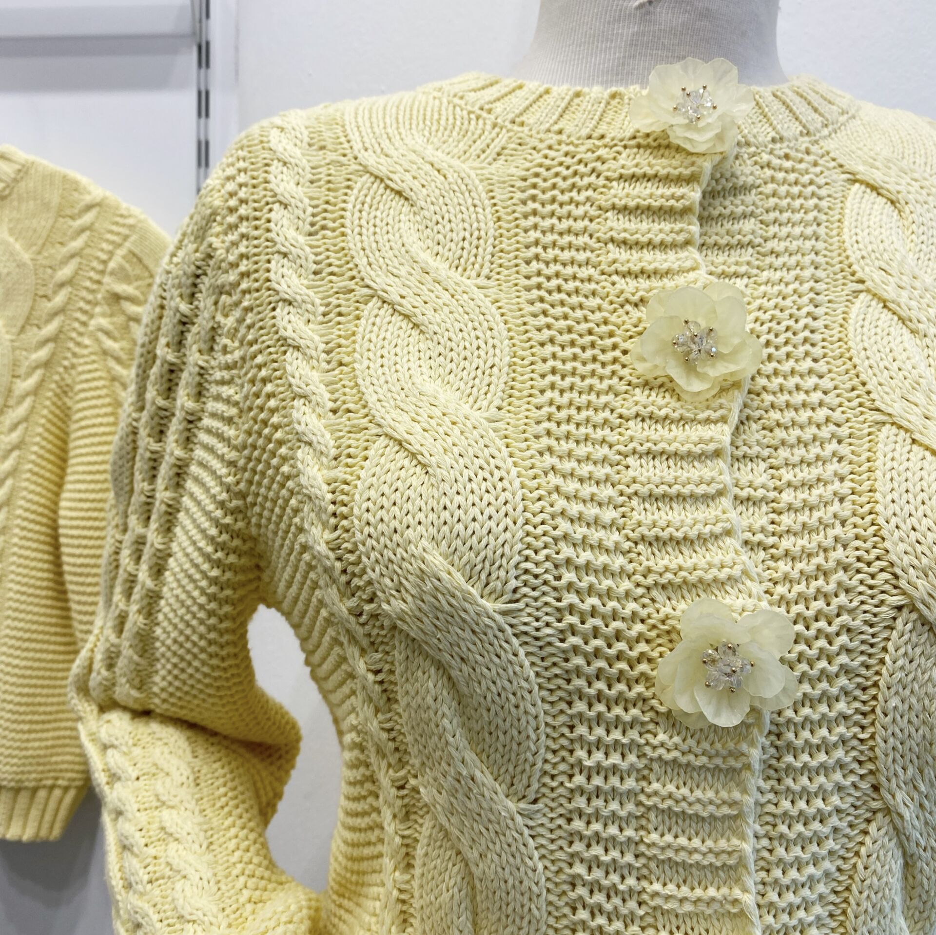 Sarı Boncuk Düğmeli Hırka