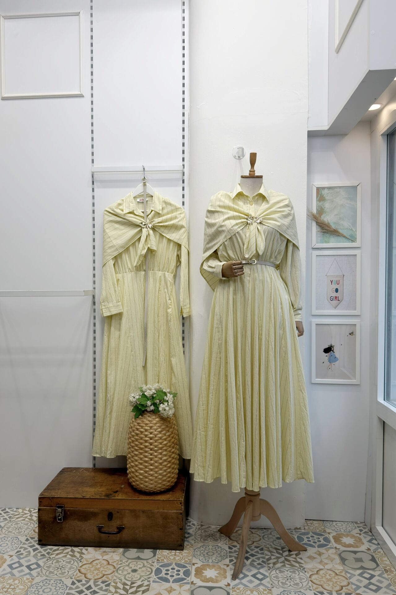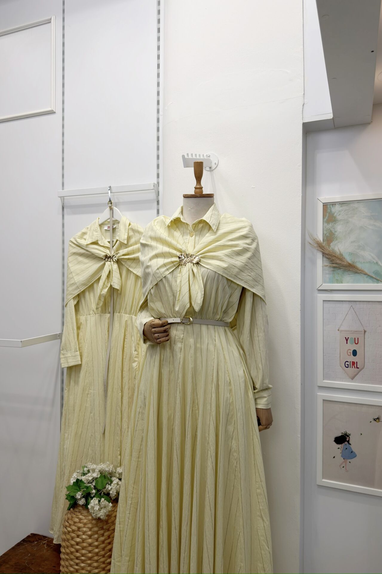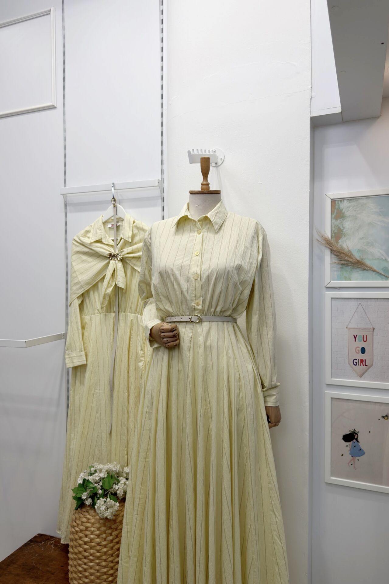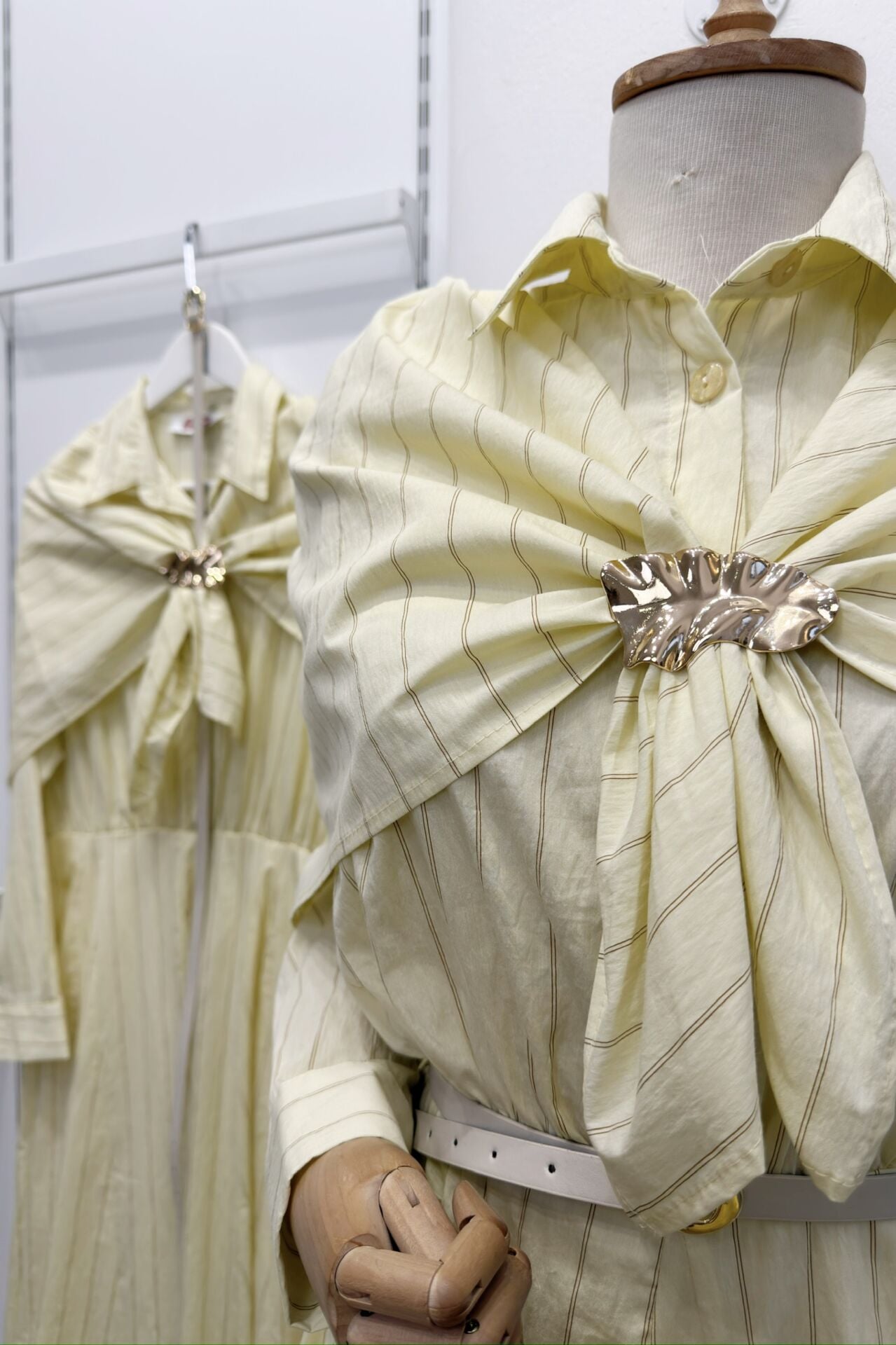 Sarı Şal Aksesuarlı Çizgili Elbise