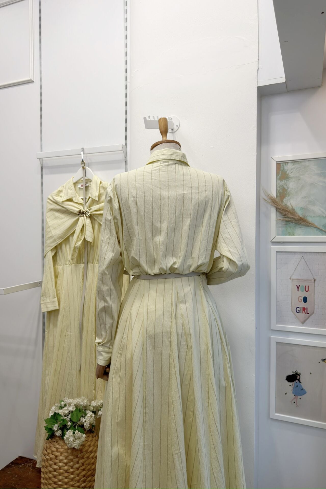 Sarı Şal Aksesuarlı Çizgili Elbise BFRZ3N726A
