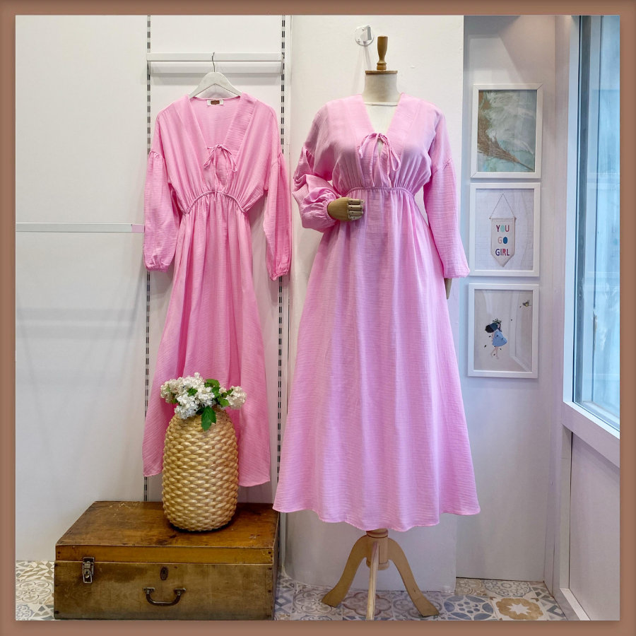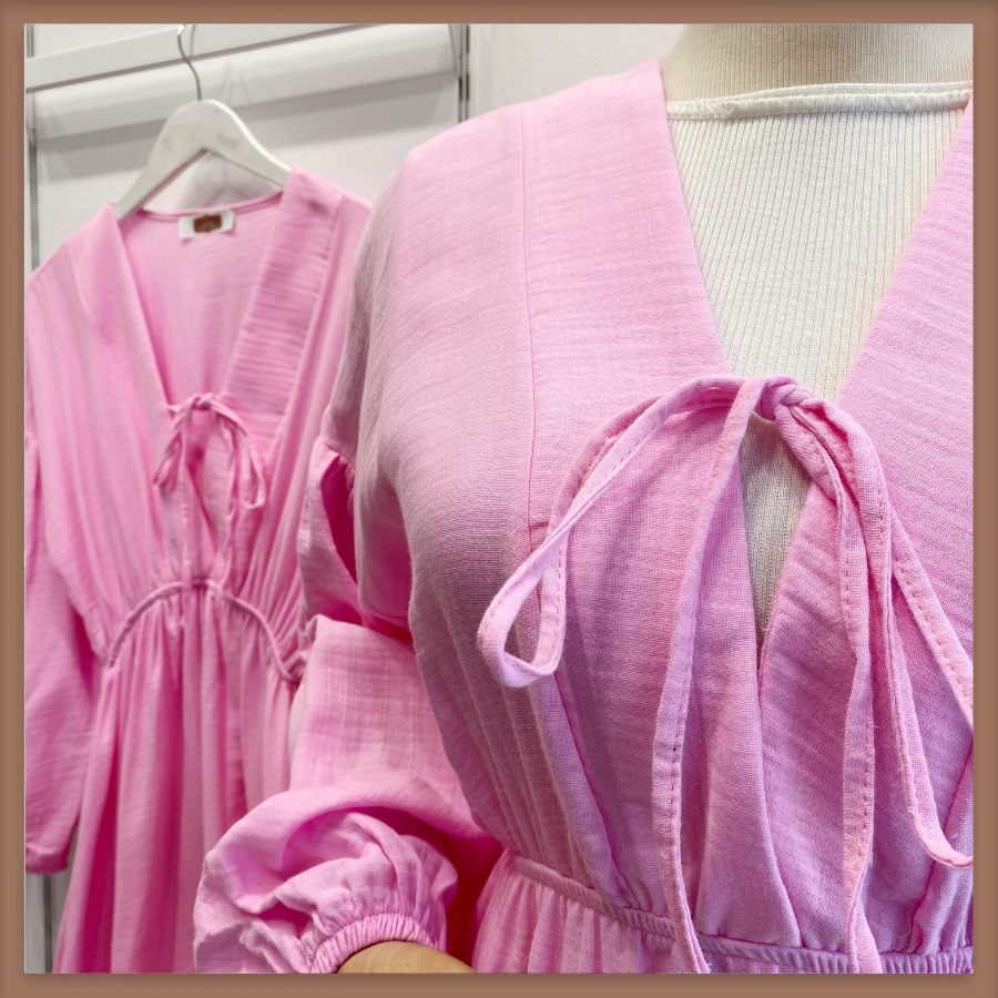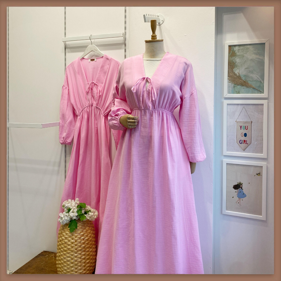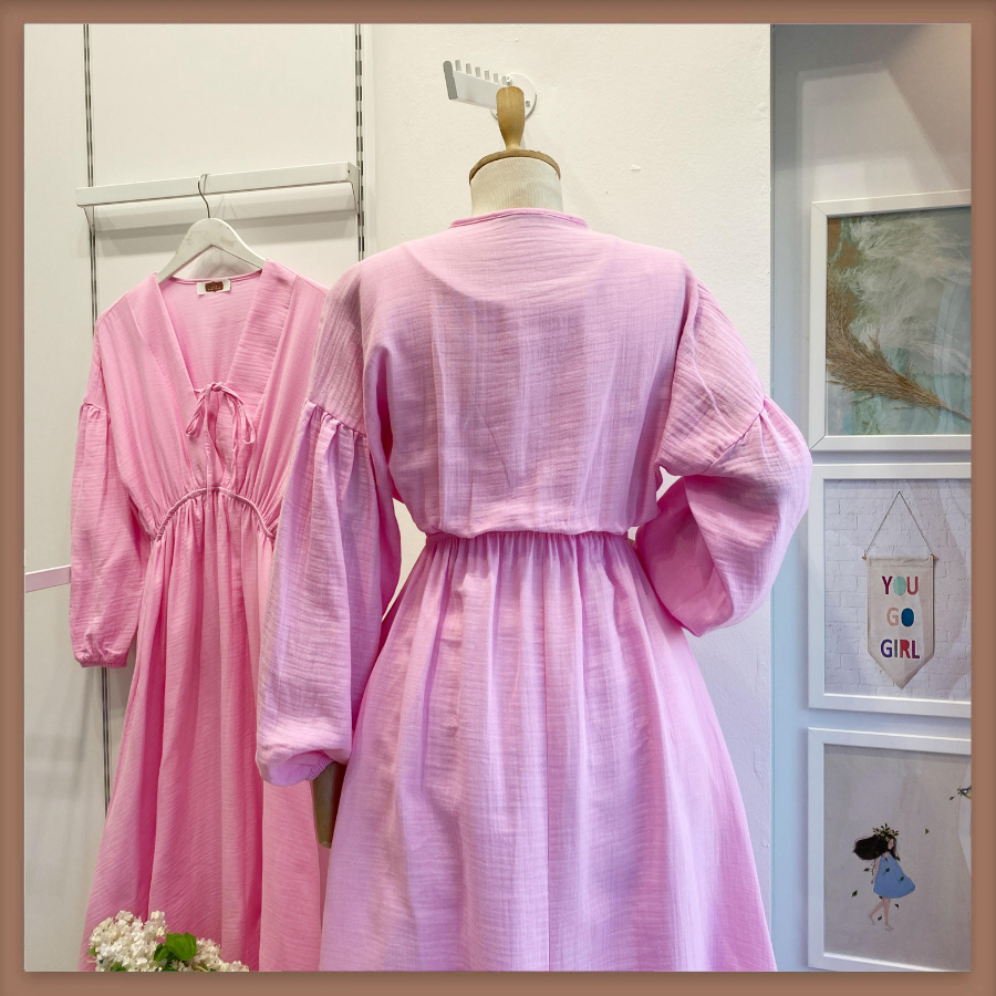 Şeker Pembe Müslin Kumaş Matin Elbise