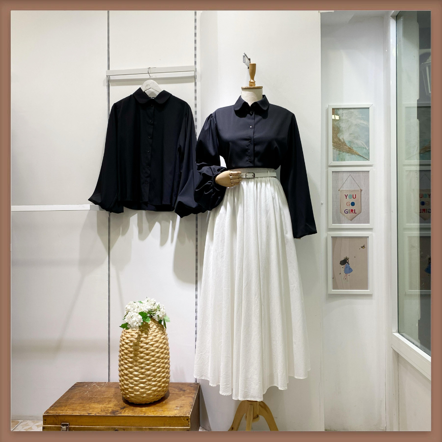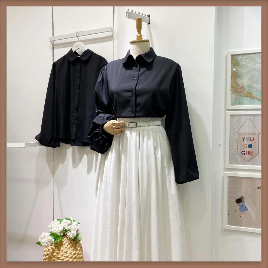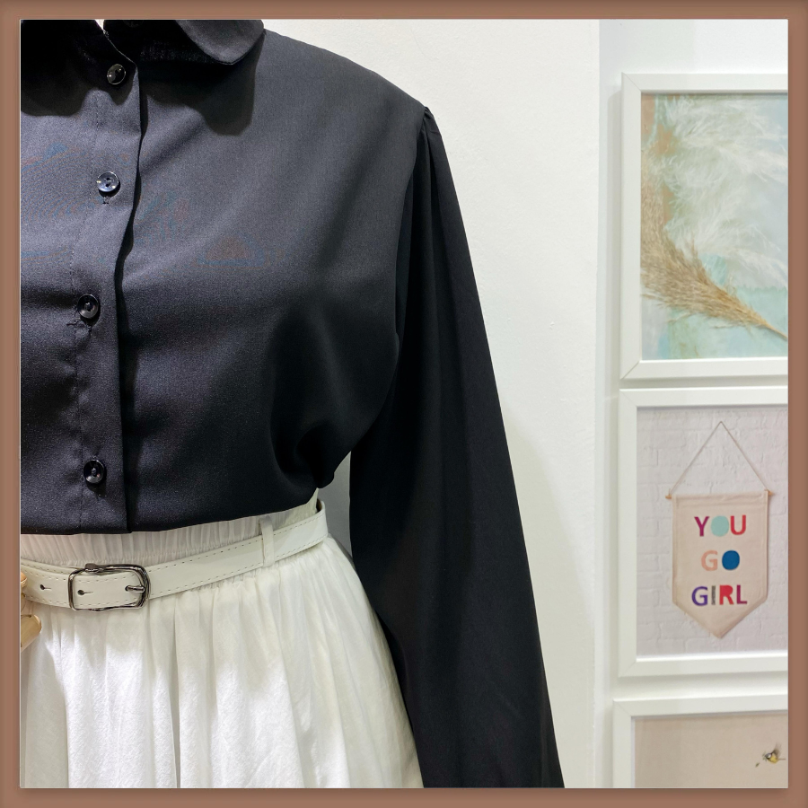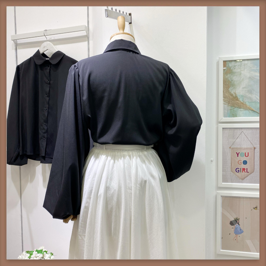 Siyah Bebe Yaka Balon Kol Poplin Gömlek