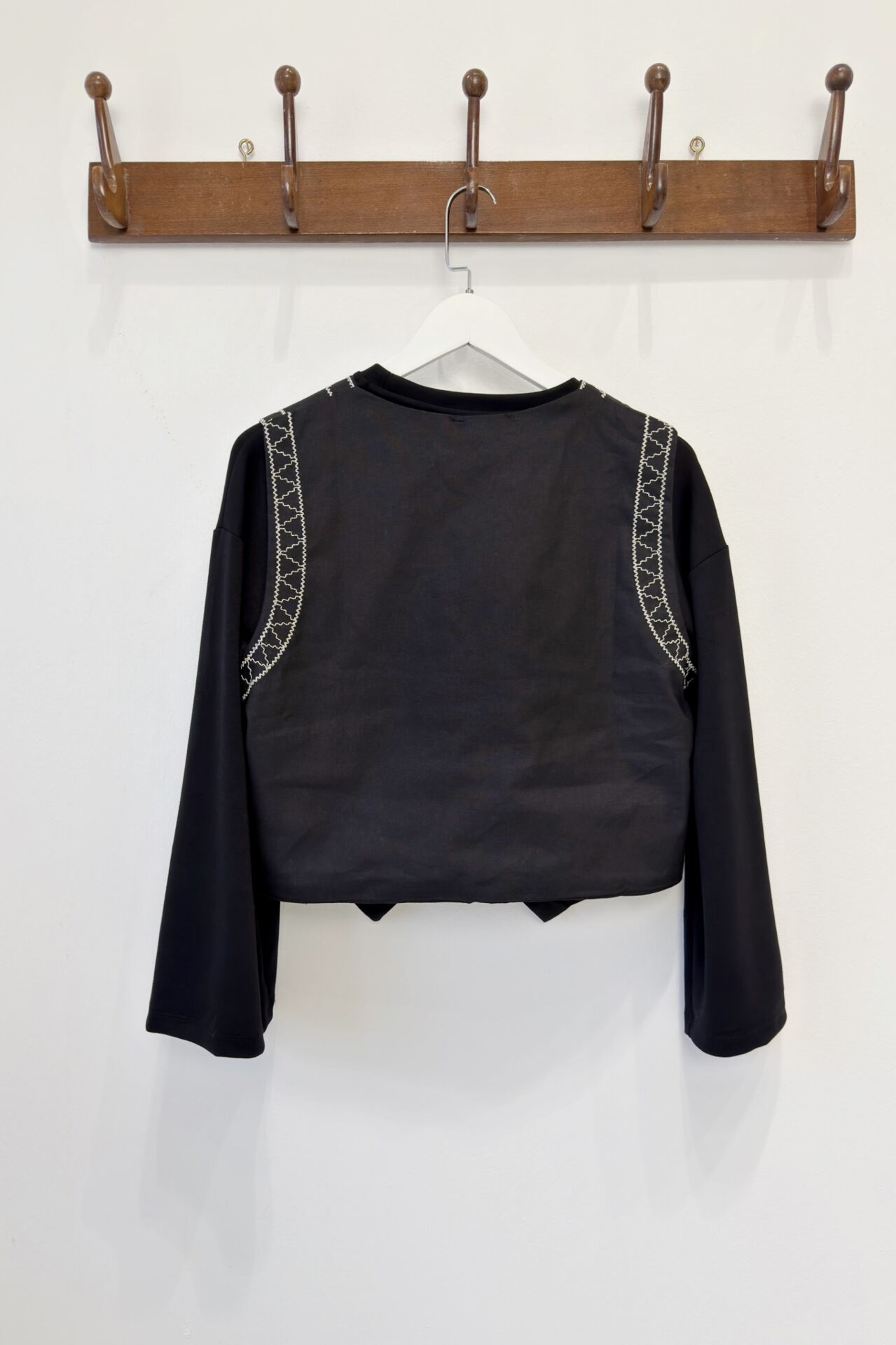 Siyah Çiçek Nakışlı Keten Yelek