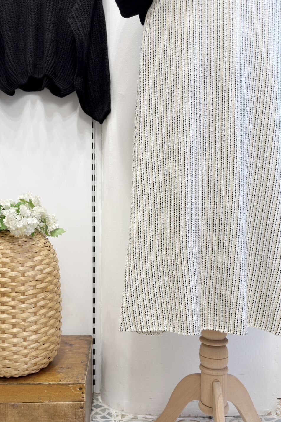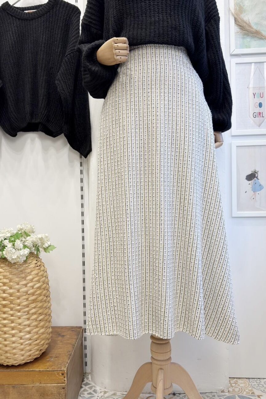 Siyah Çizgili Beyaz Şanel Etek