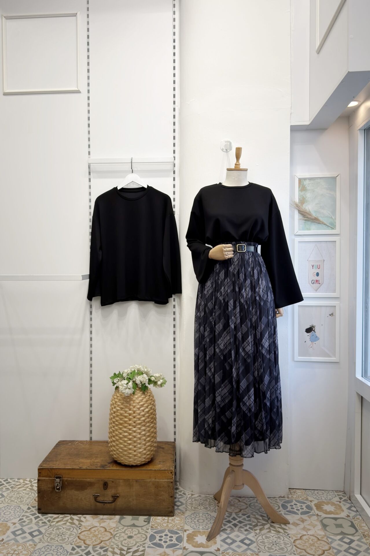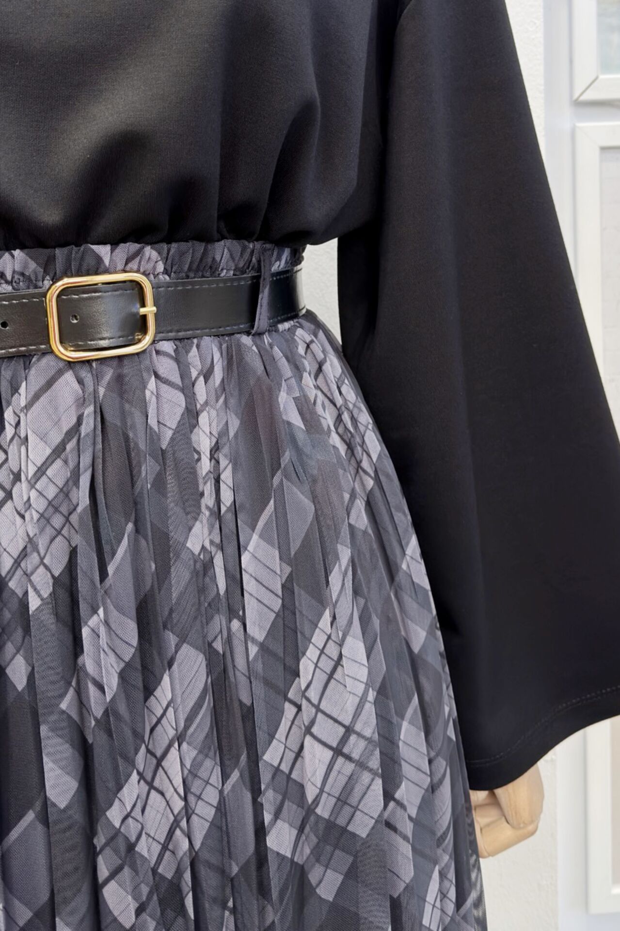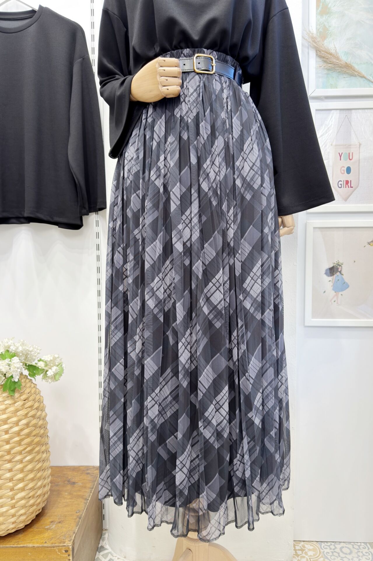 Siyah Ekose Desenli Maria Tül Etek