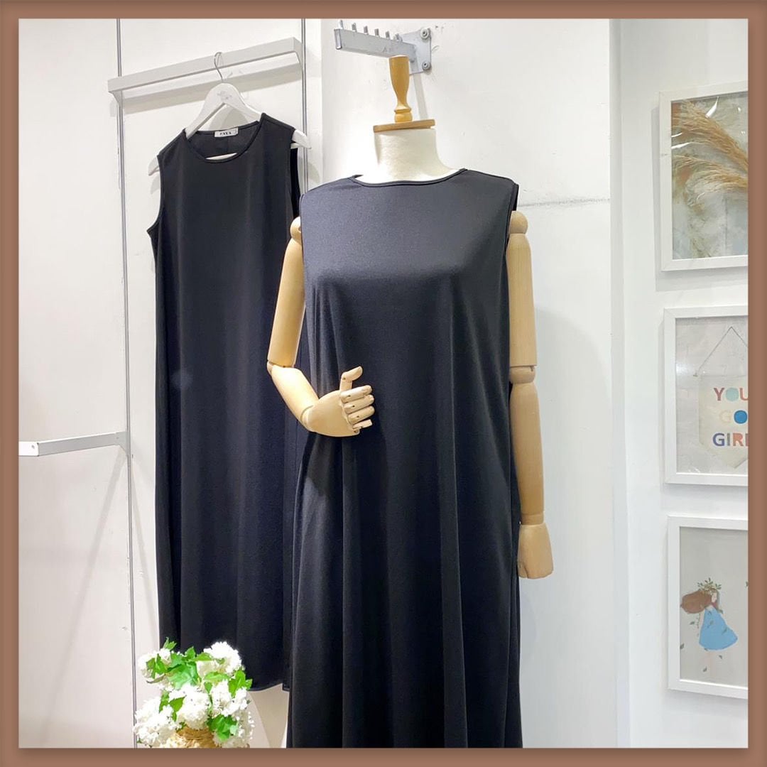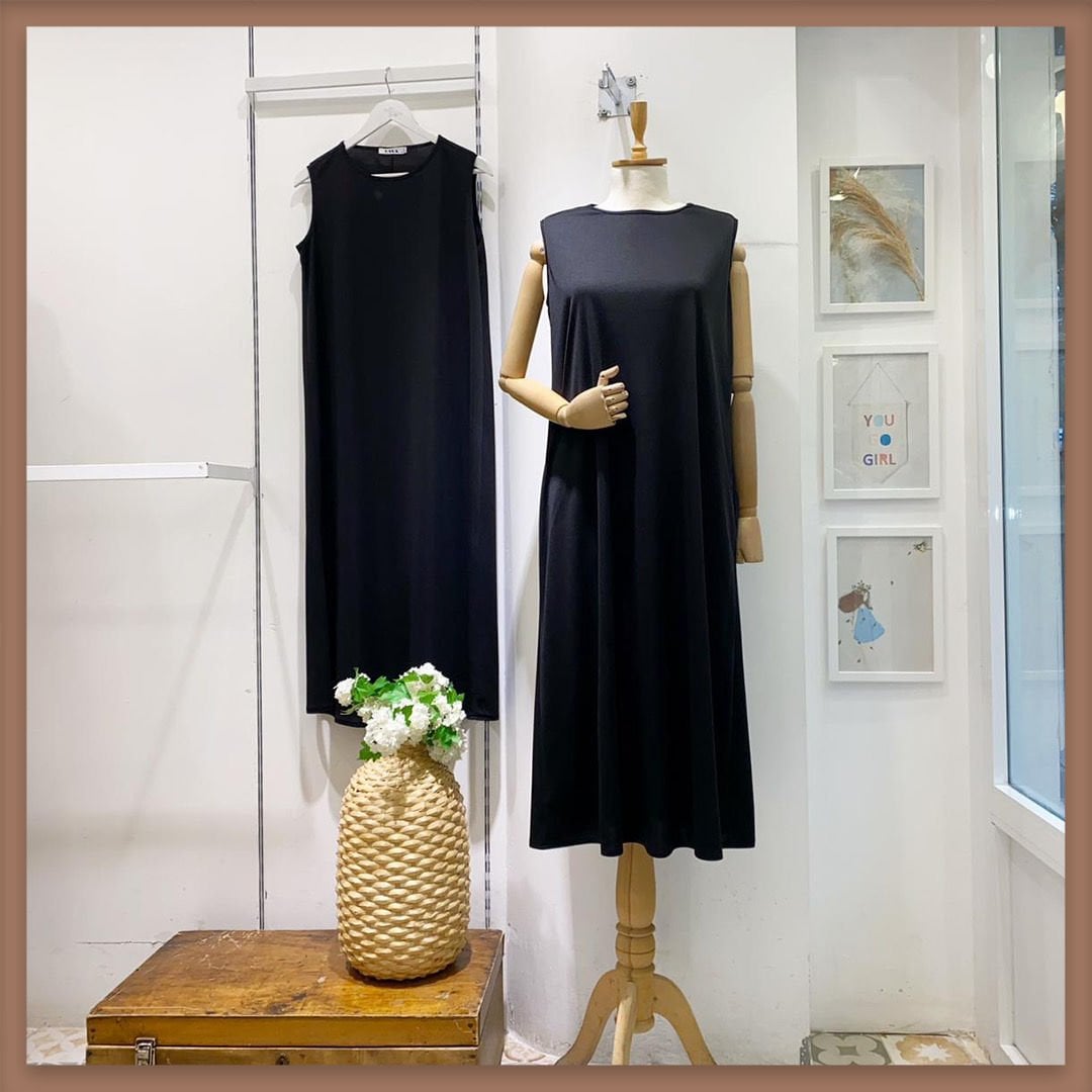 Siyah sıfır kol elbise içlik