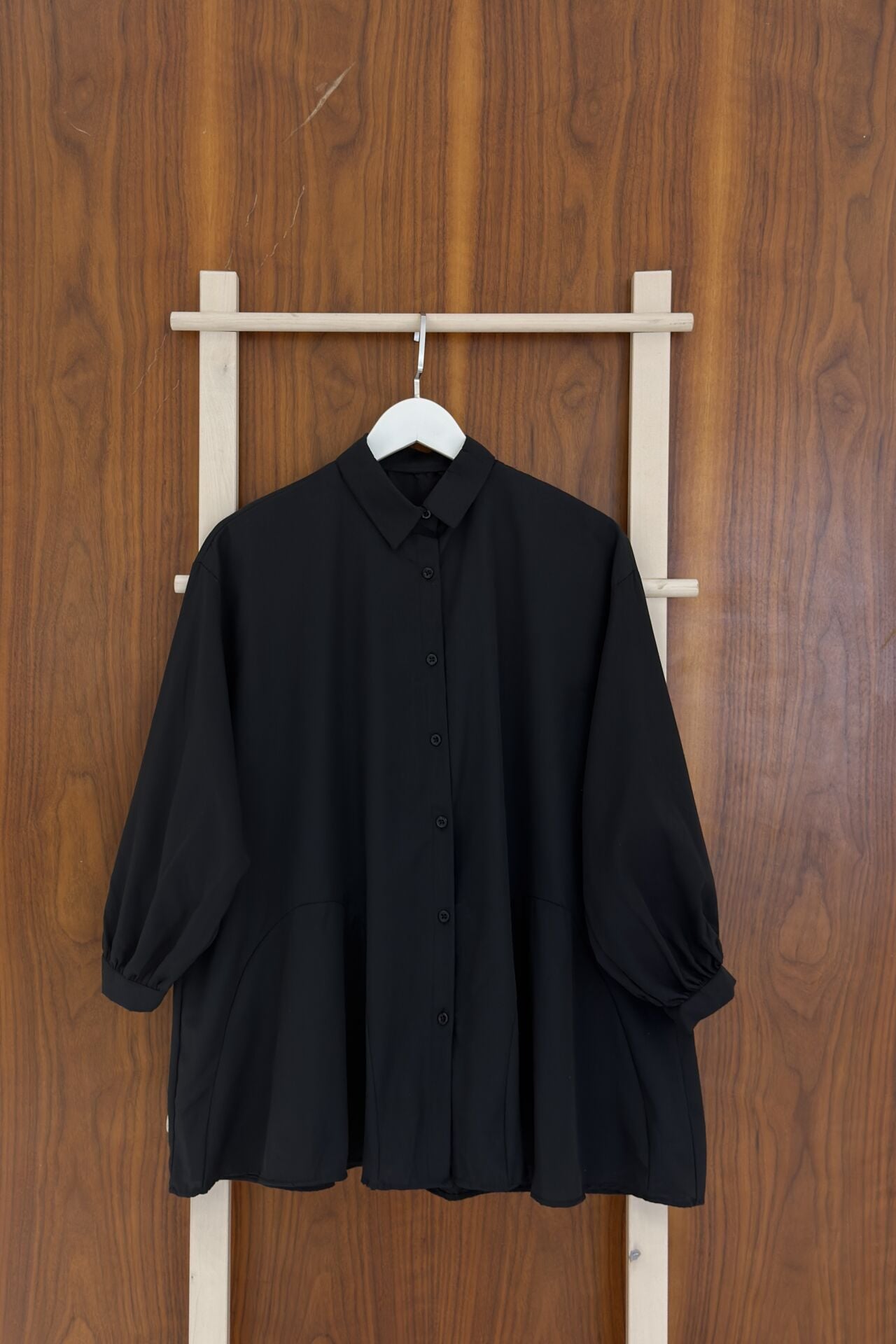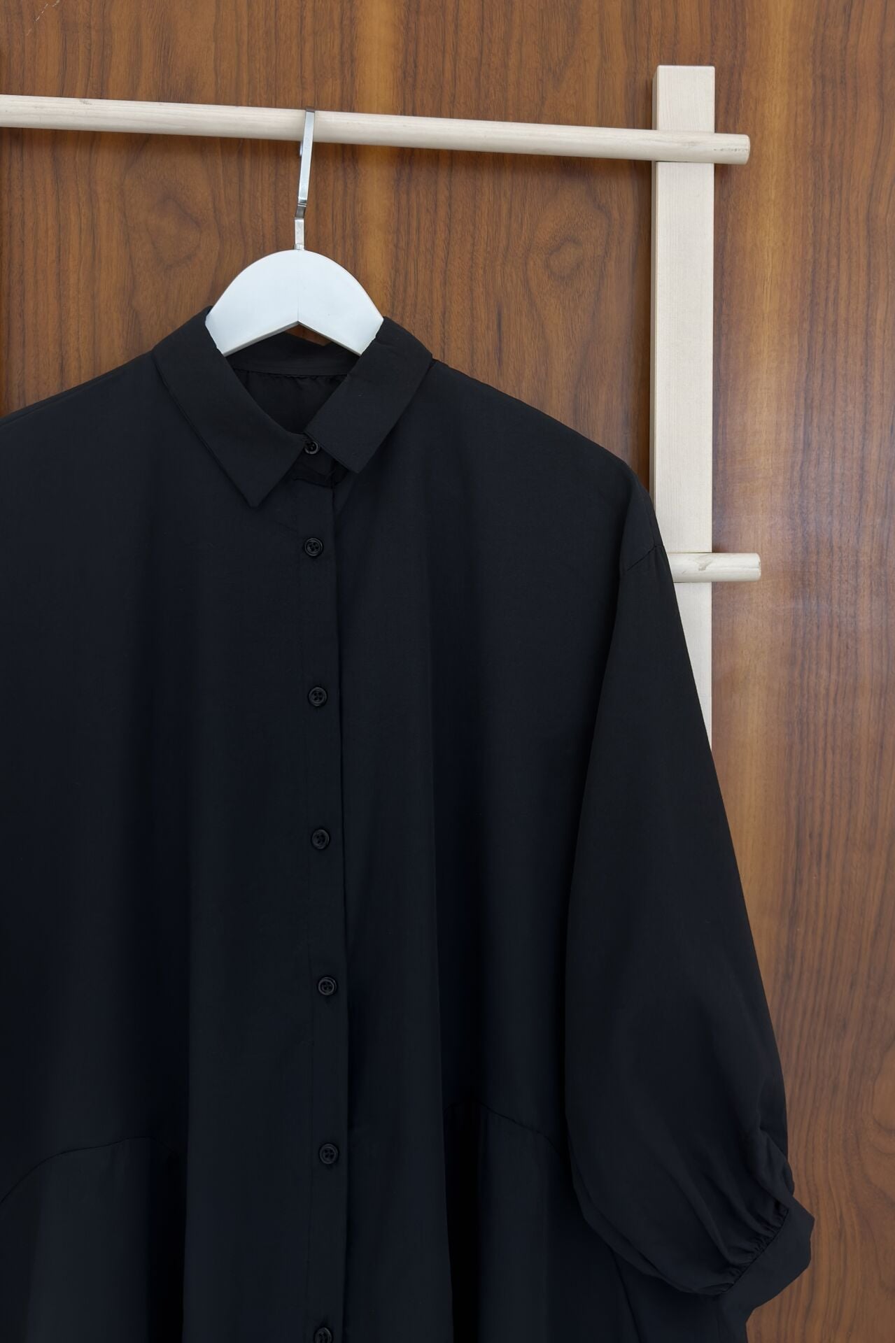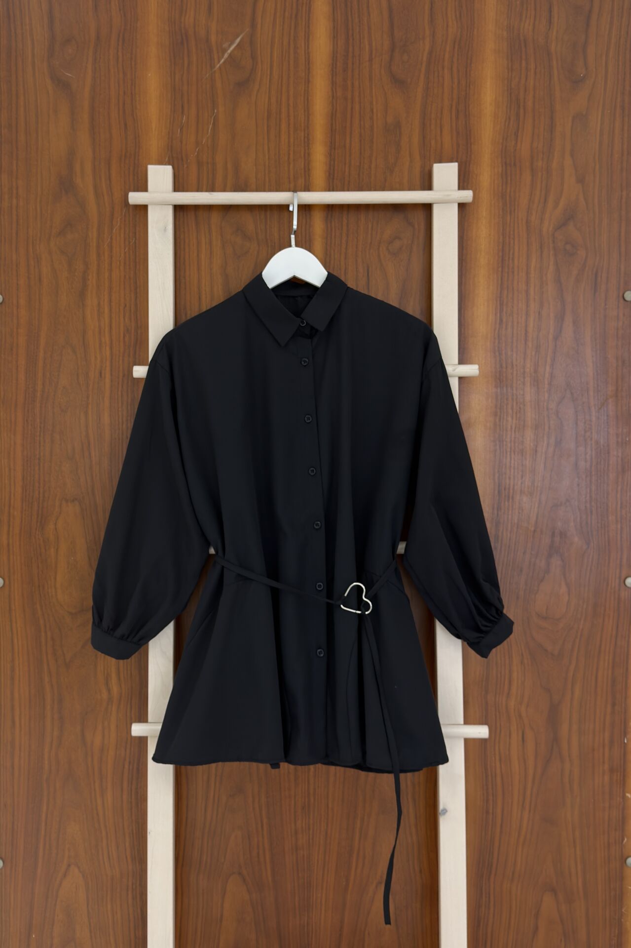 Siyah Kalpli Kuşaklı Poplin Gömlek