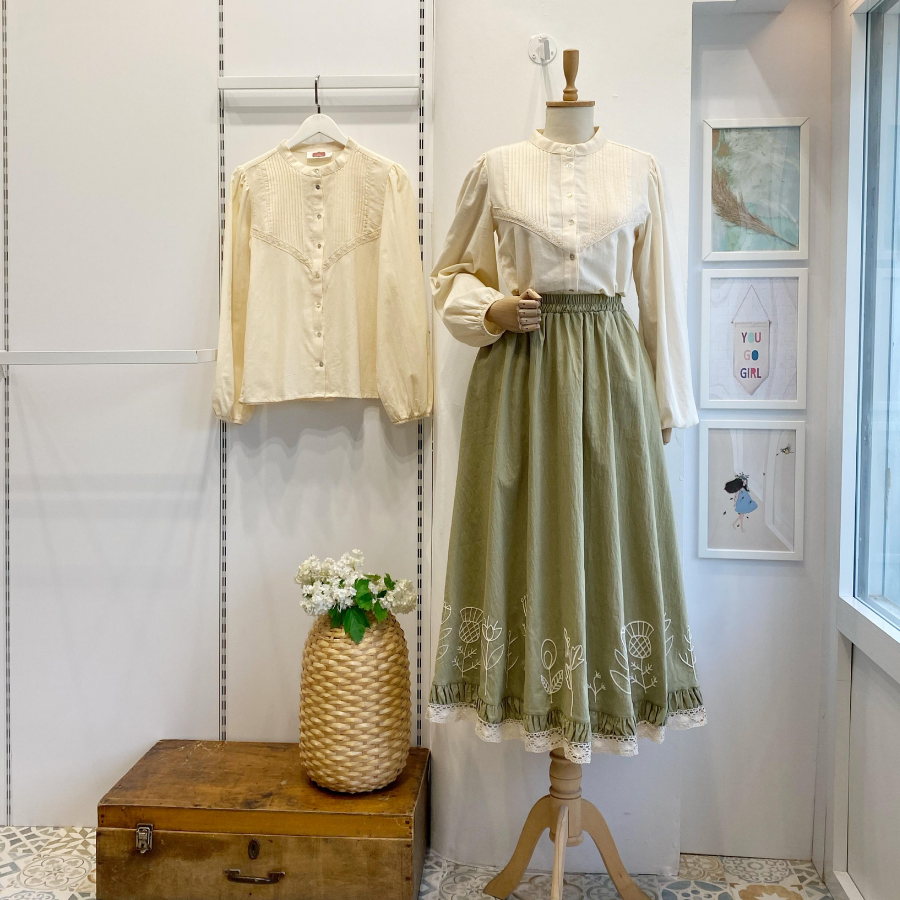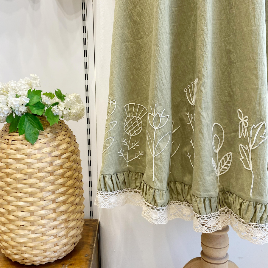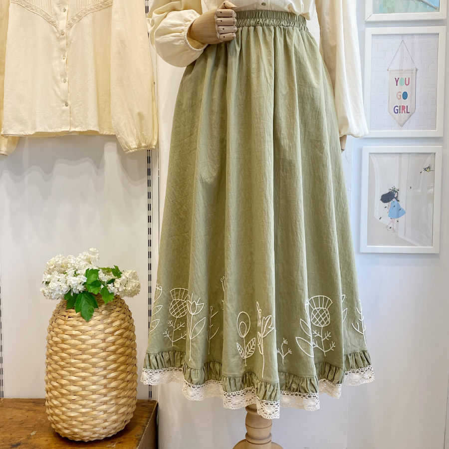 Ucu Nakışlı Çağla Yeşili Paper Touch Etek
