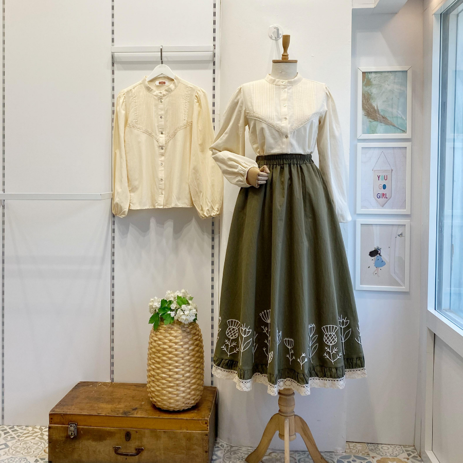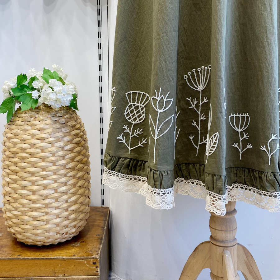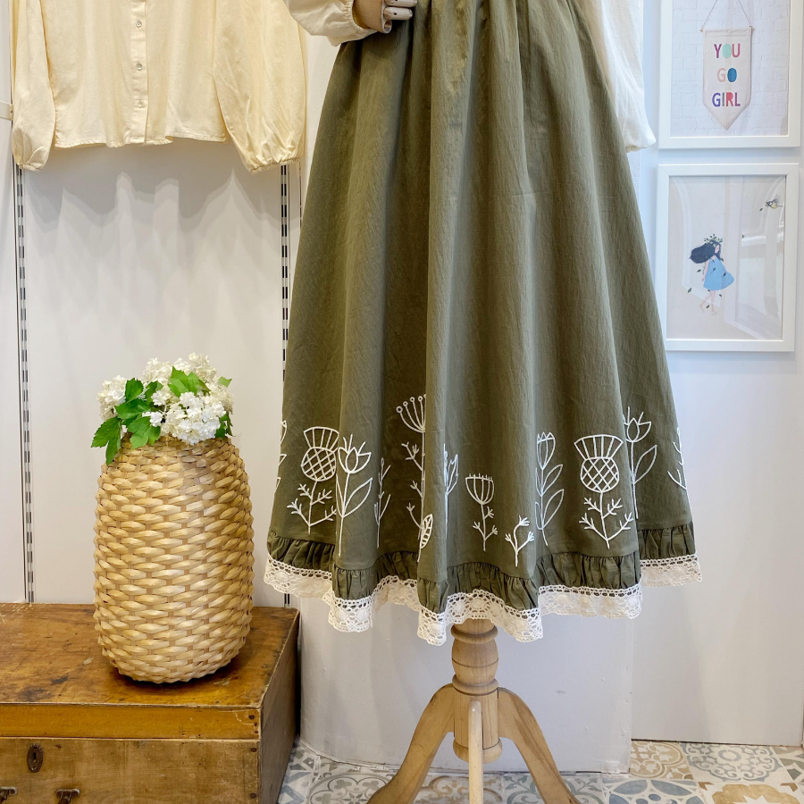 Ucu Nakışlı Haki Yeşili Paper Touch Etek