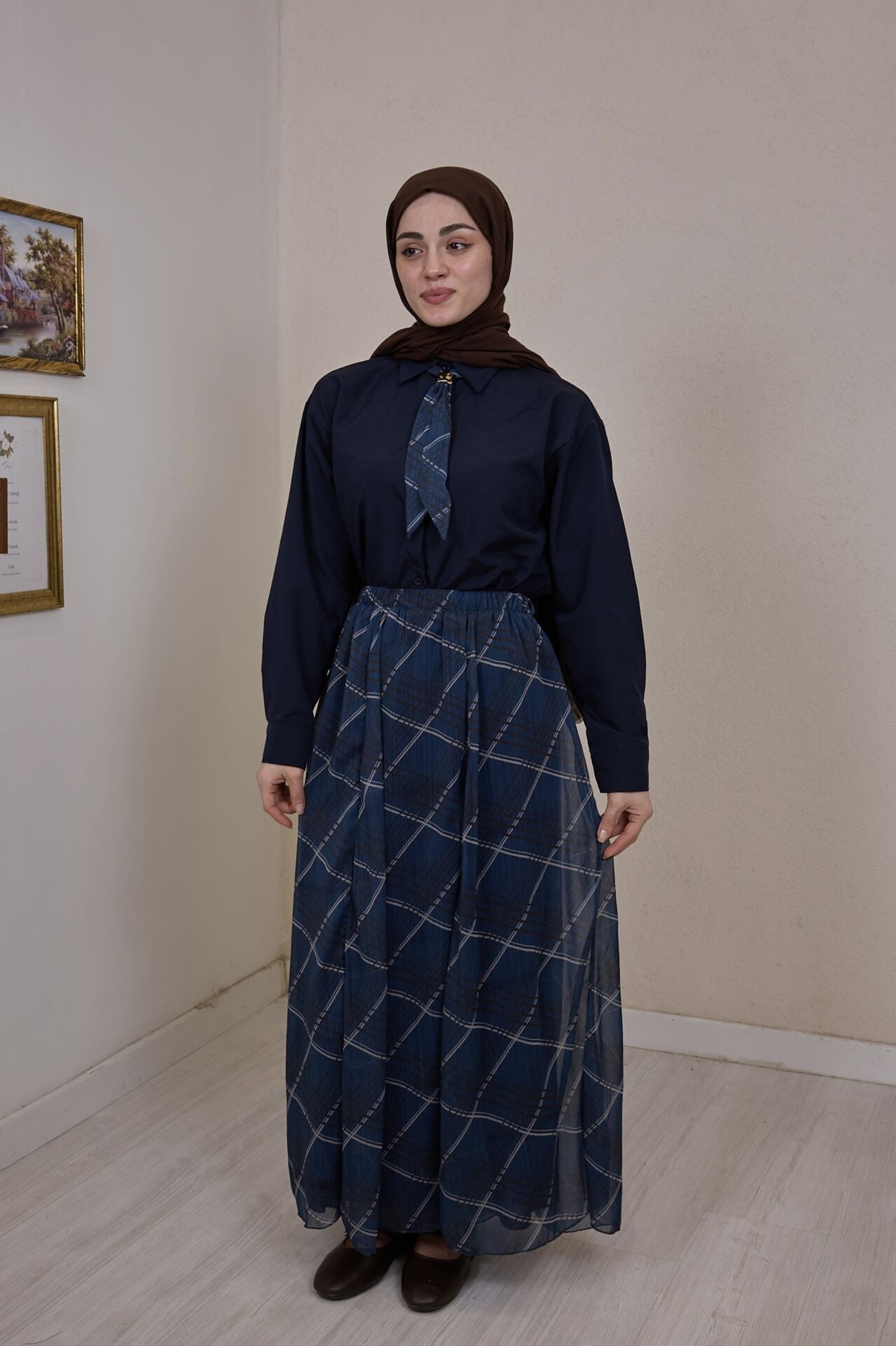 Lacivert Şifon Etekli Artician Takım