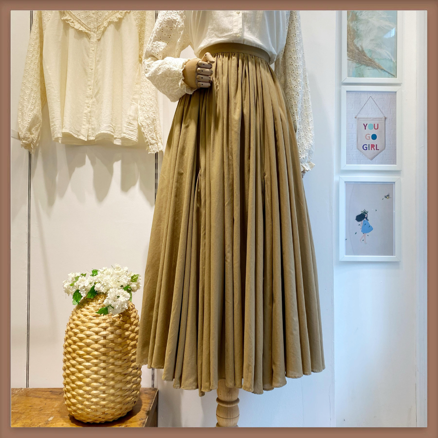Yağ Yeşili Keten Kumaş Crush Etek AAQ001RYGYSL