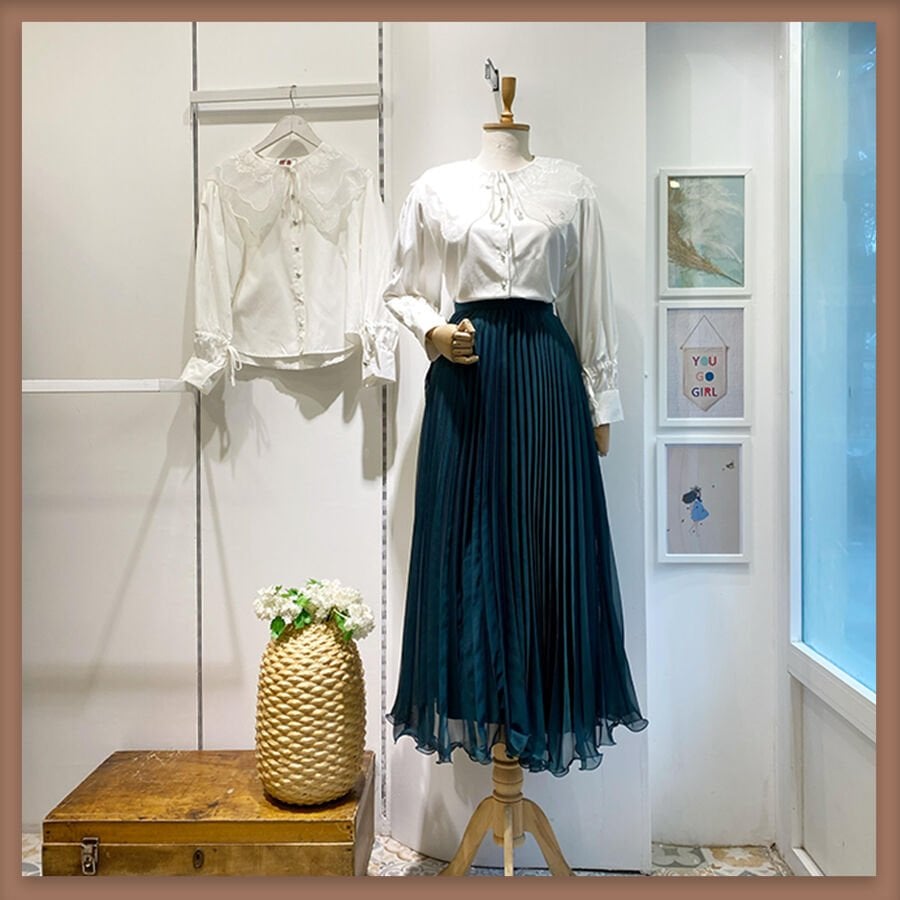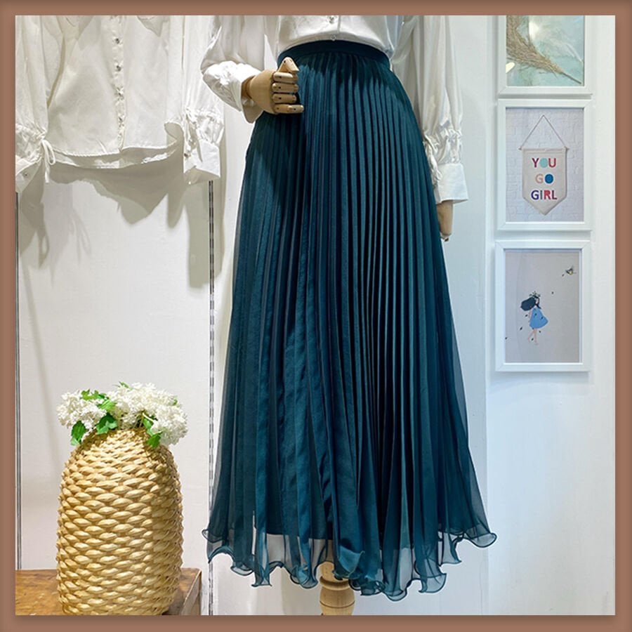 Zümrüt yeşili piliseli janjanlı şifon etek