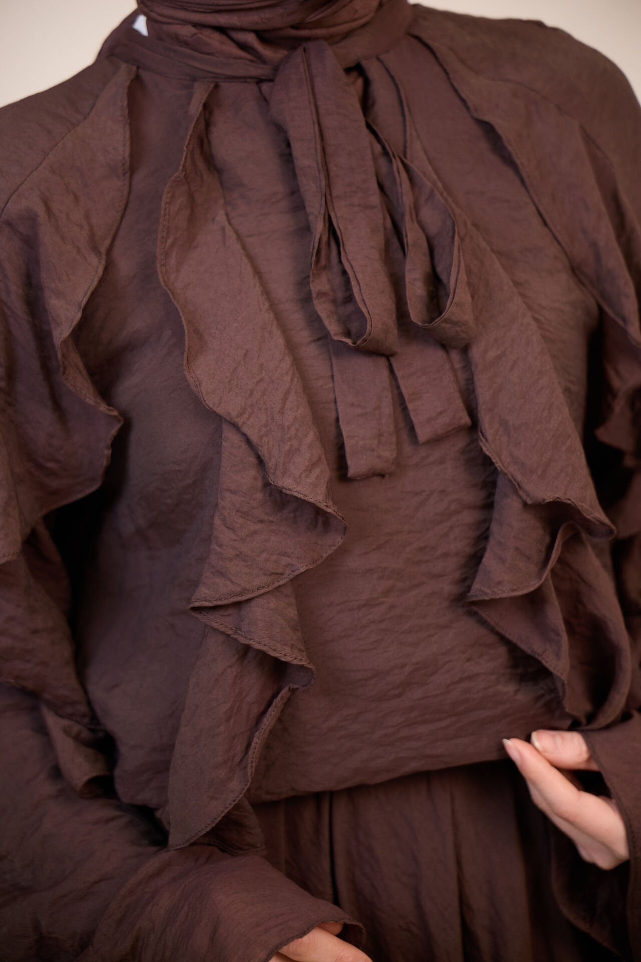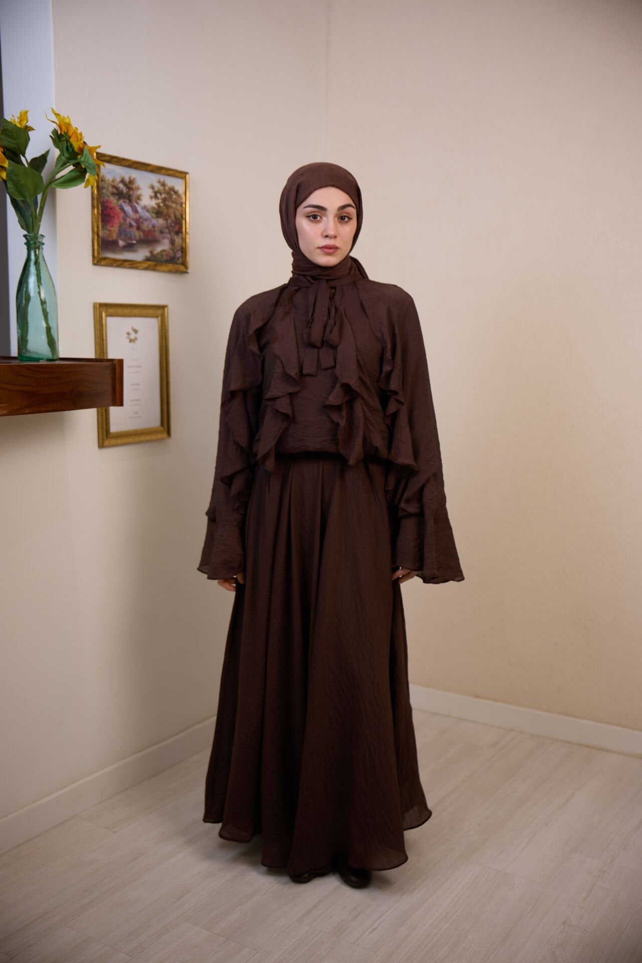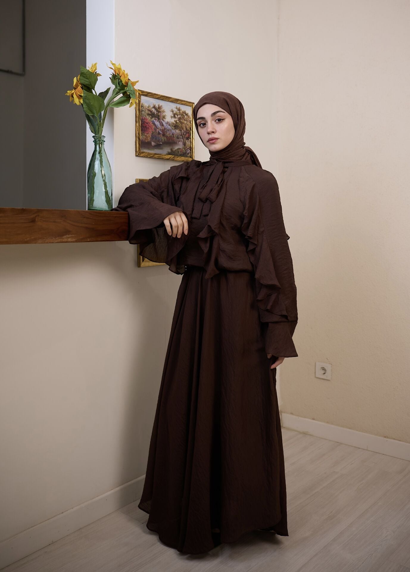 Acı Kahve İspanyol Kol Mimosa Şifon Takım