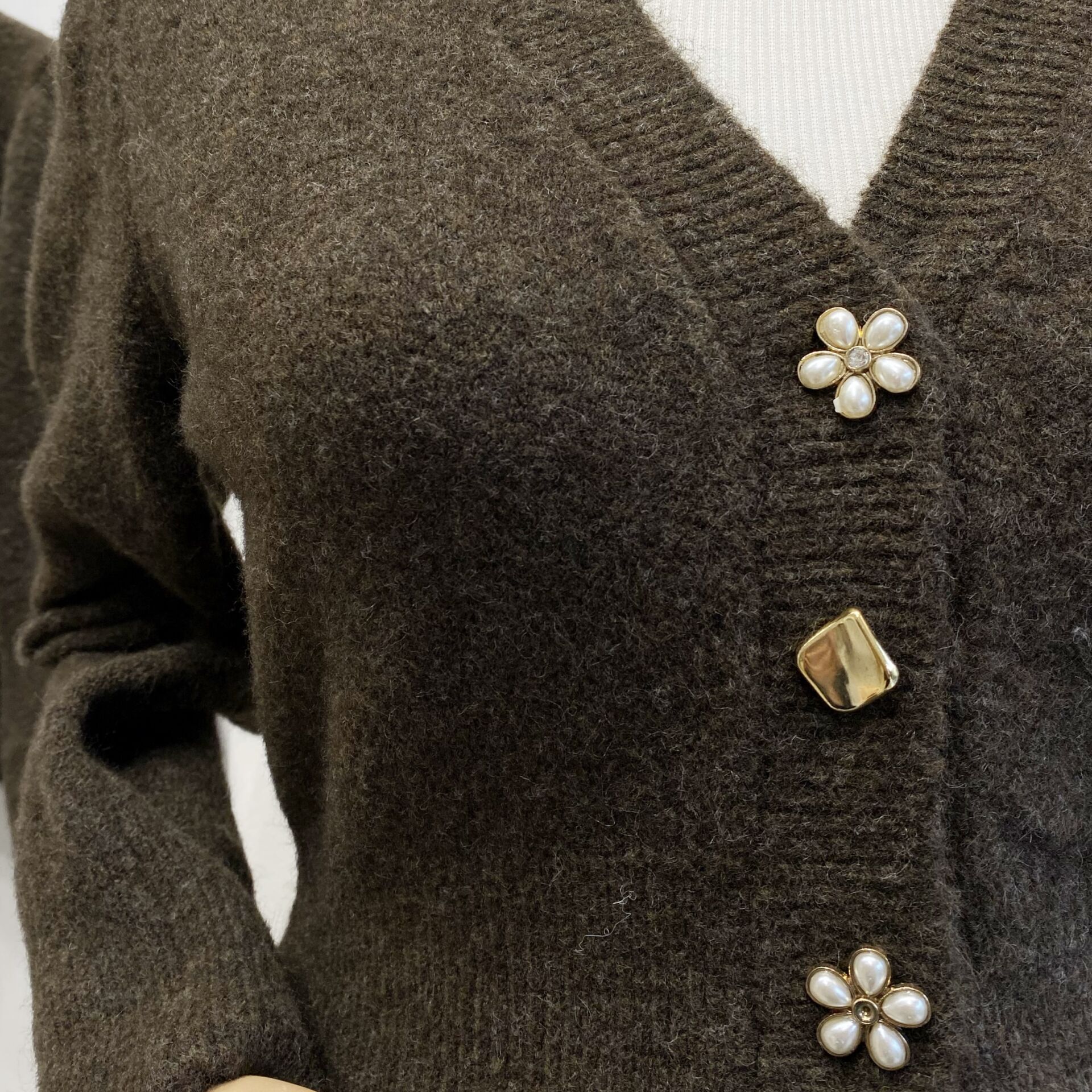 Acı Kahve Asimetrik Düğmeli Frida Hırka