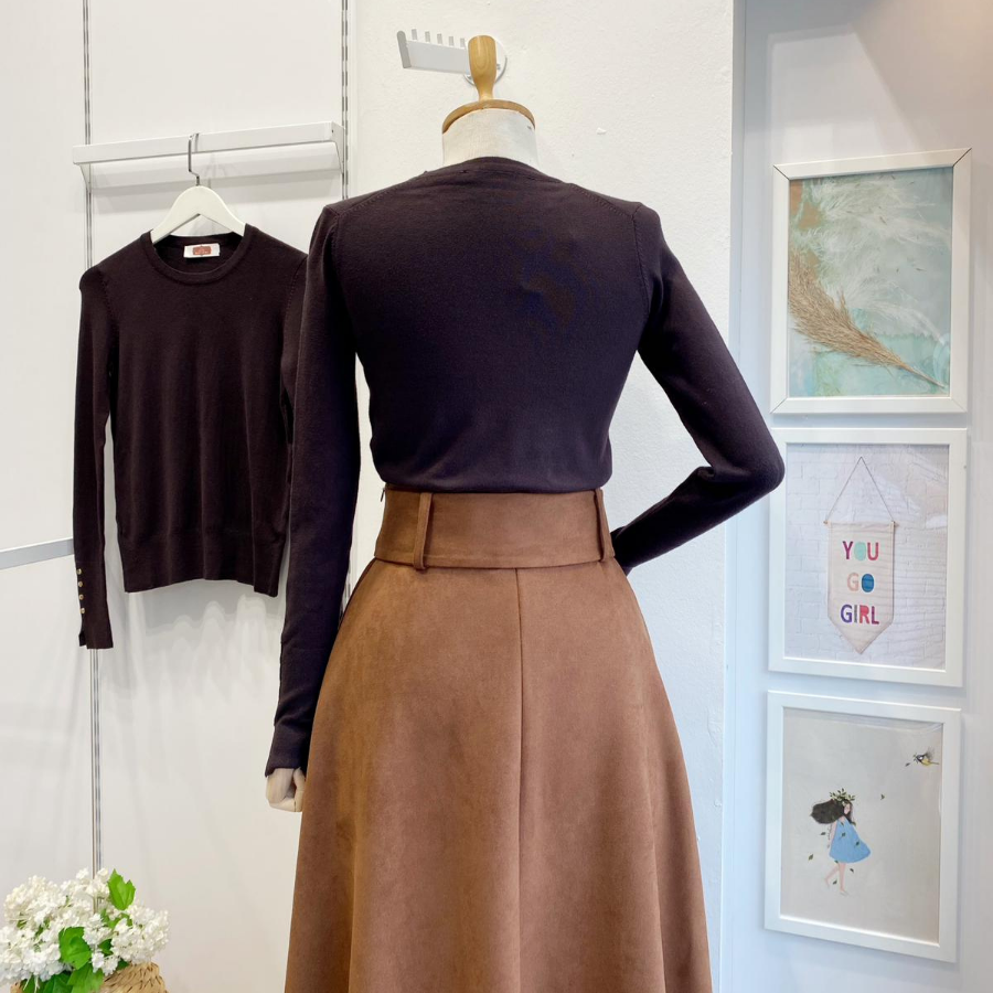 Acı Kahve Bisiklet Yaka Kol Ortası Droplu Triko Kazak