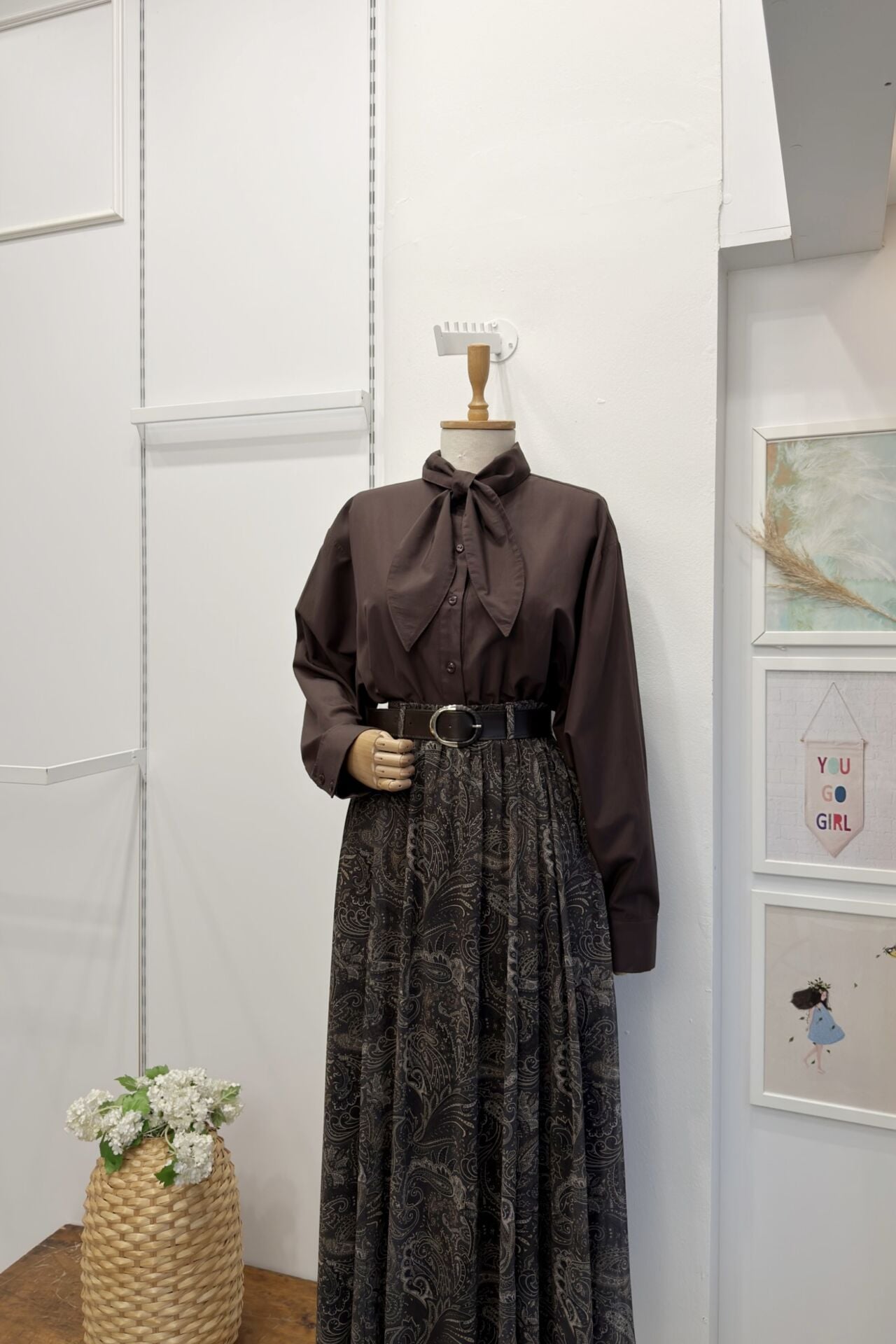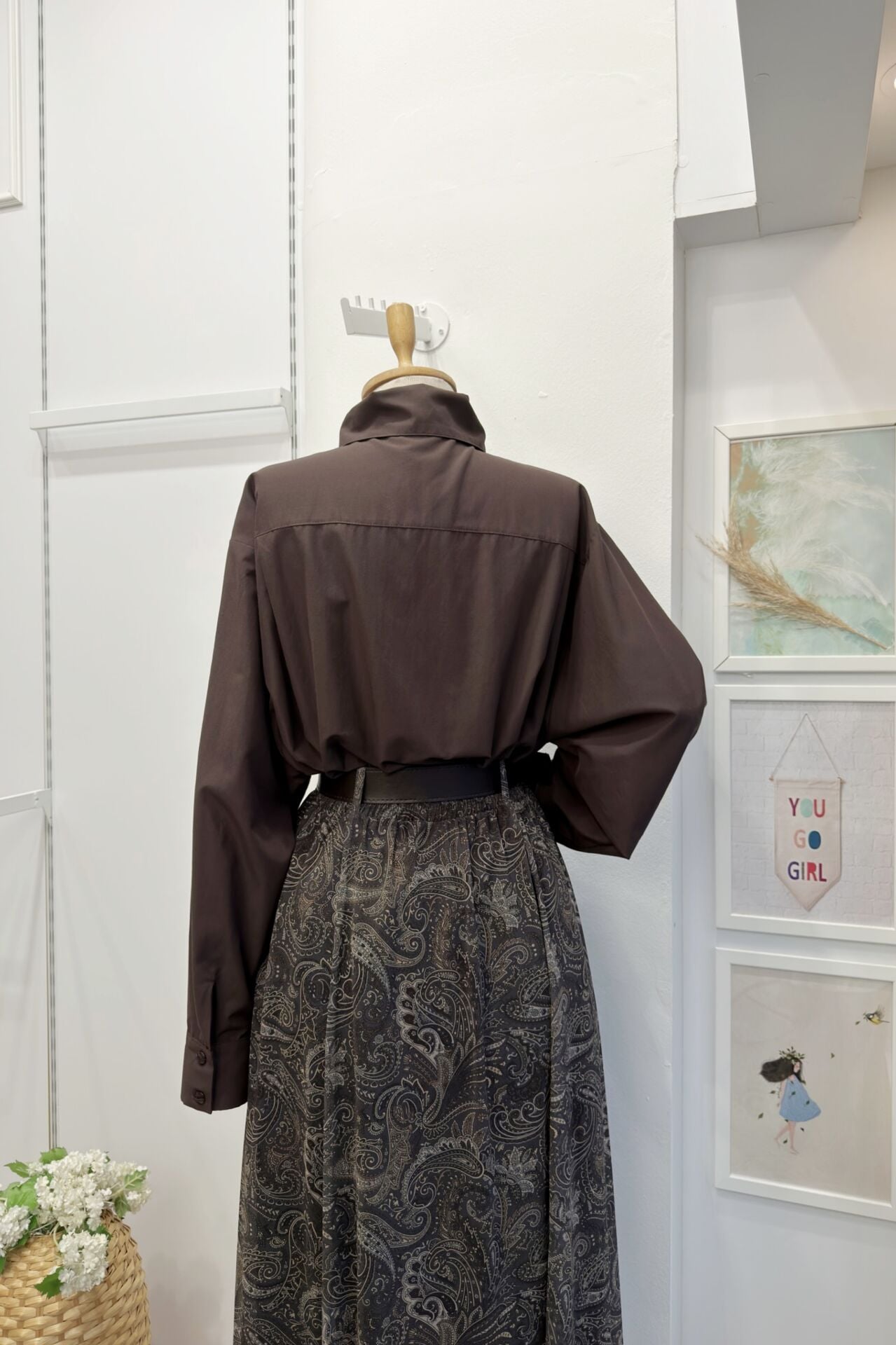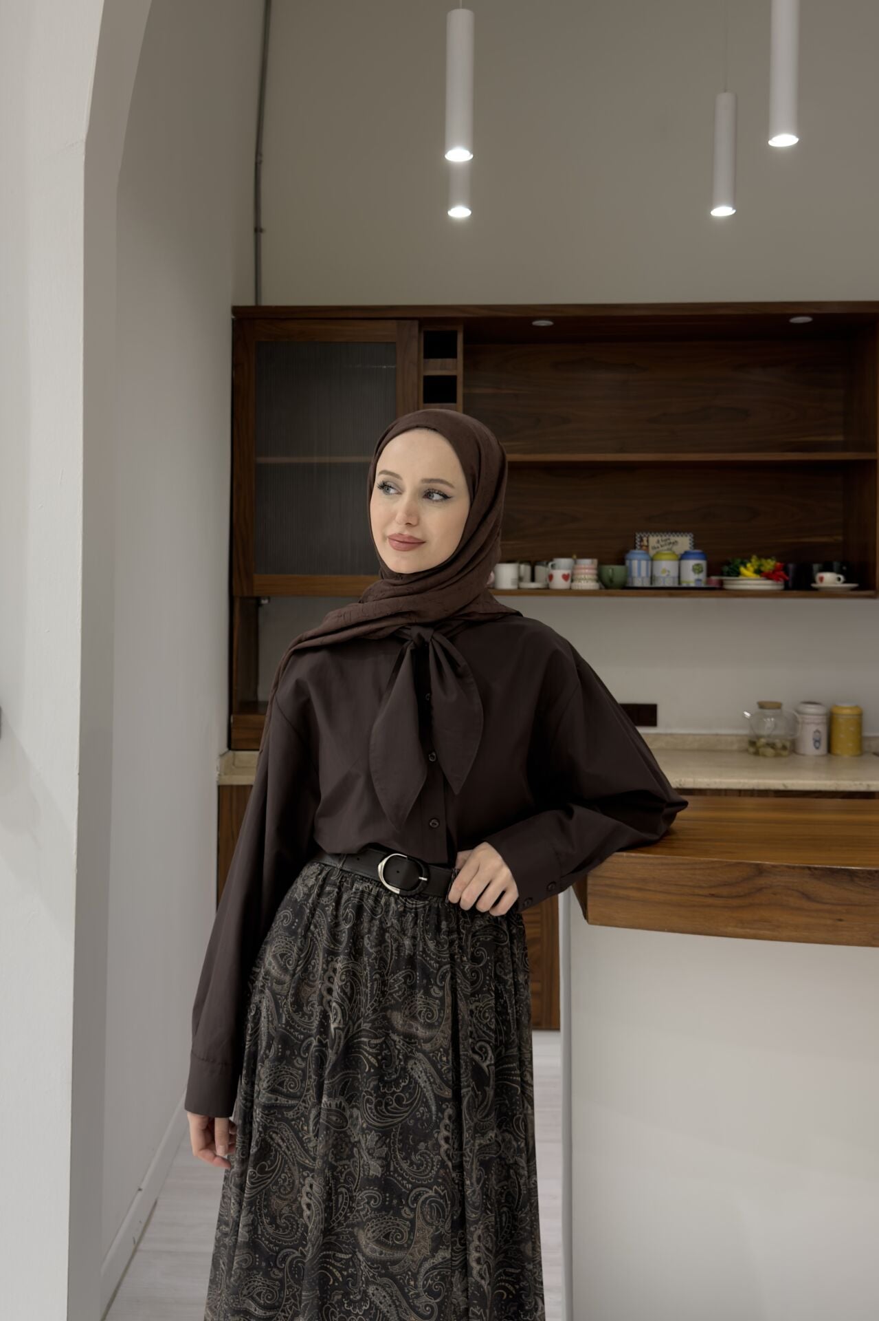 Acı Kahve Fular Detaylı Poplin Gömlek