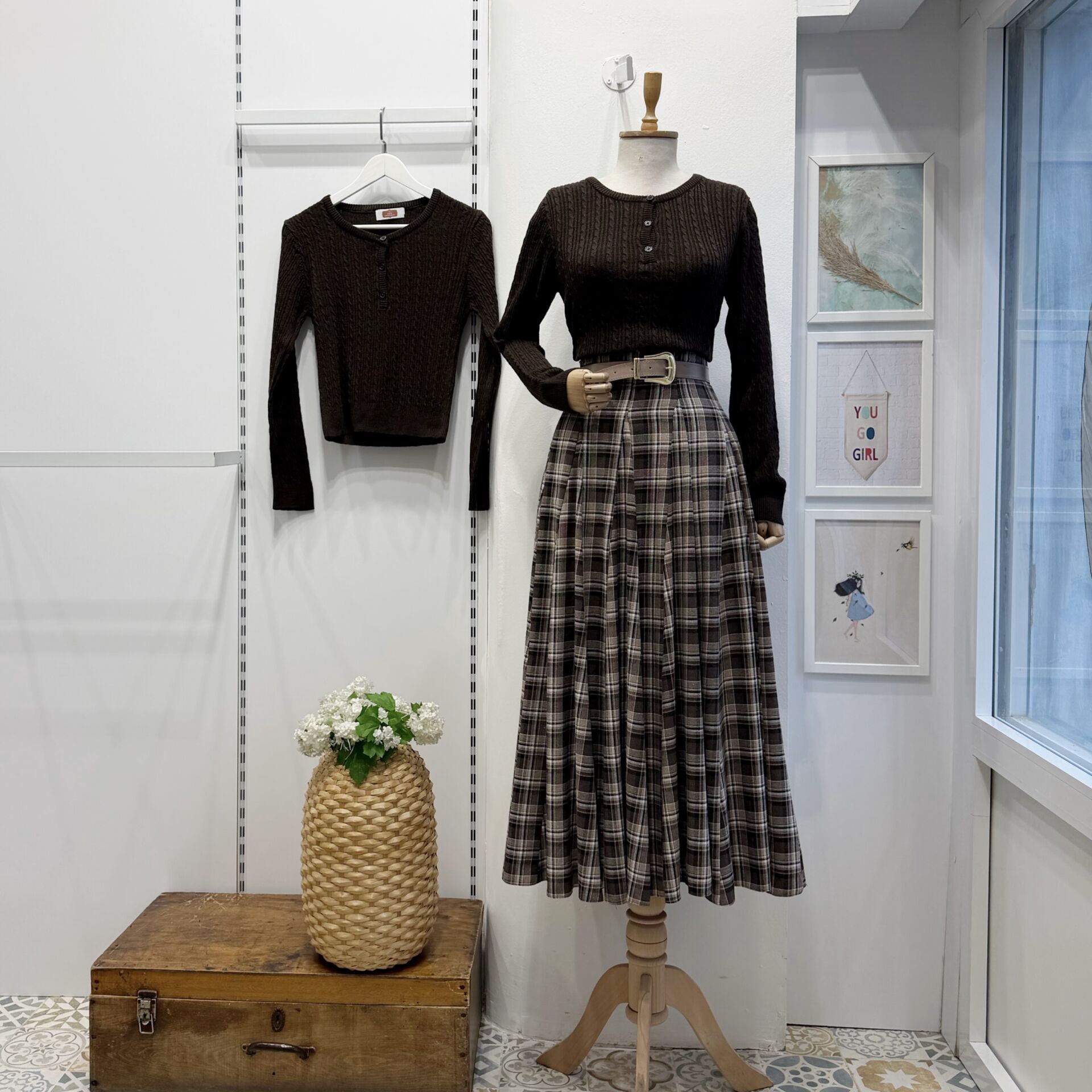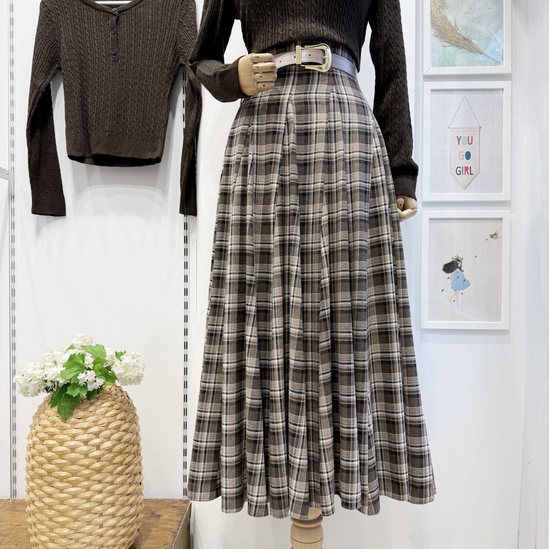 Acı Kahve Kemer Detaylı Ekoseli Venüs Etek