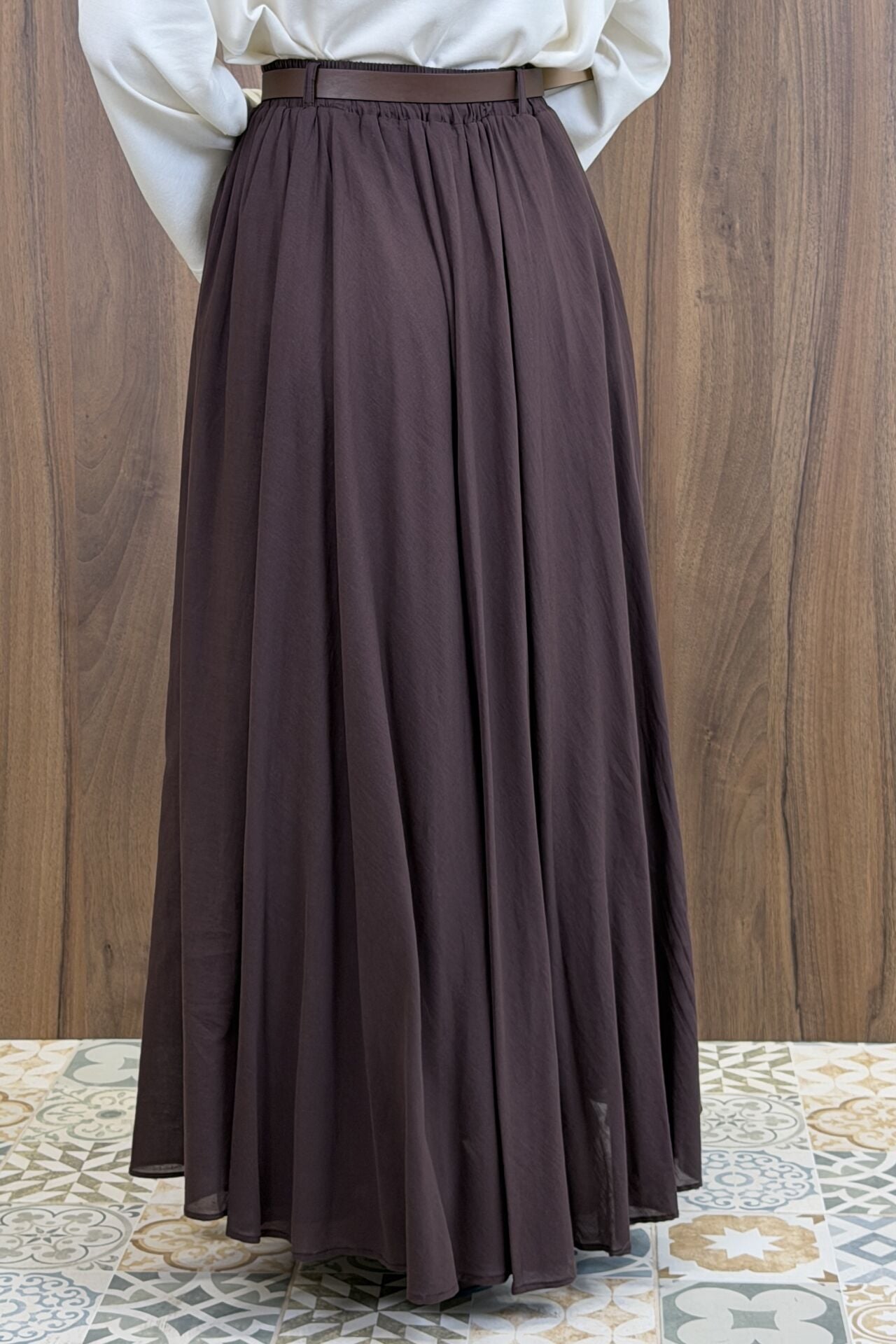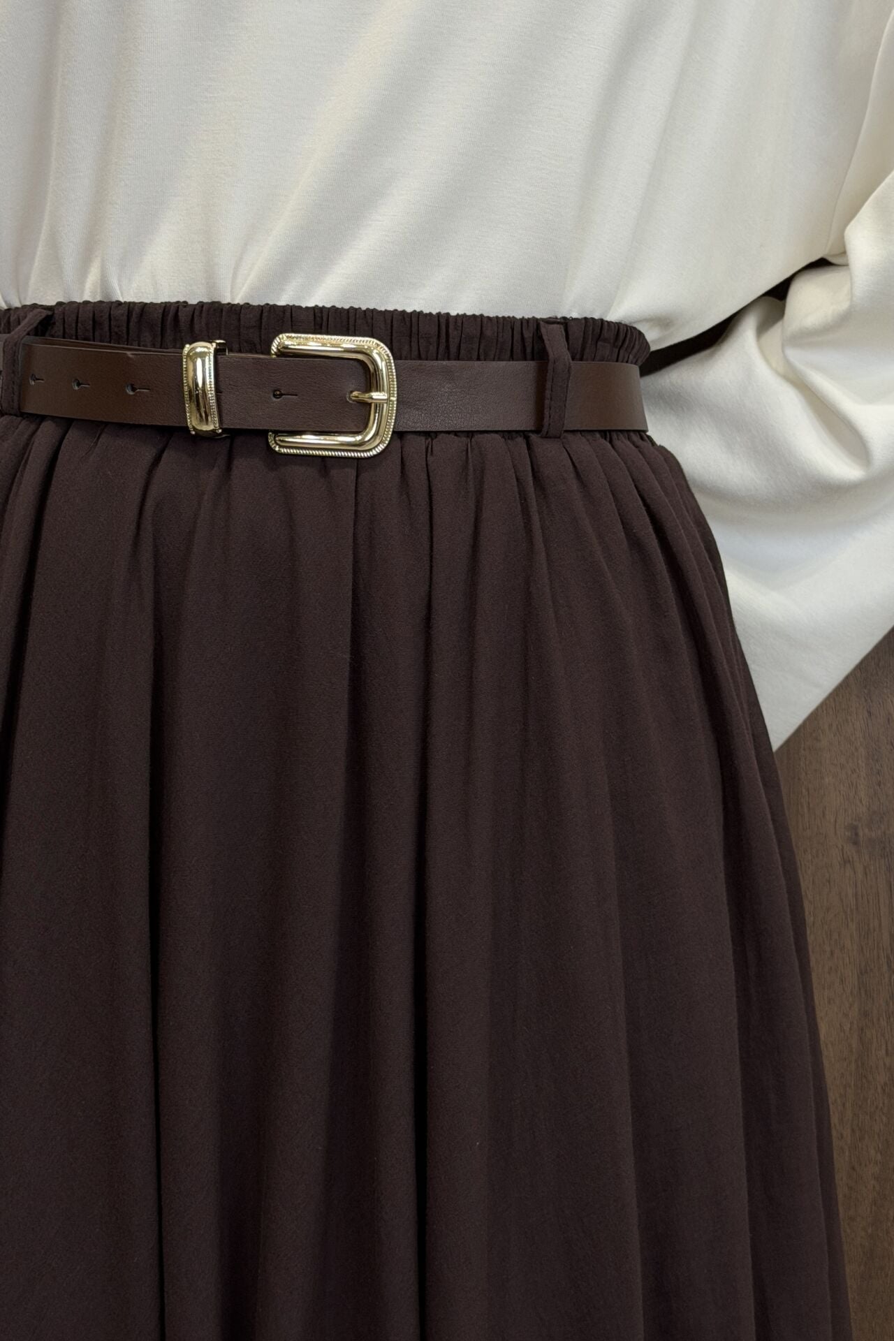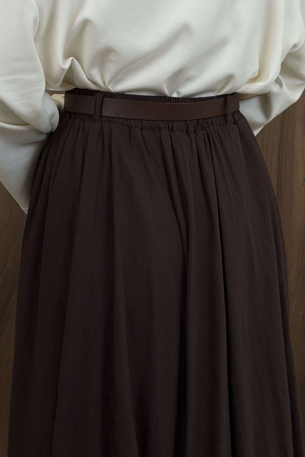 Acı Kahve Ceinture Kemerli Keten Etek