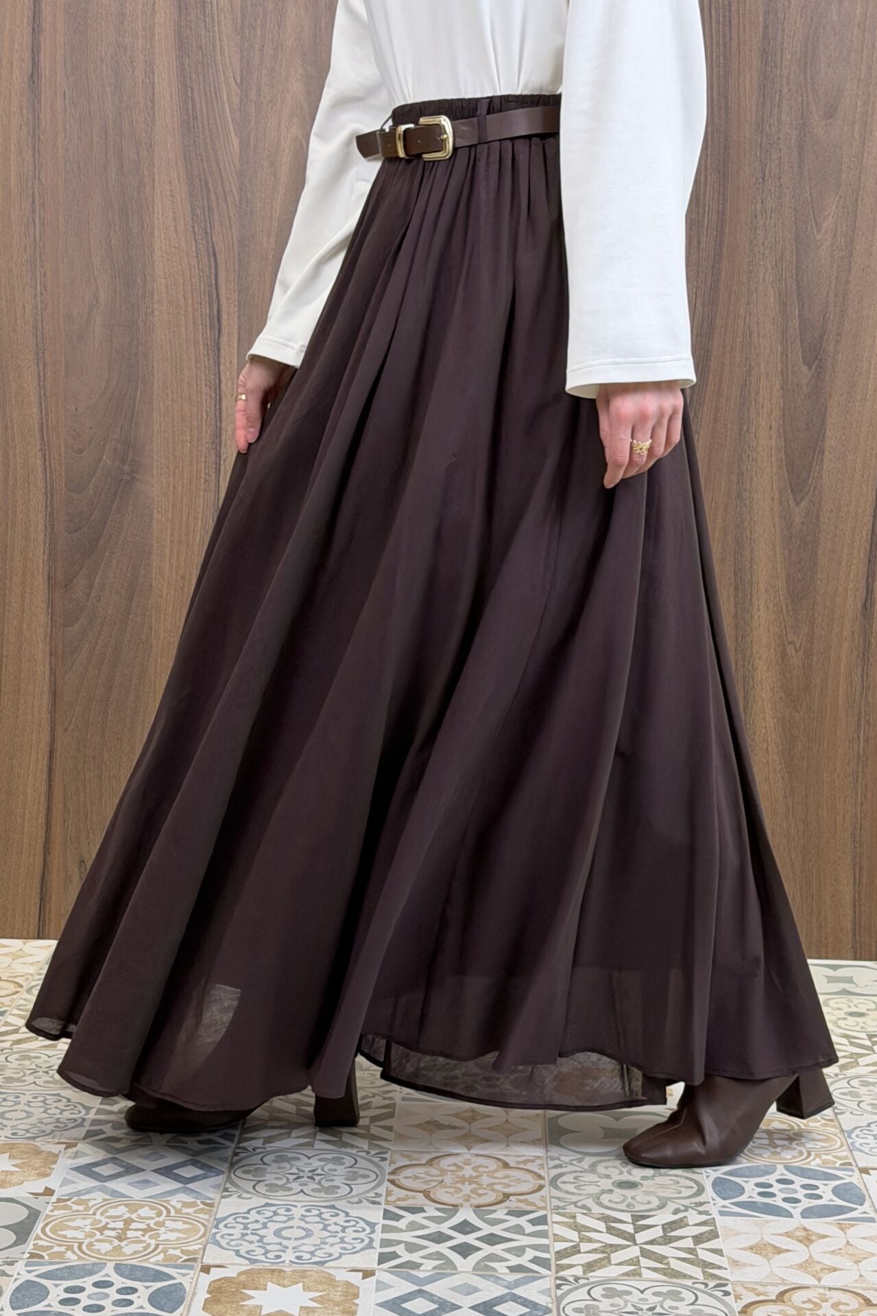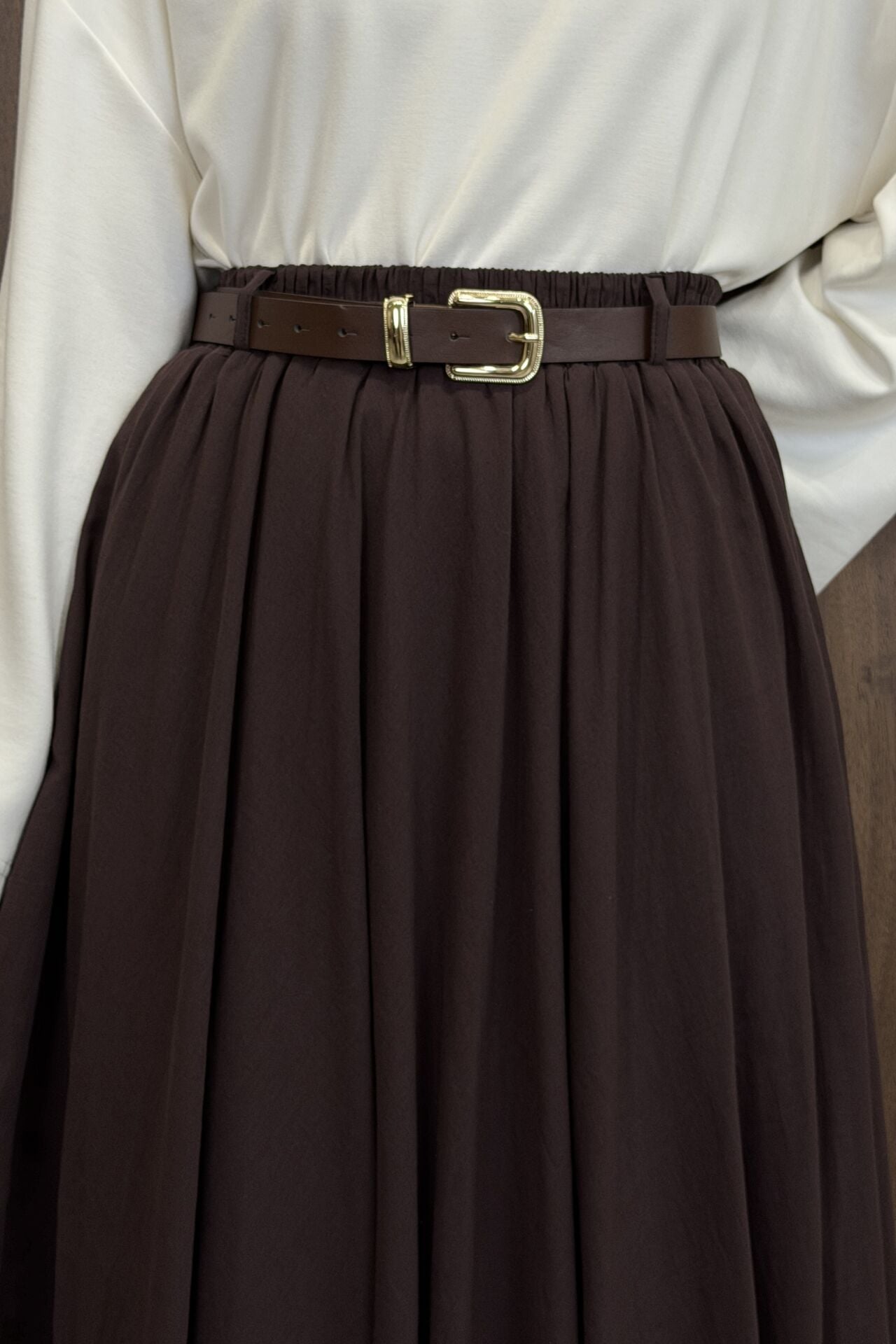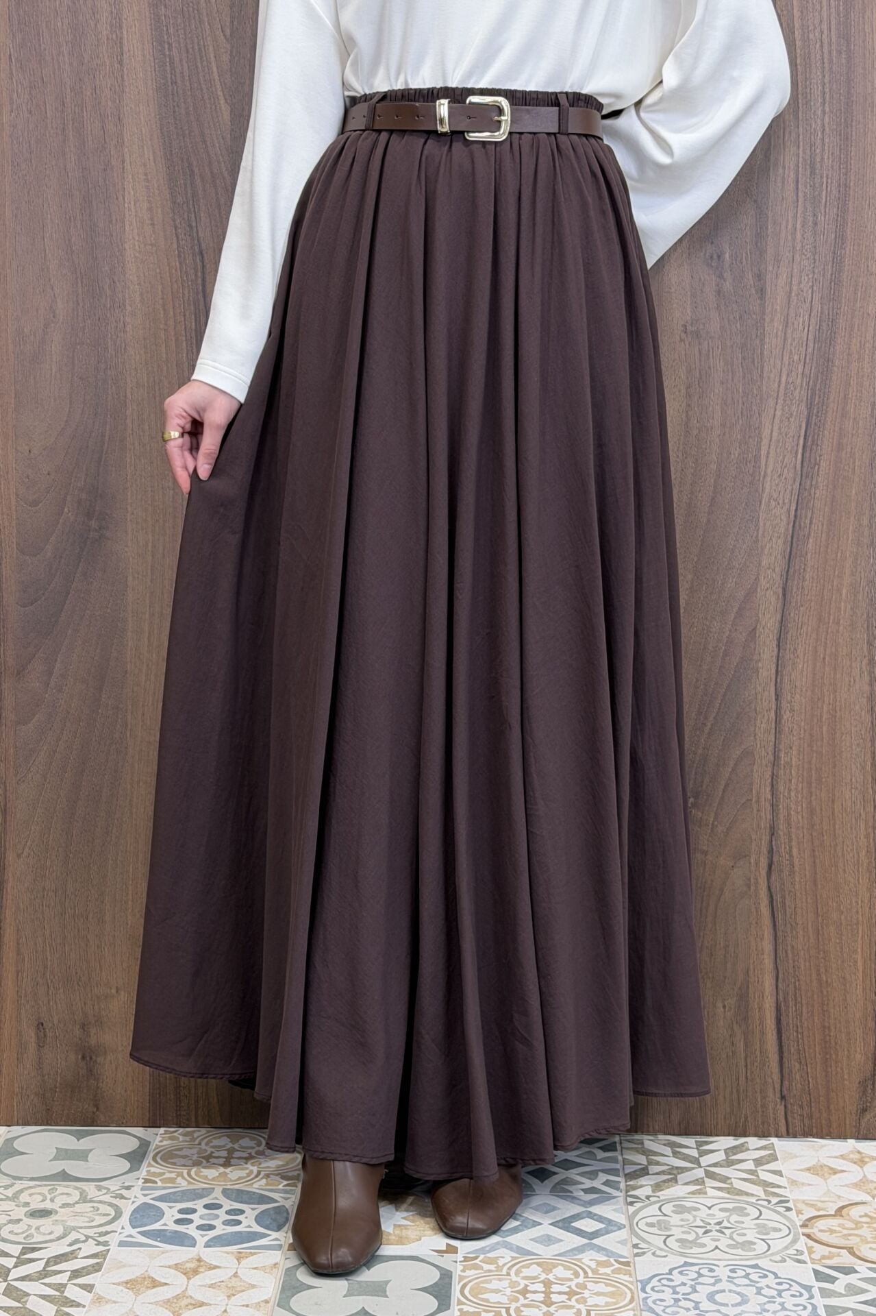 Acı Kahve Ceinture Kemerli Keten Etek