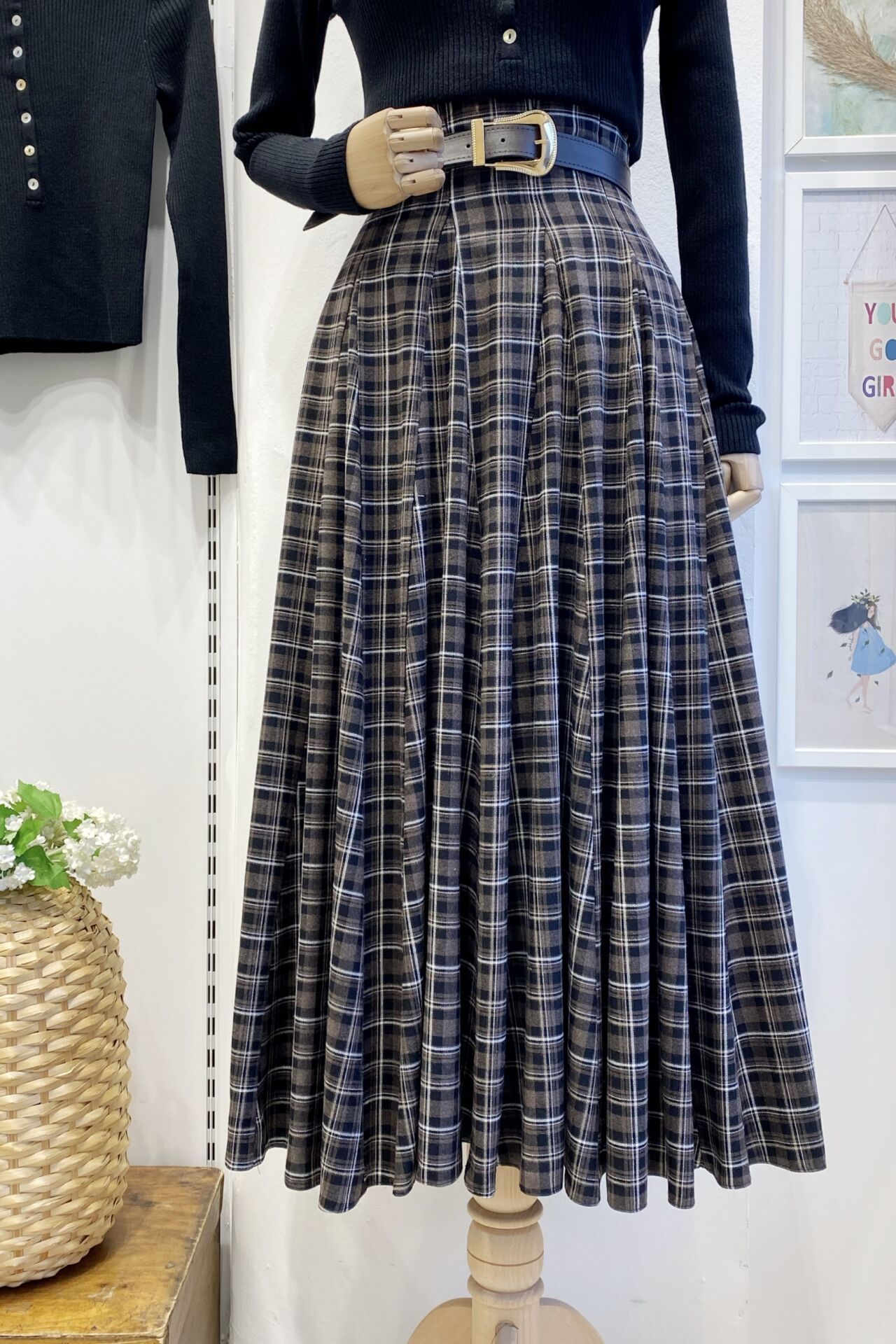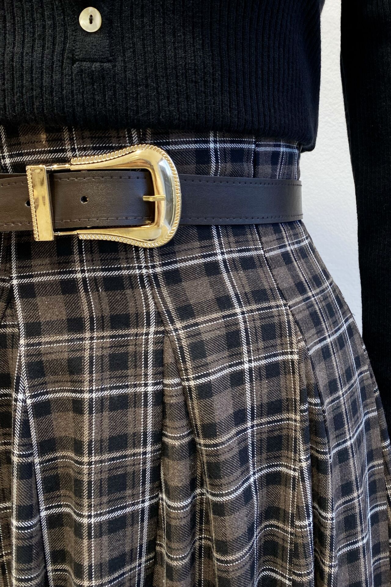 Acı Kahve Minik Ekose Desenli Kemerli Etek