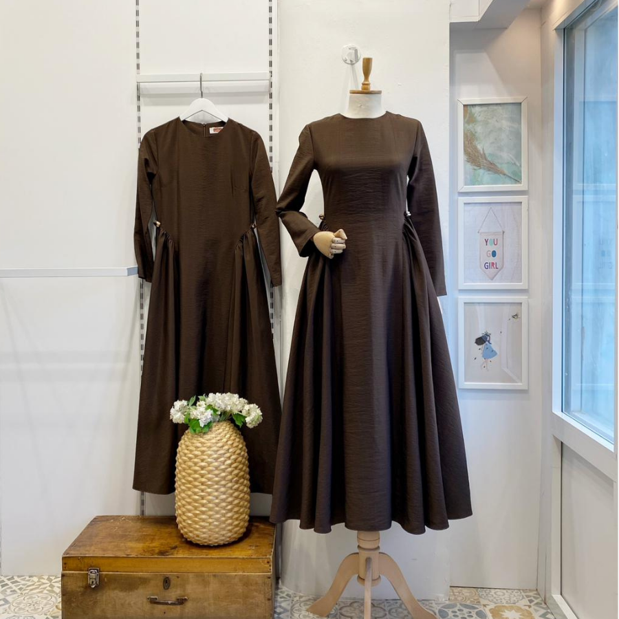 Acı Kahve Paper Touch Bel Detaylı Penelope Elbise