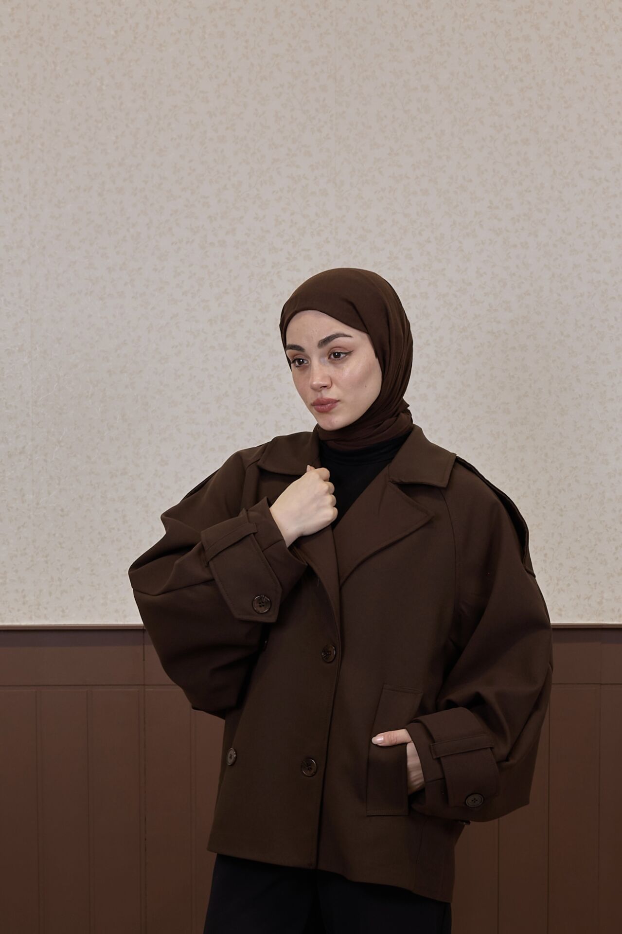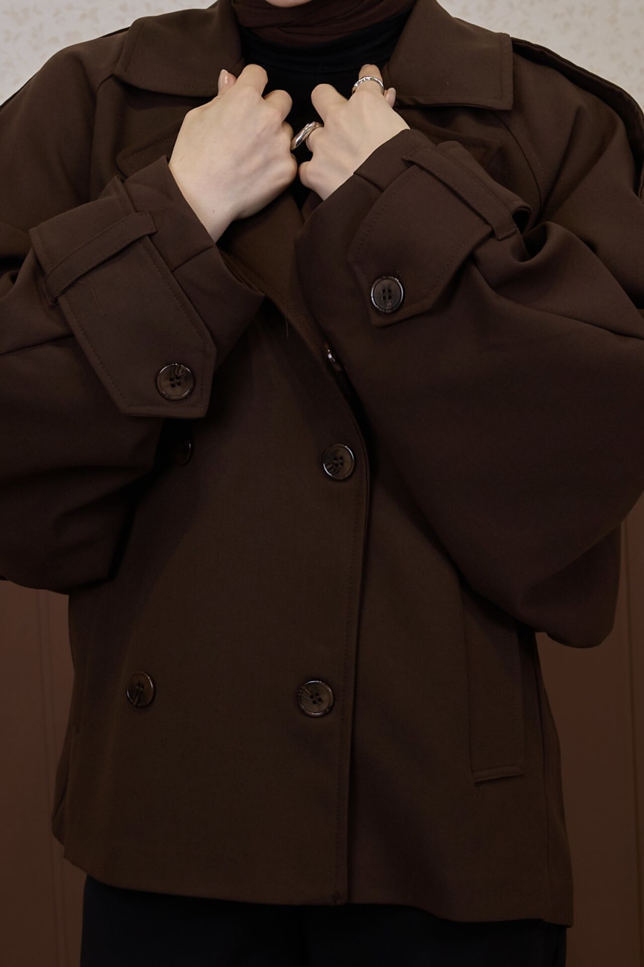 Kahverengi Rüzgarlık Detaylı Moonlight Kısa Trençkot