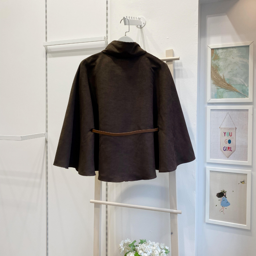 Acı Kahve Süet Kumaş Pelerin Ceket