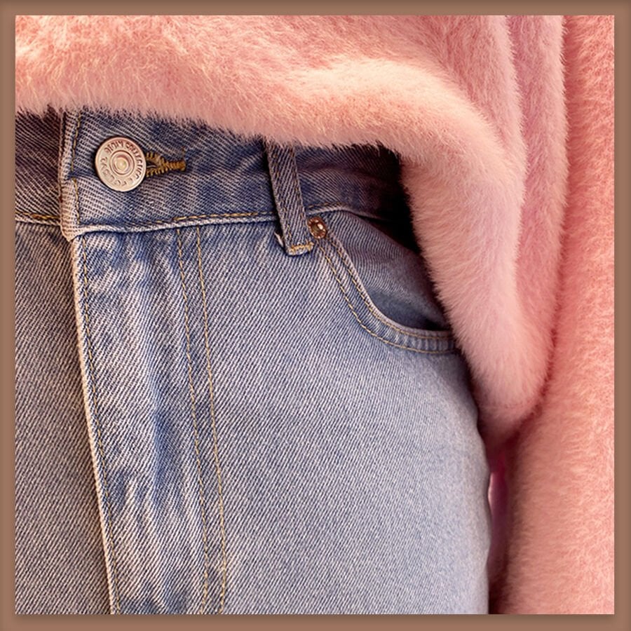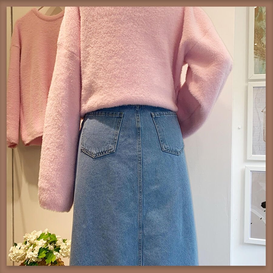 Açık renk kot kumaş kalem etek