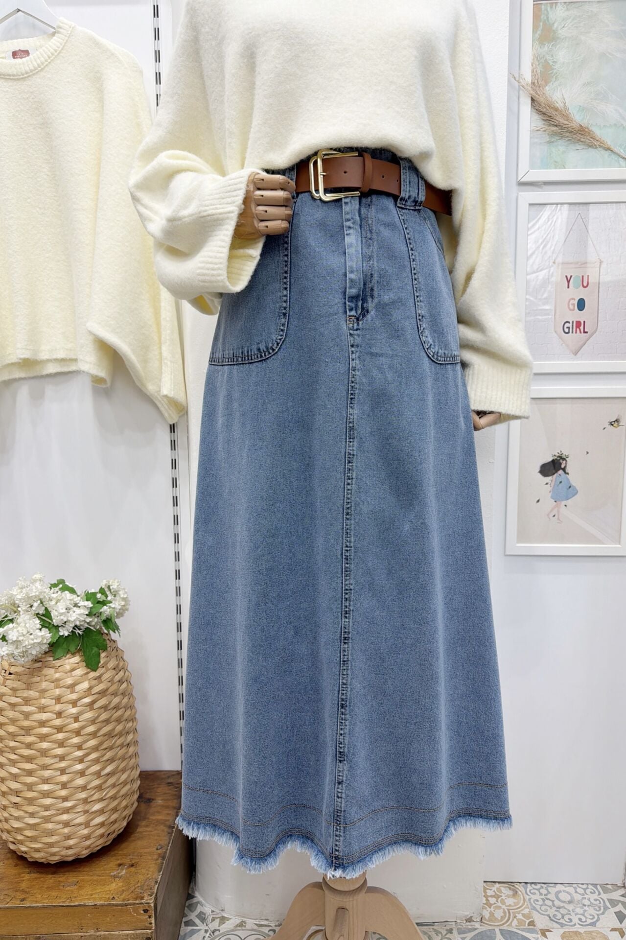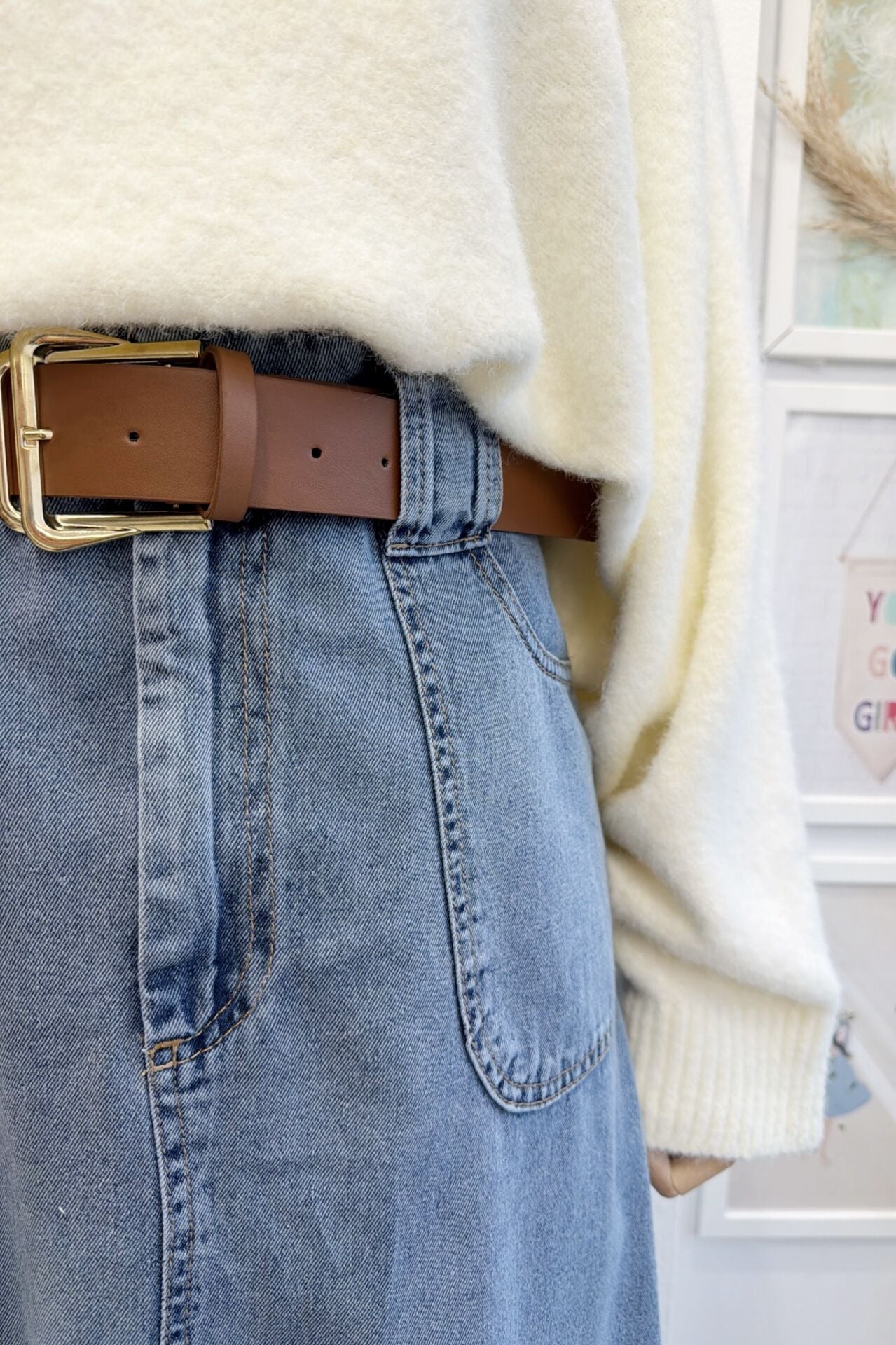 Açık Renk Taba Kemerli Kalem Kot Etek