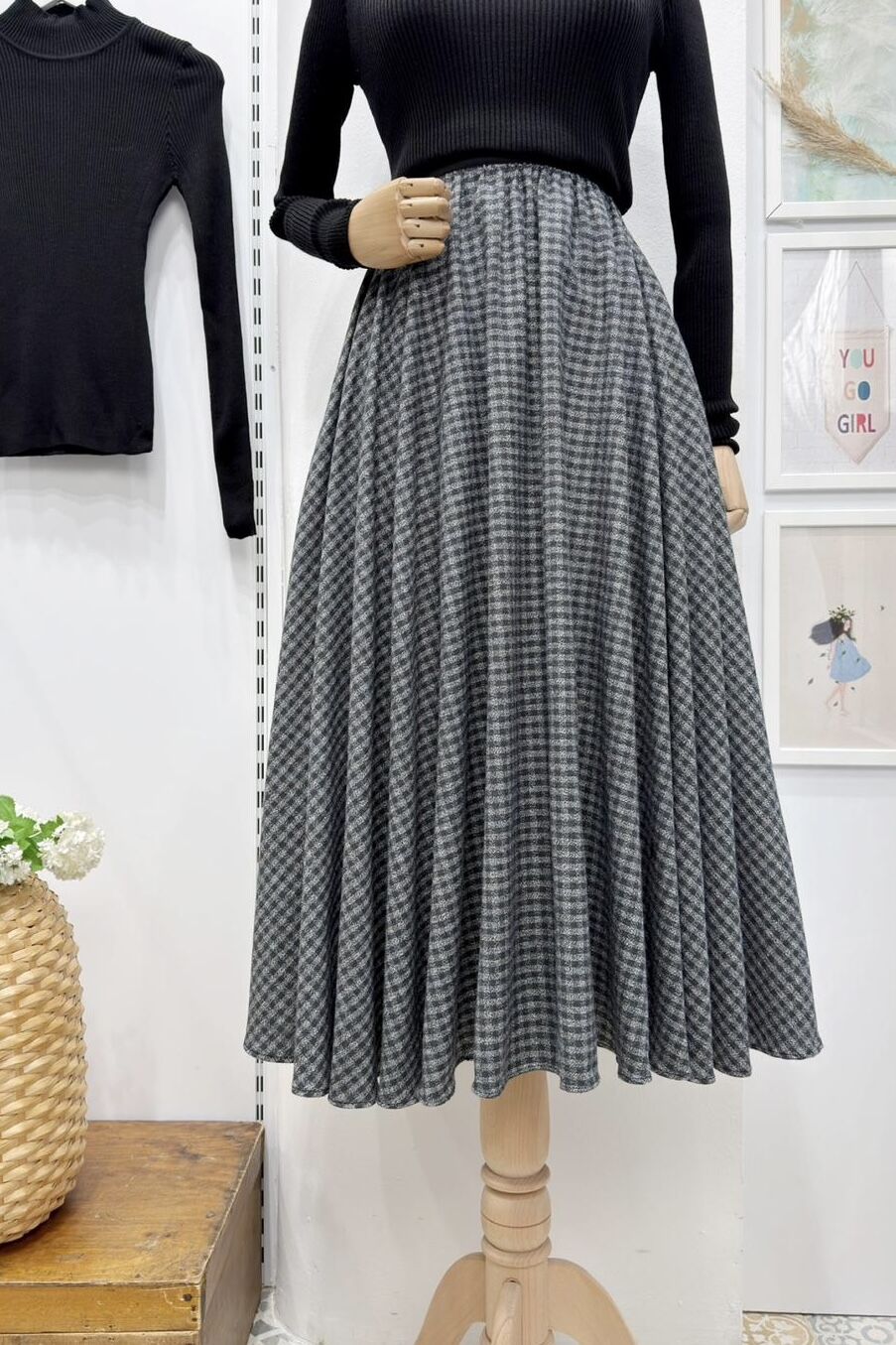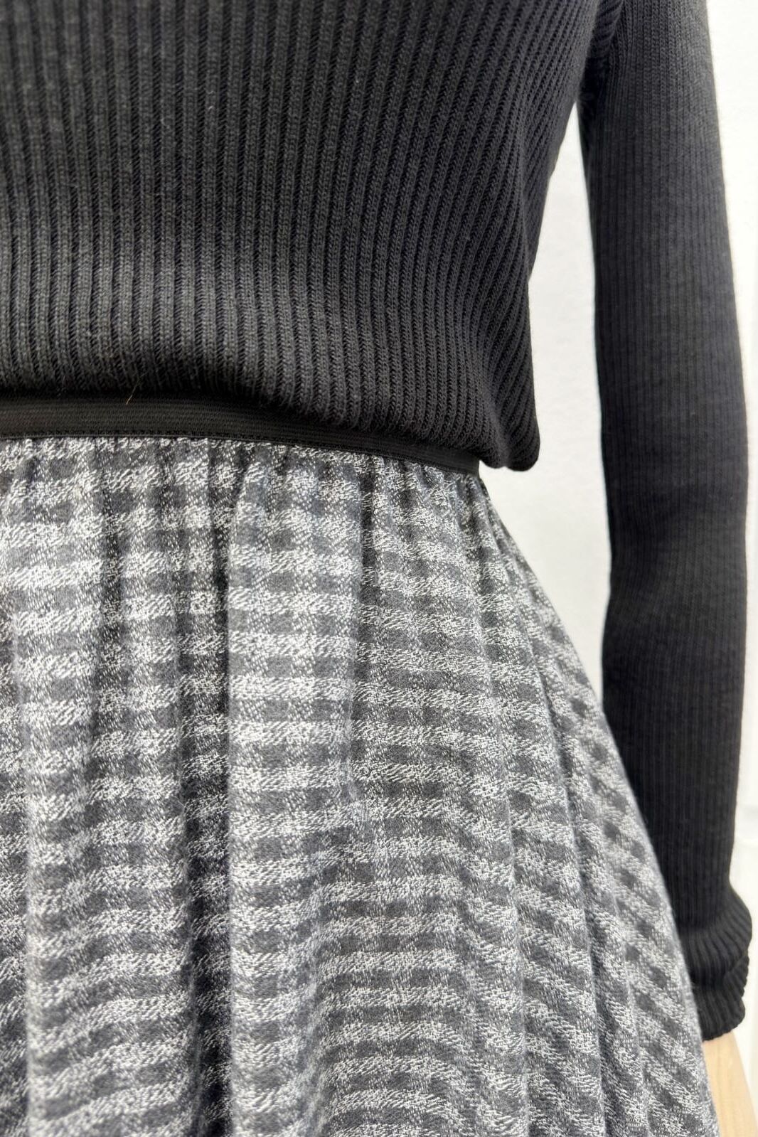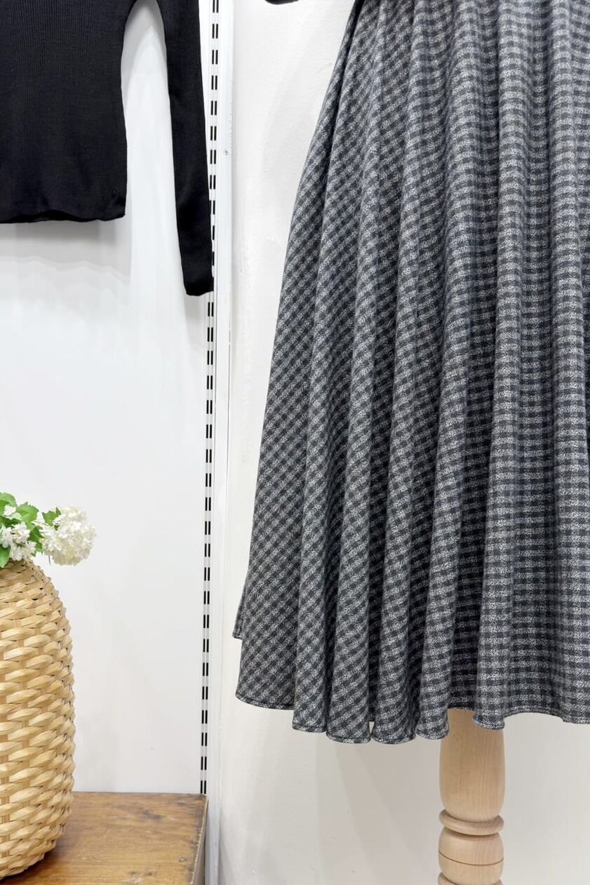 Antrasit Beli Lastikli Ekose Desenli Kloş Etek