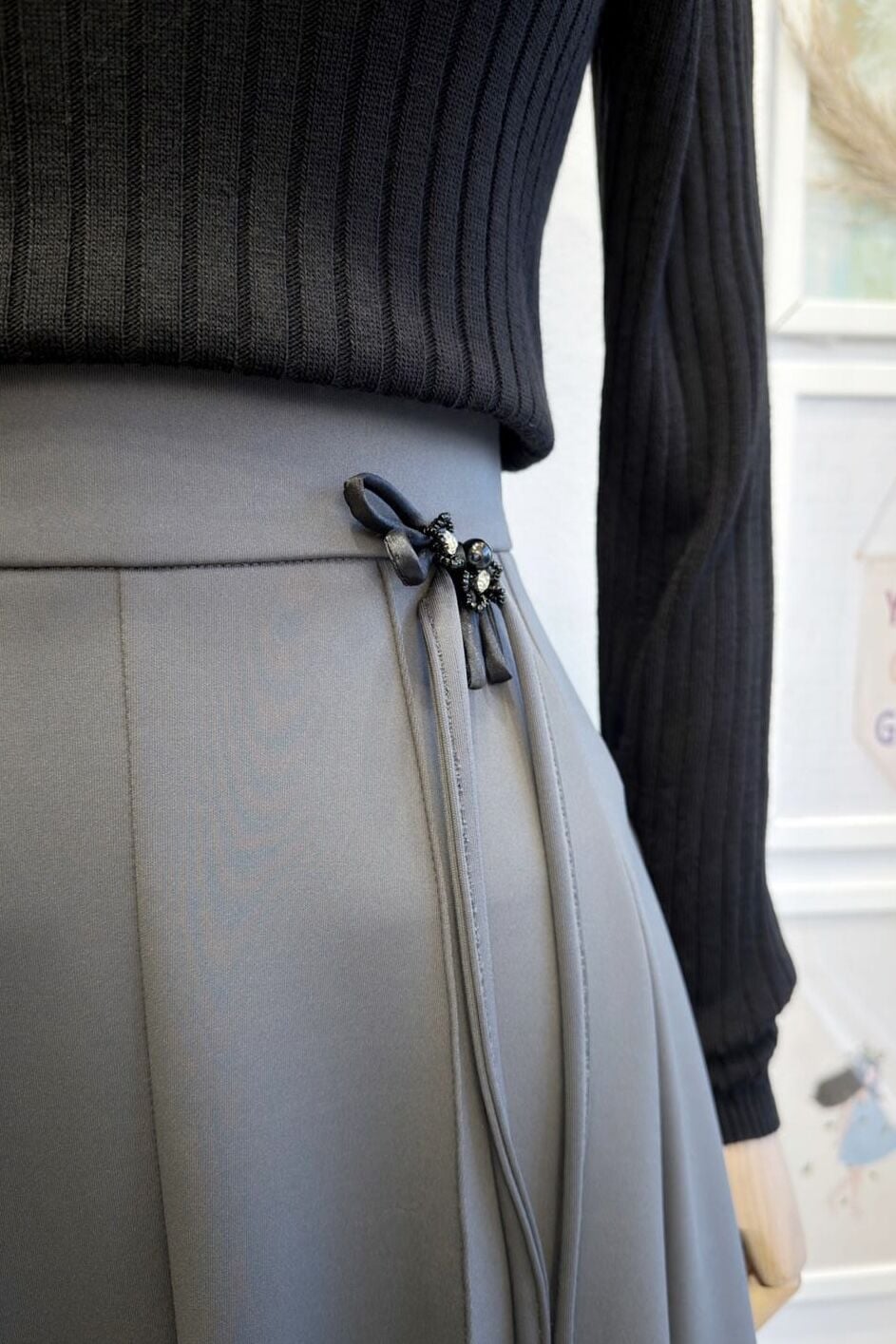 Antrasit Broşlu Scuba Etek