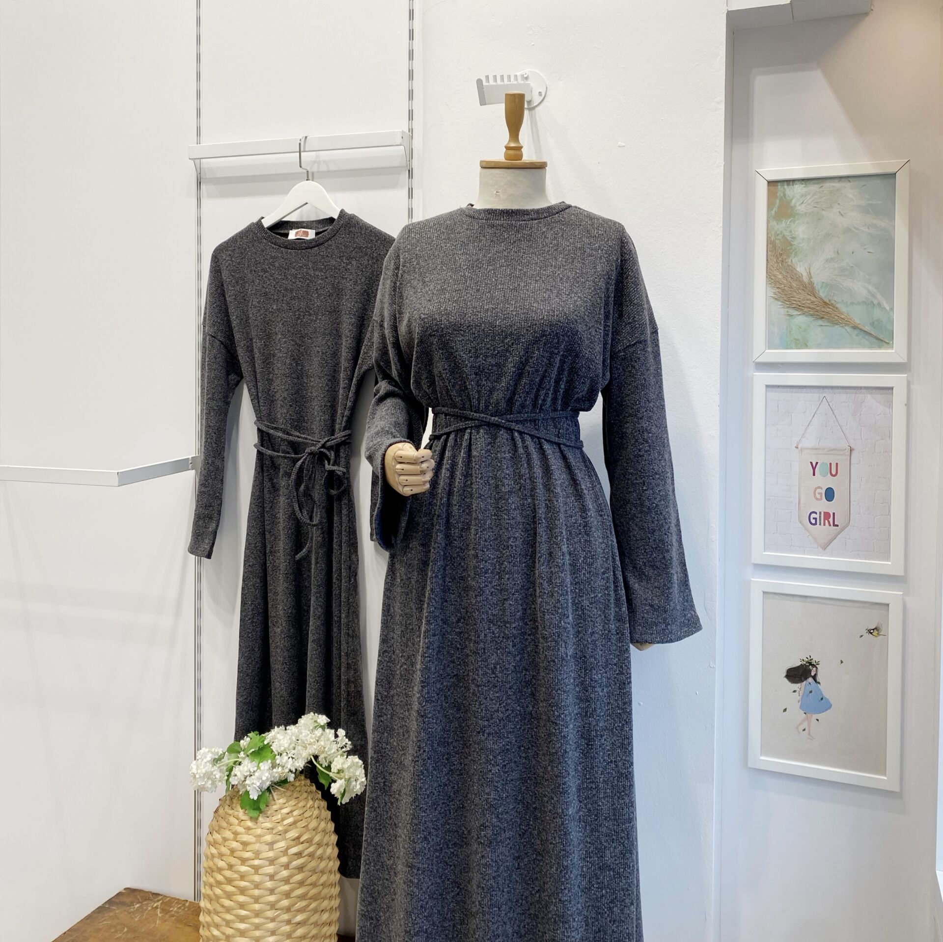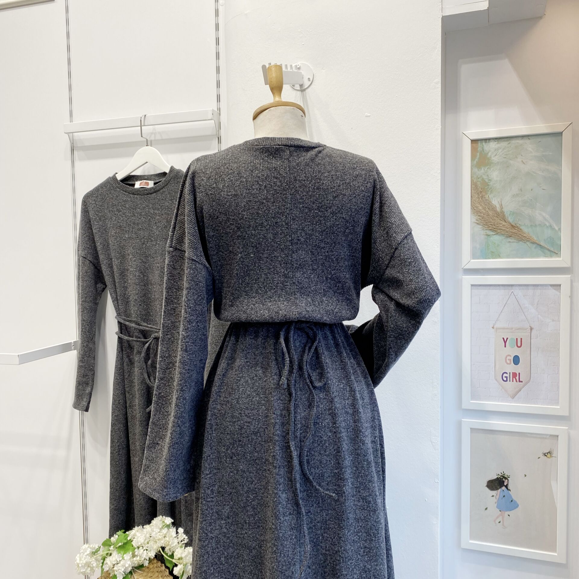 Antrasit Düz Model Triko Elbise