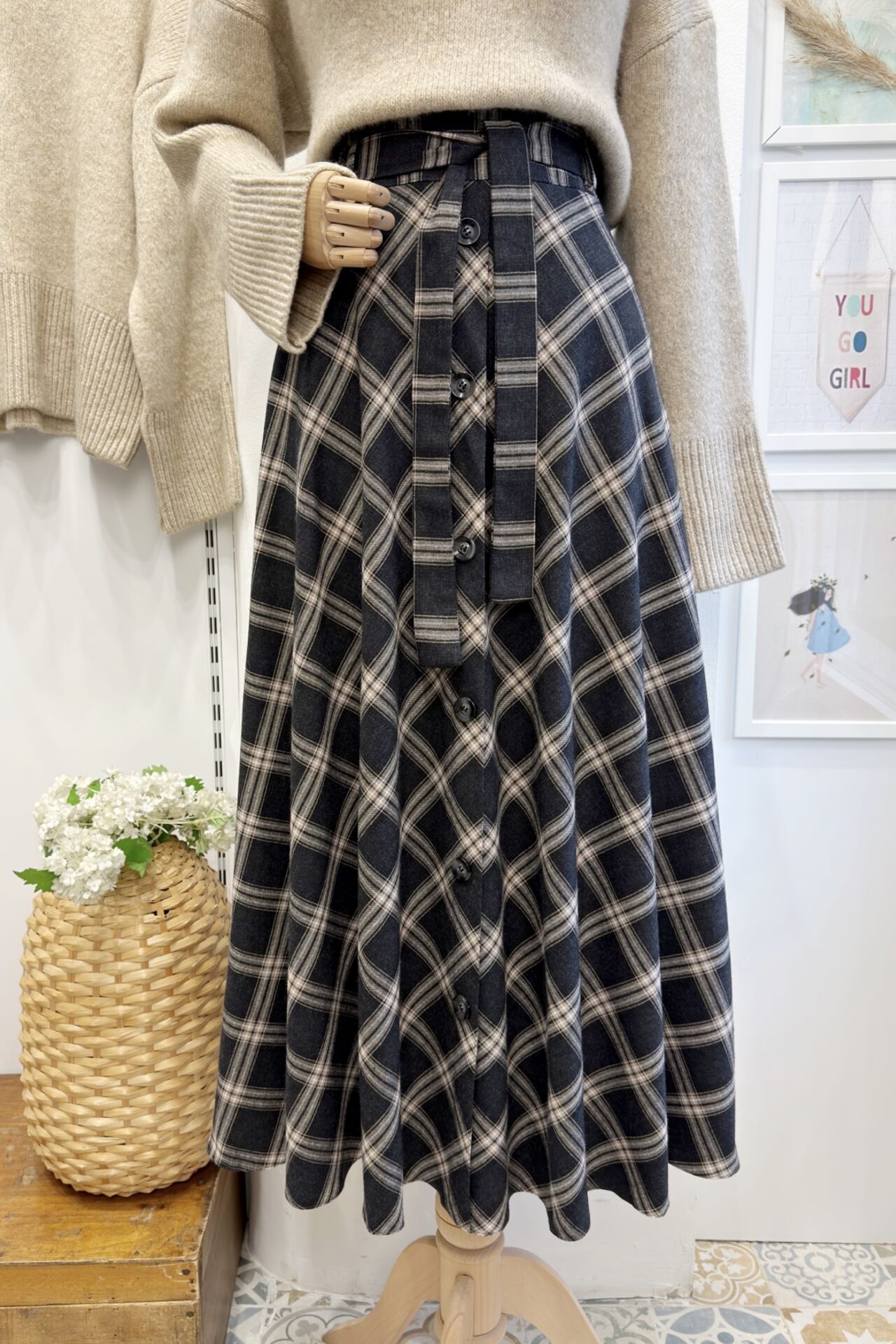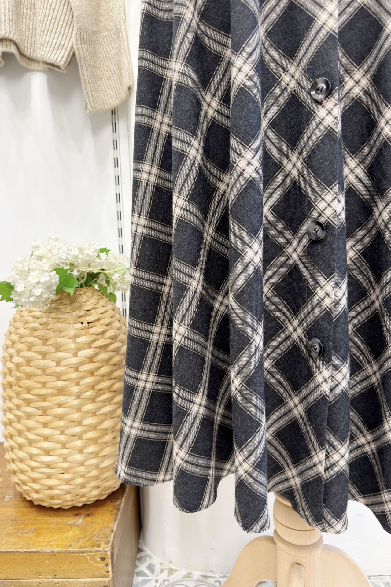 Antrasit Kuşak Detaylı Ekoseli Lorien Etek