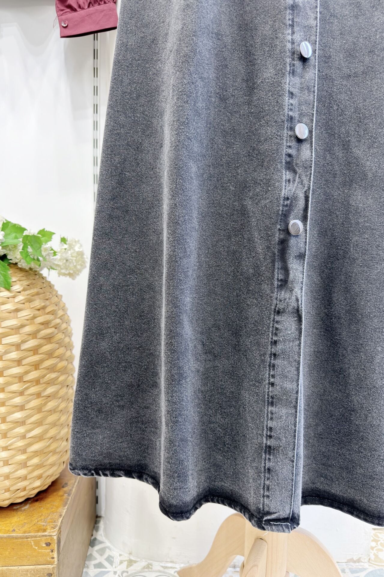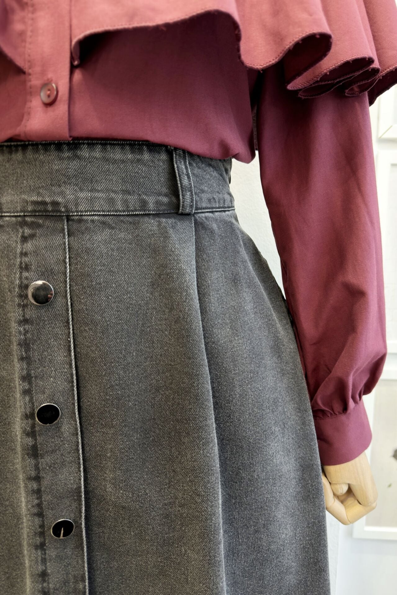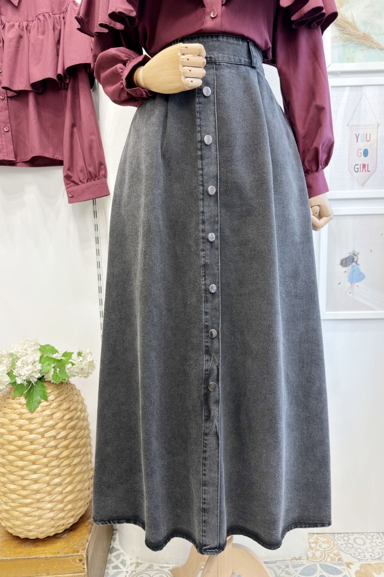 Antrasit Önü Düğmeli Corsen Kot Etek